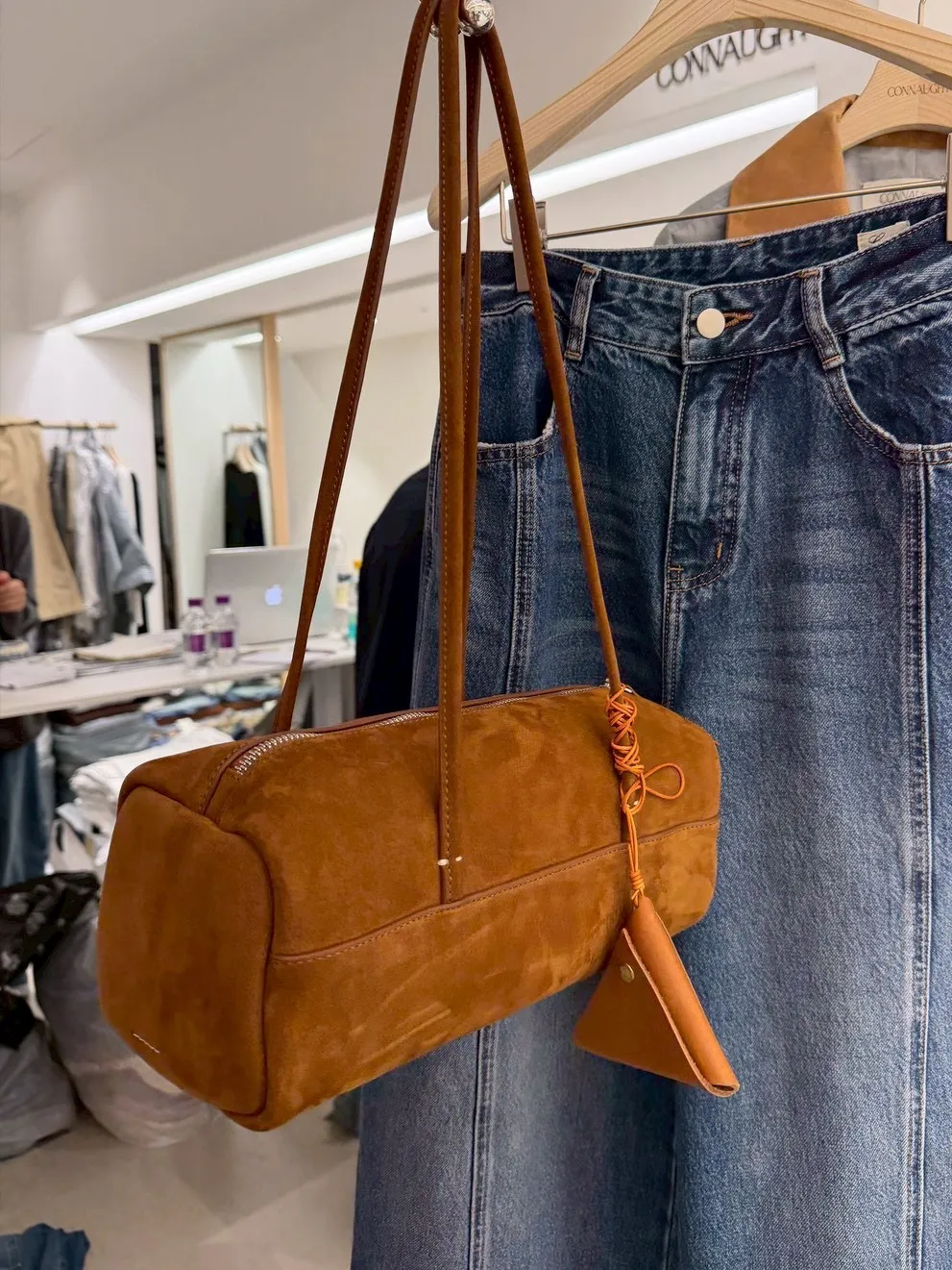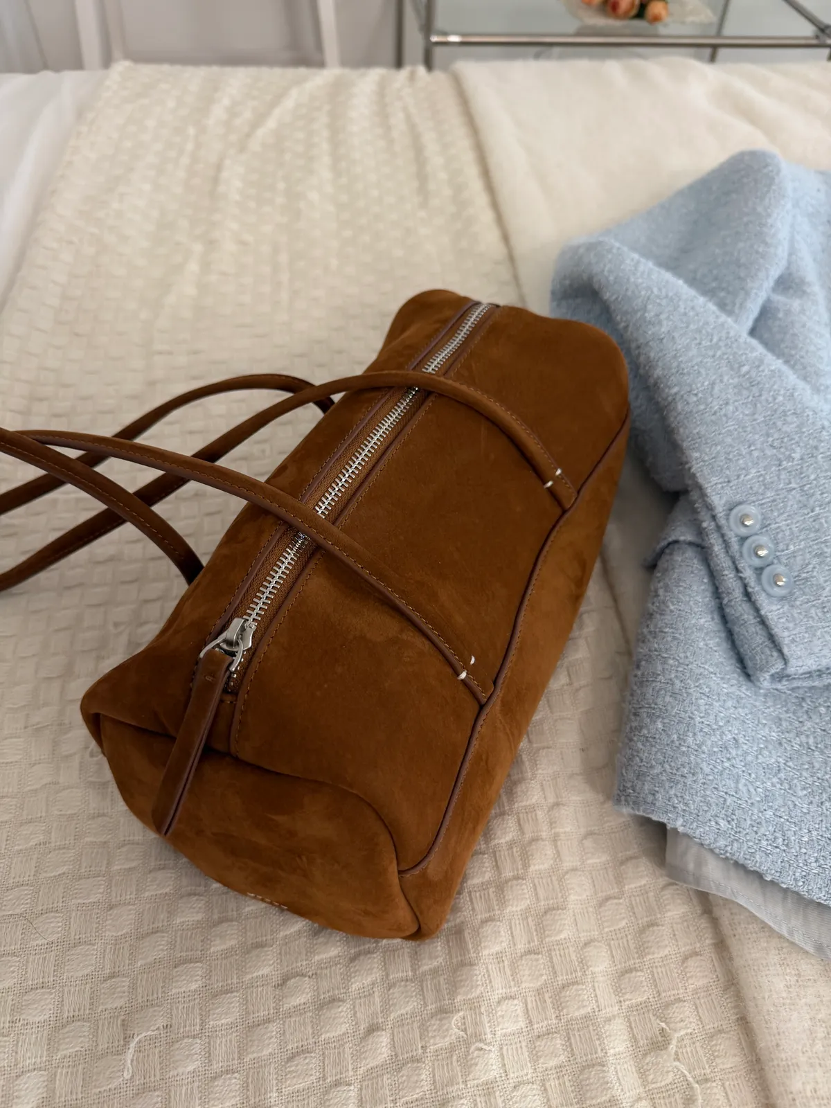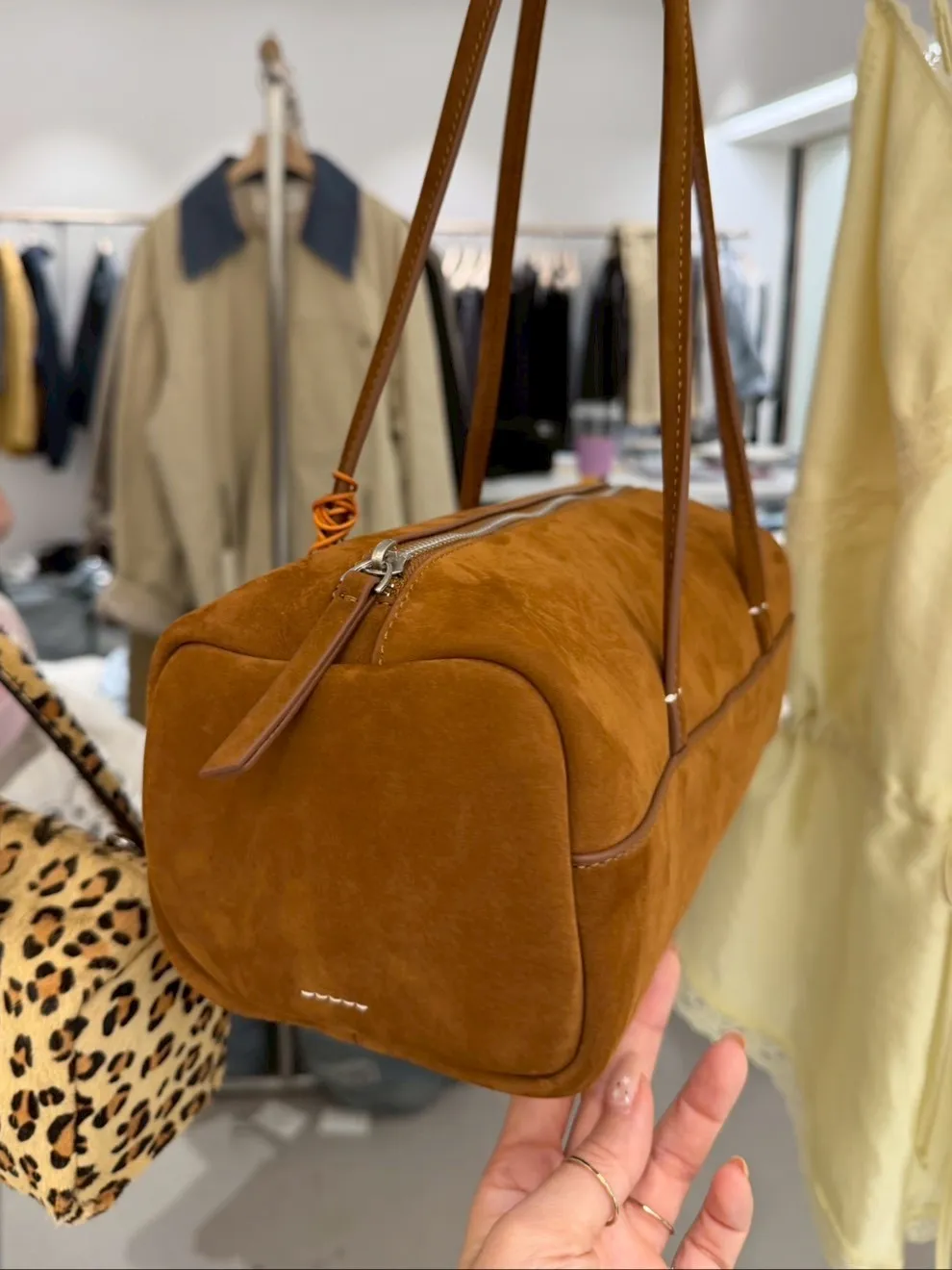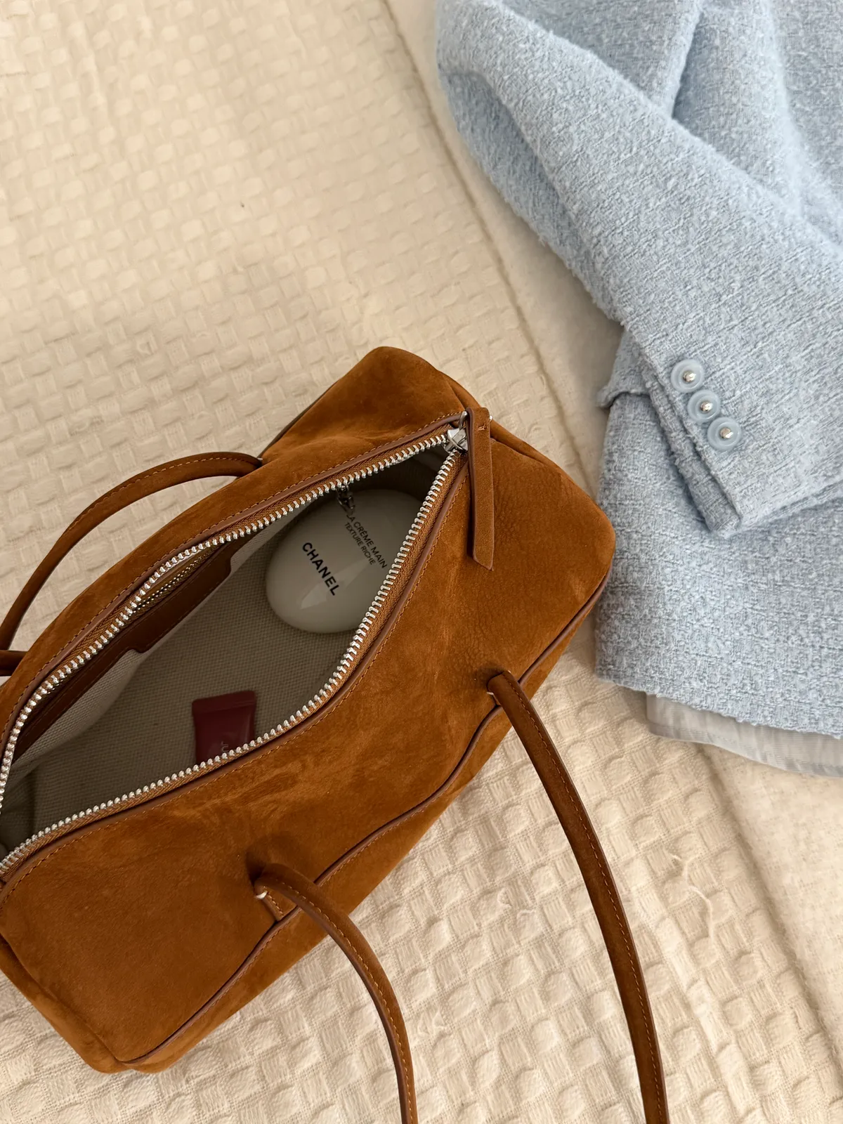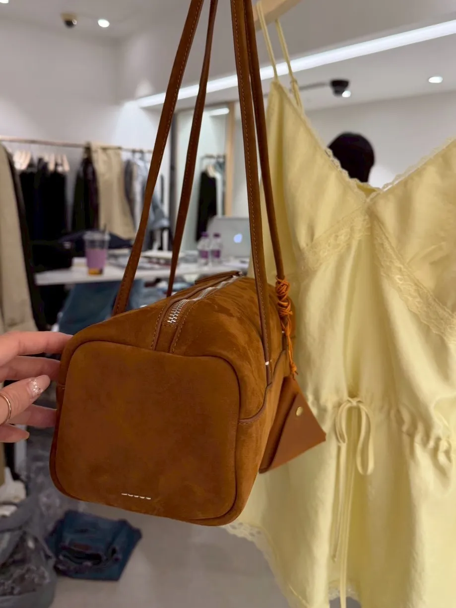 B3015 高級感拉鍊box肩背包/真皮麂皮