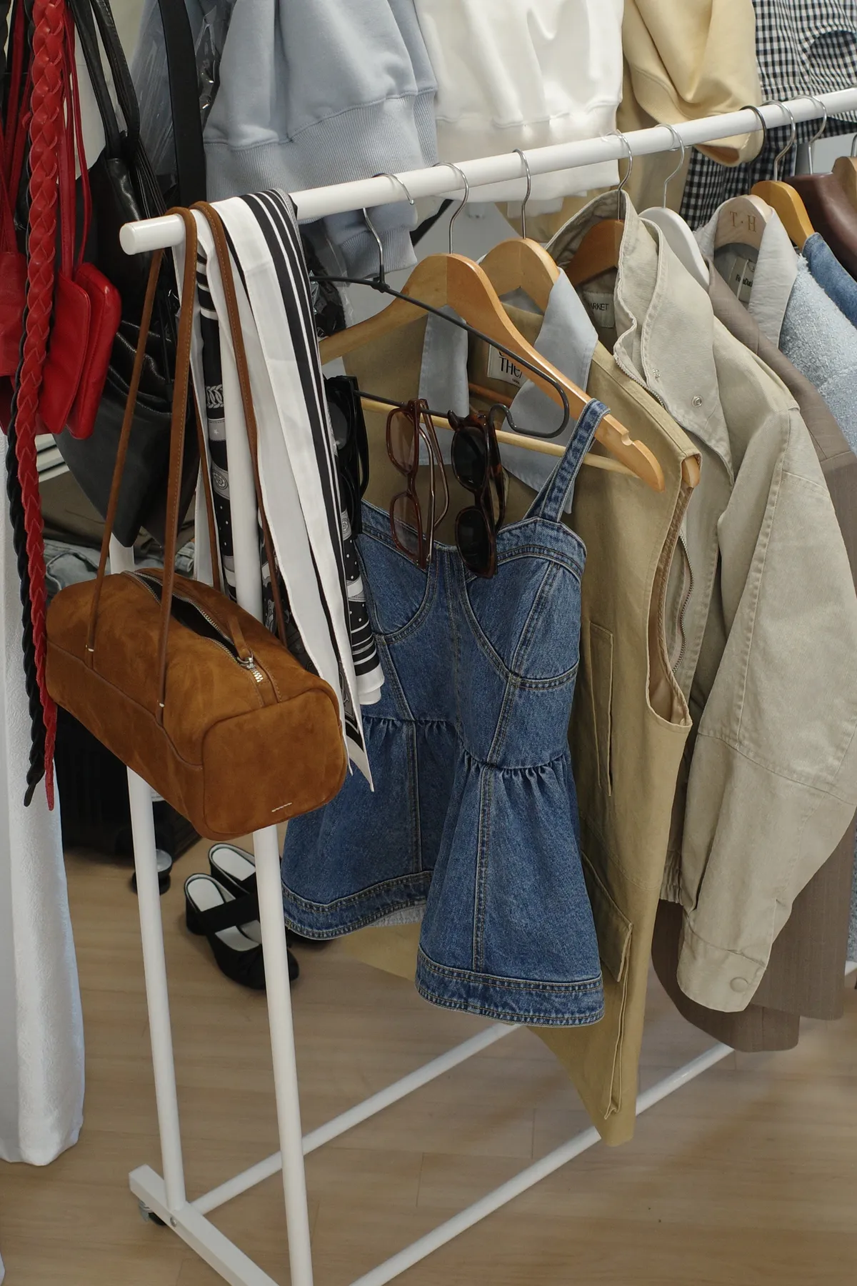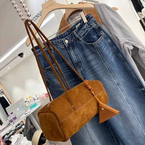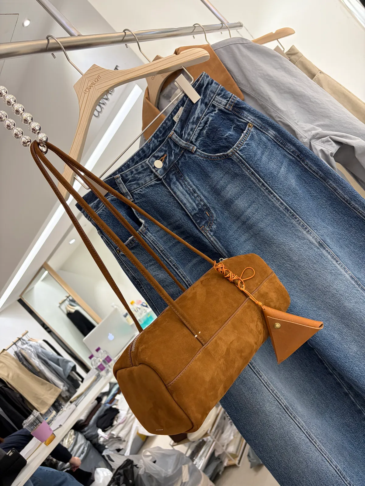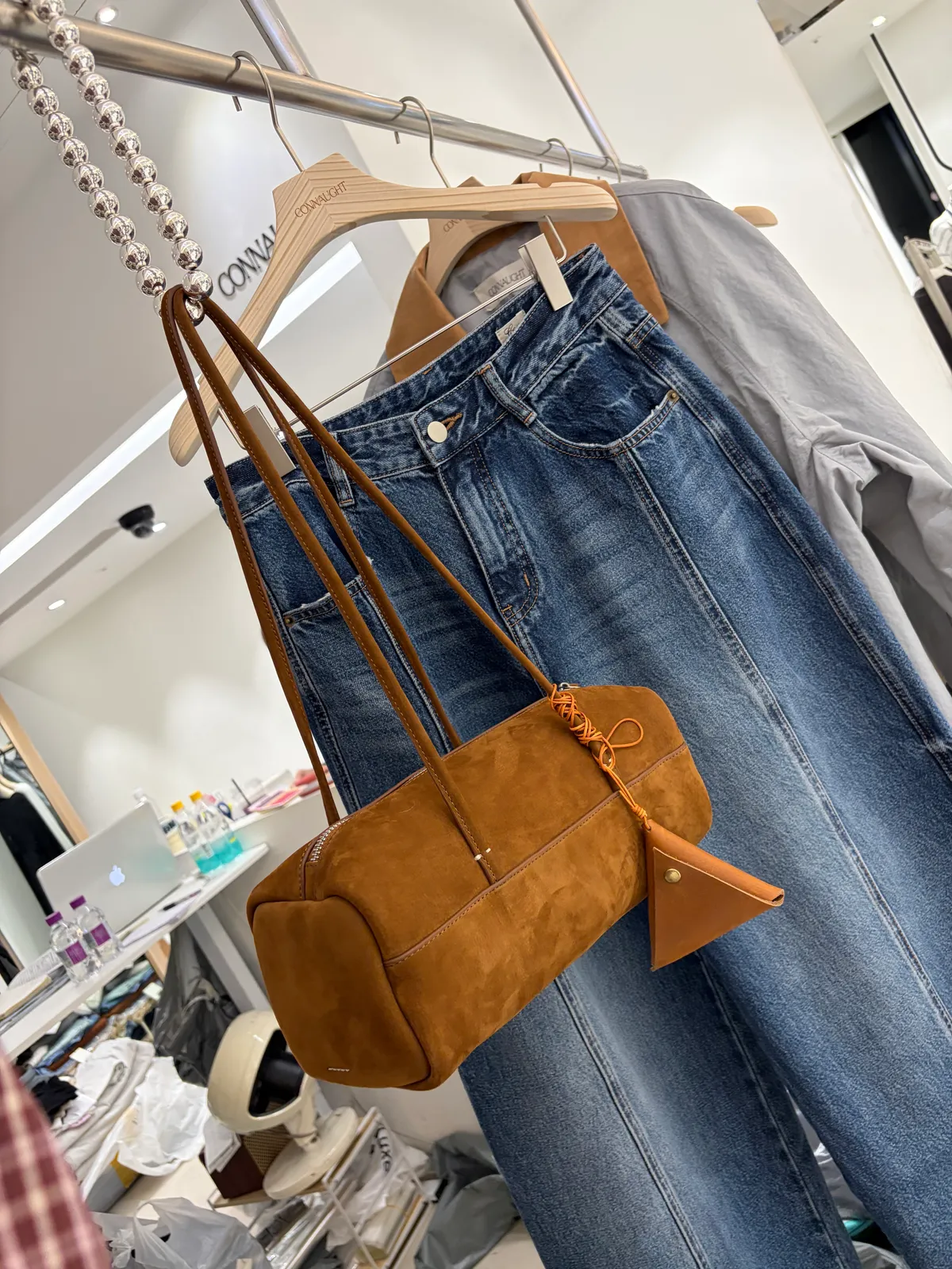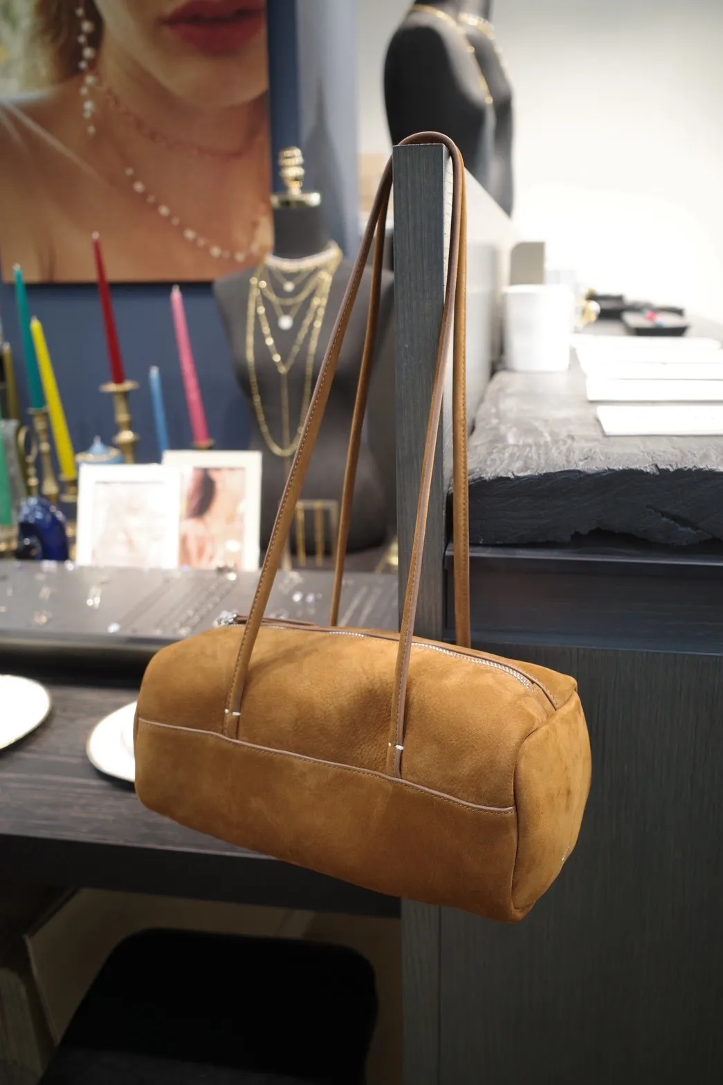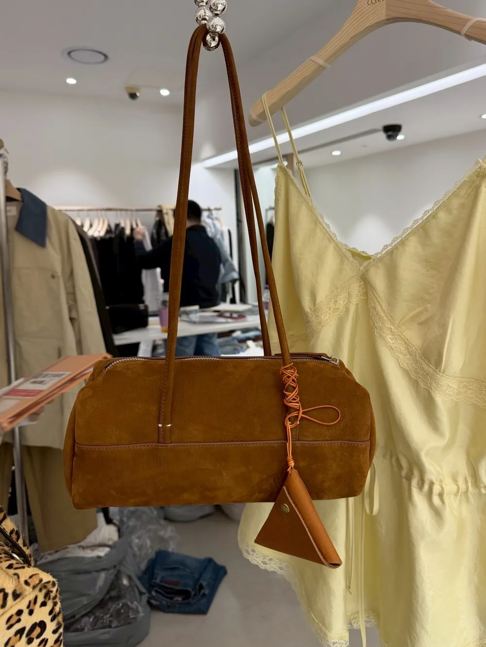 B3015 高級感拉鍊box肩背包/真皮麂皮