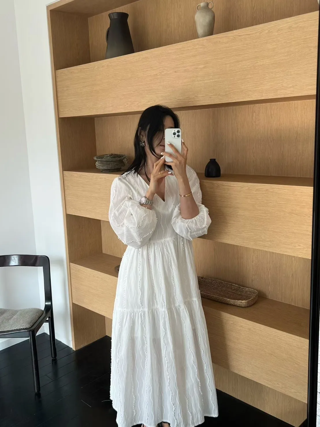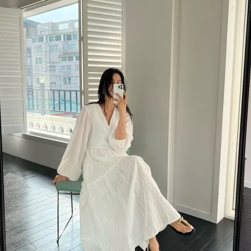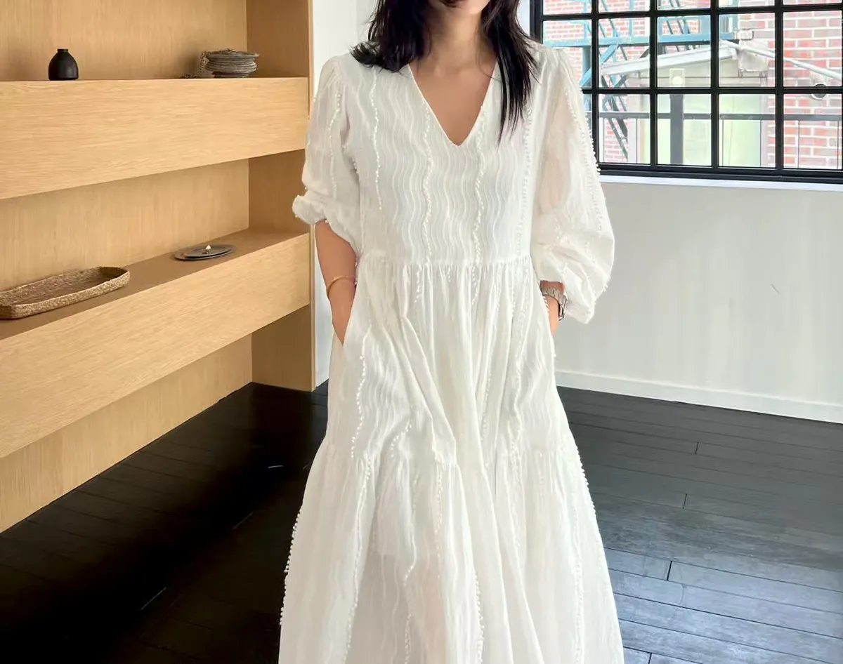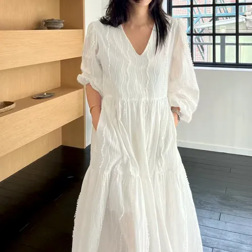 B3036 高級優雅立體蕾絲長洋裝
