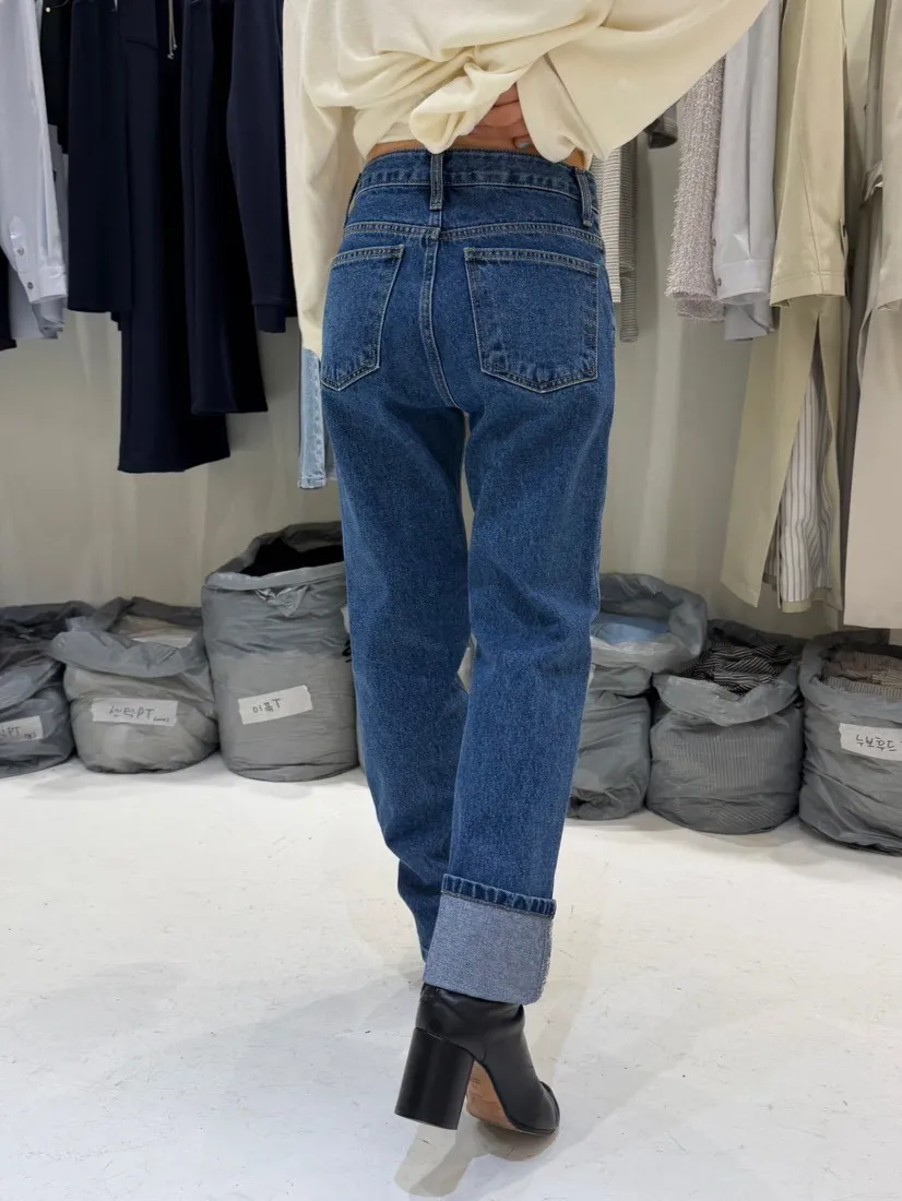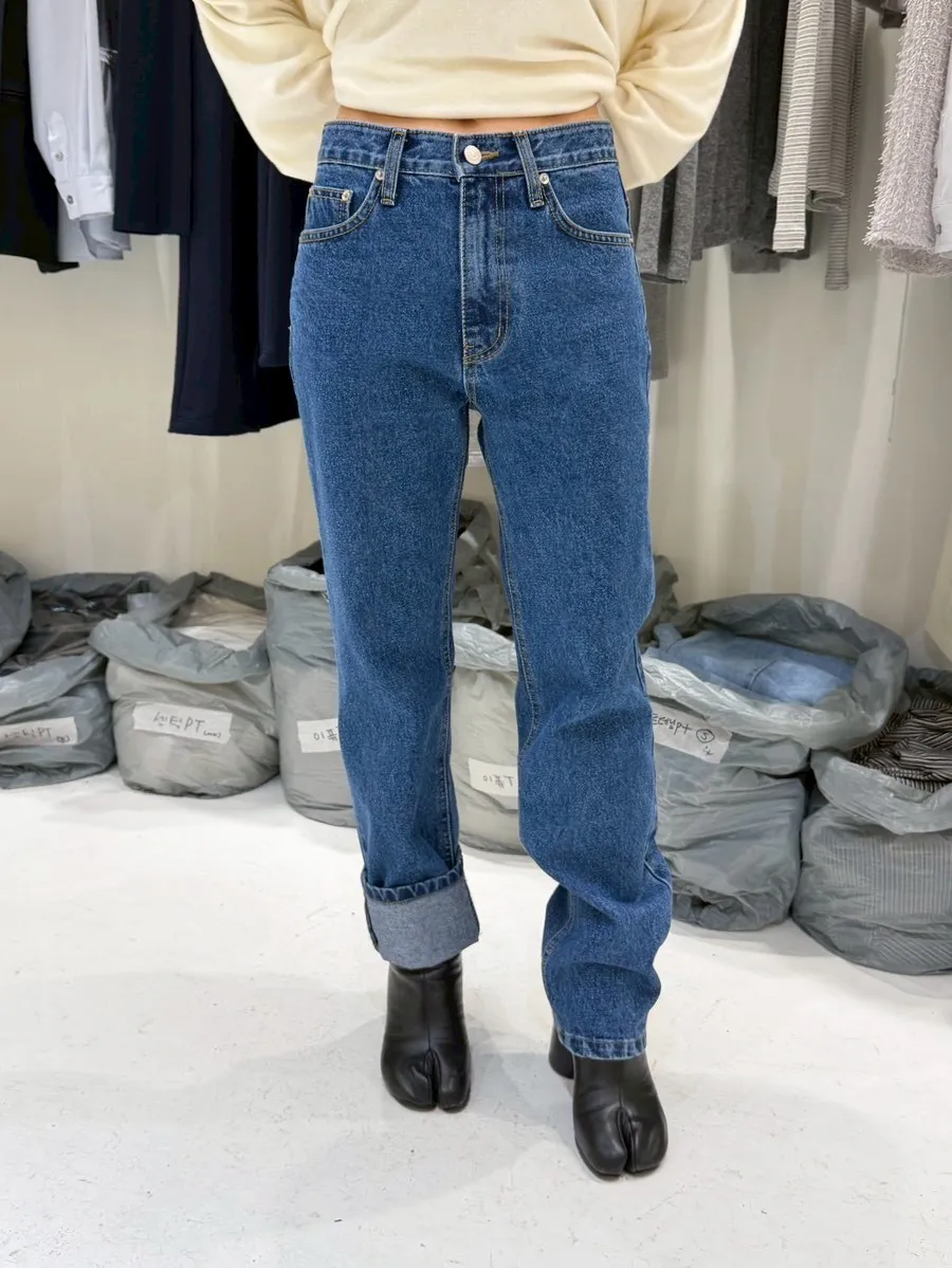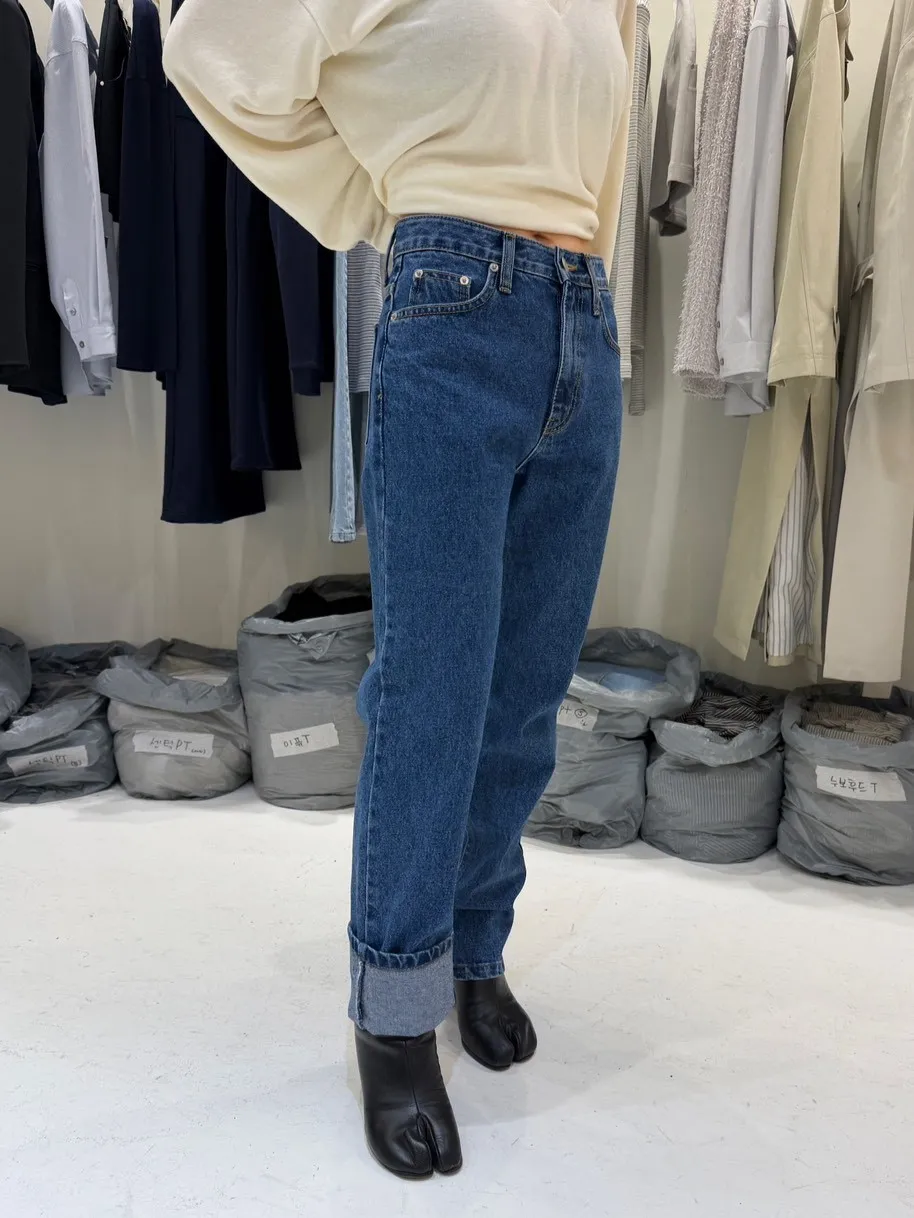 B3058 深藍直筒牛仔褲