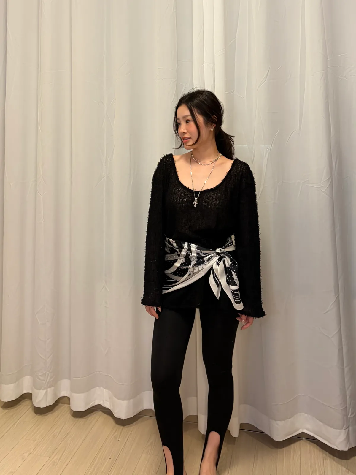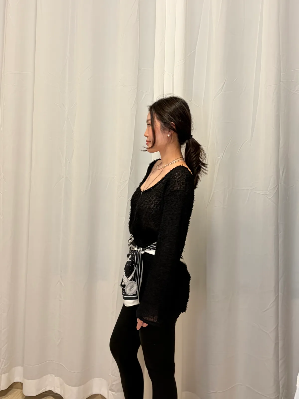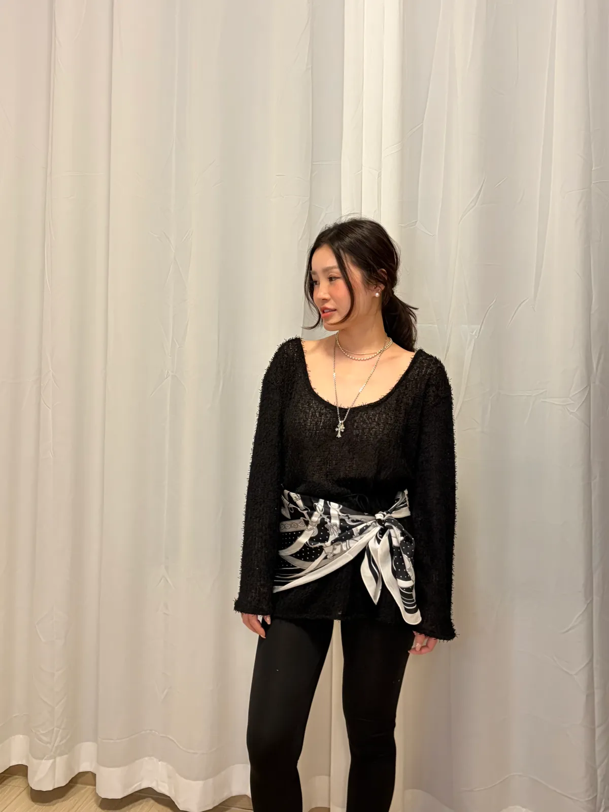 B3059 兩面穿綁帶鬚鬚優雅上衣