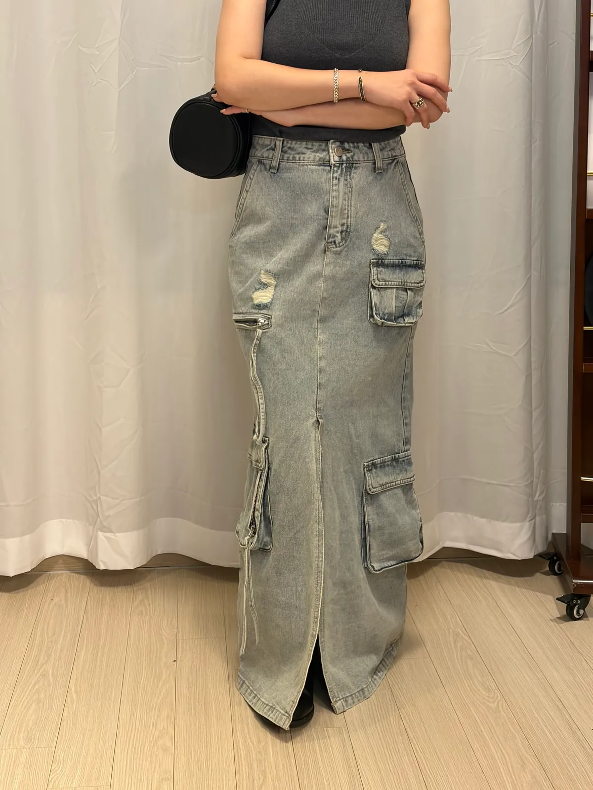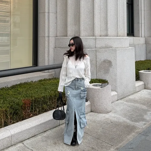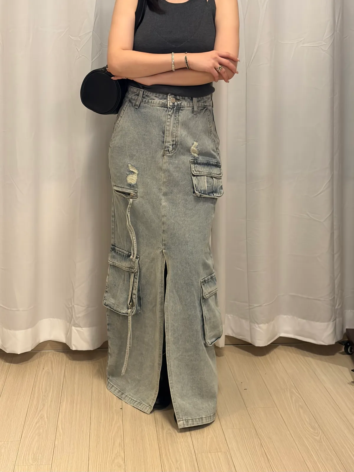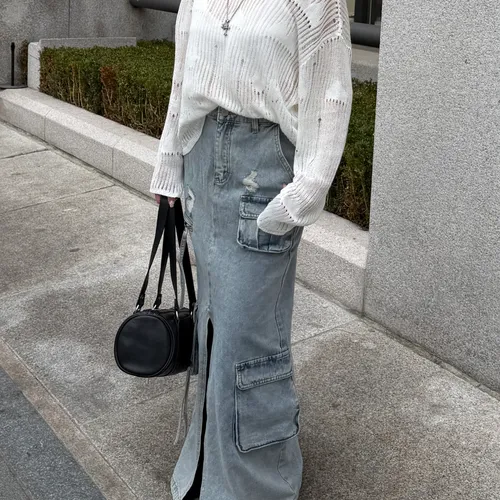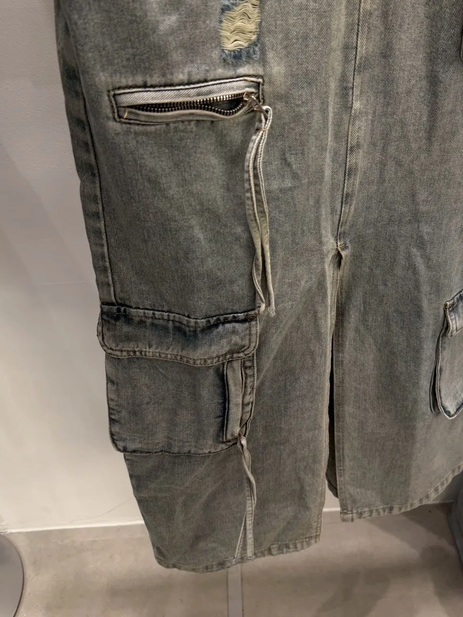 B3074 重工款口袋水洗牛仔工裝裙