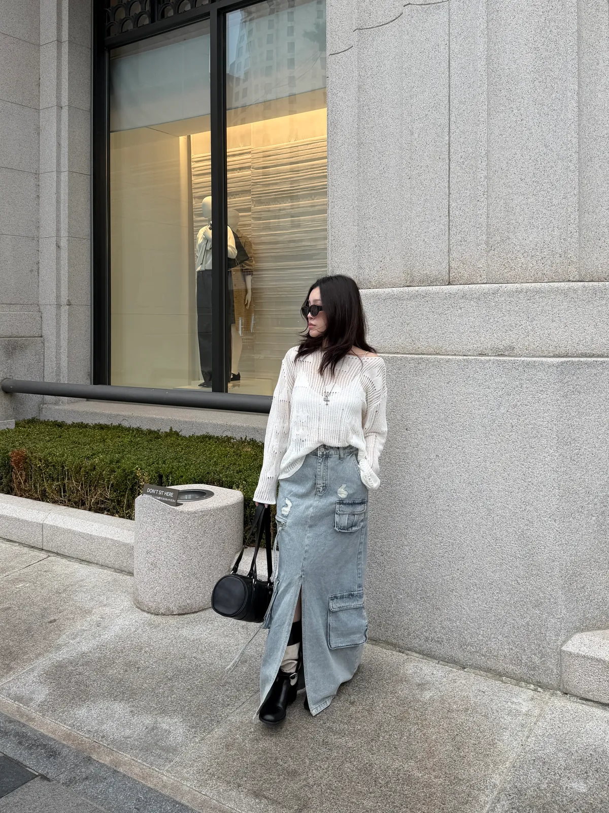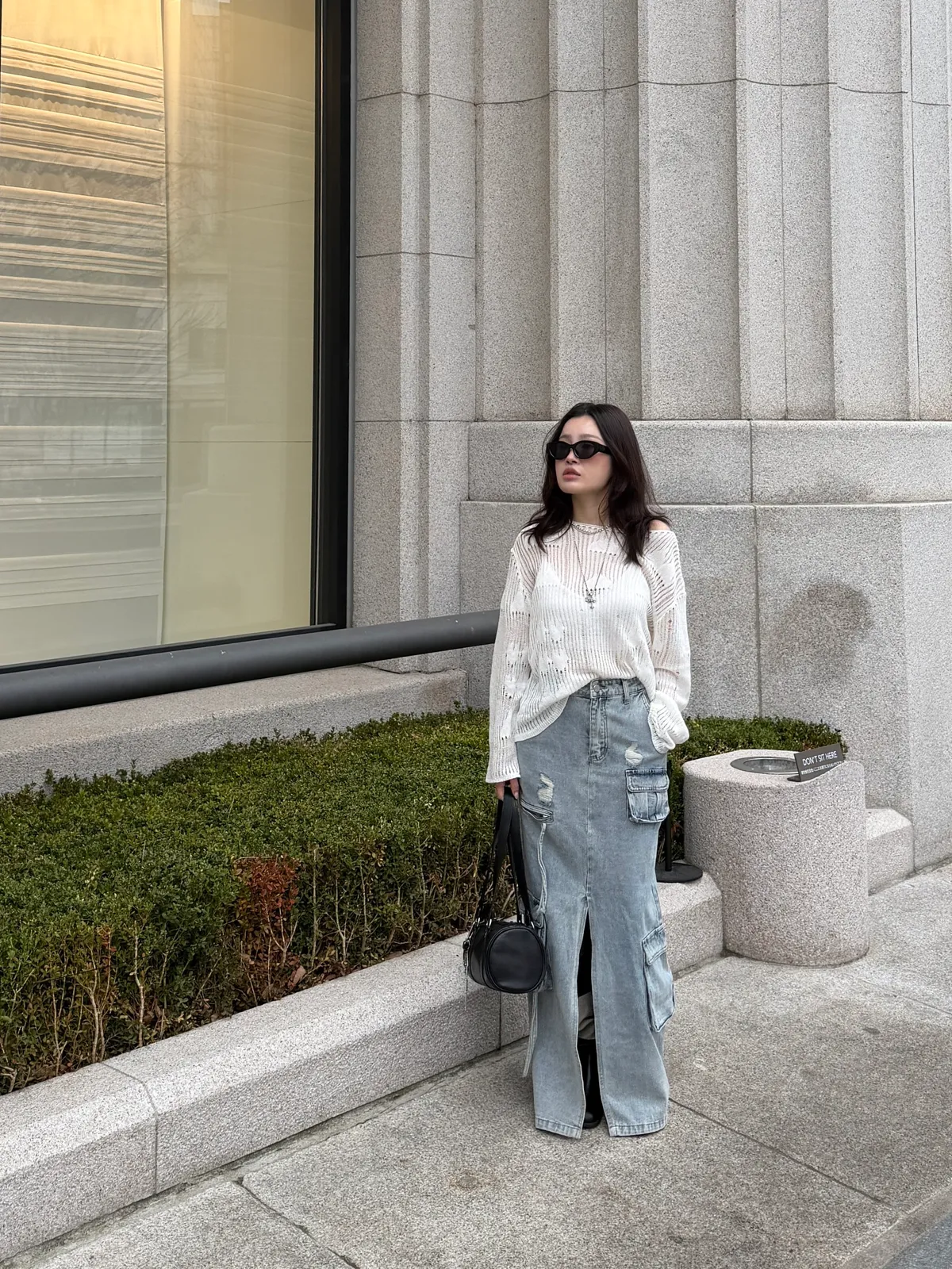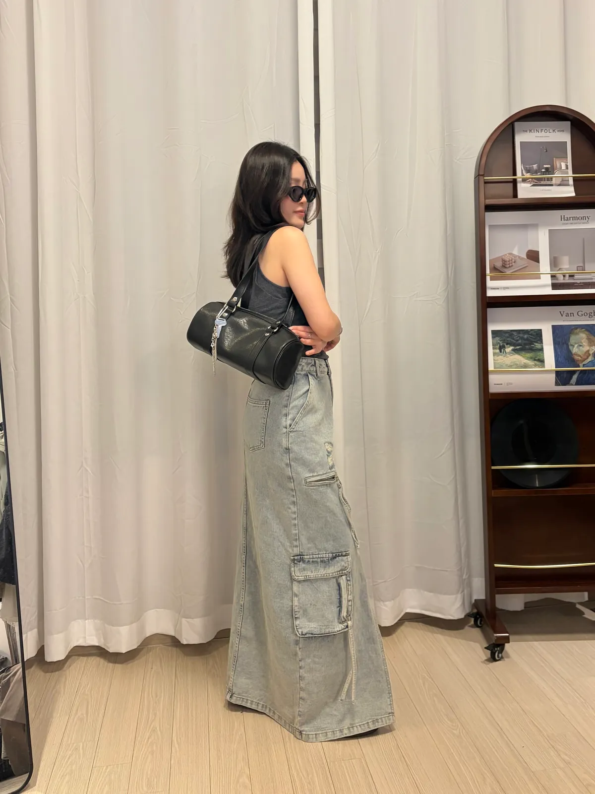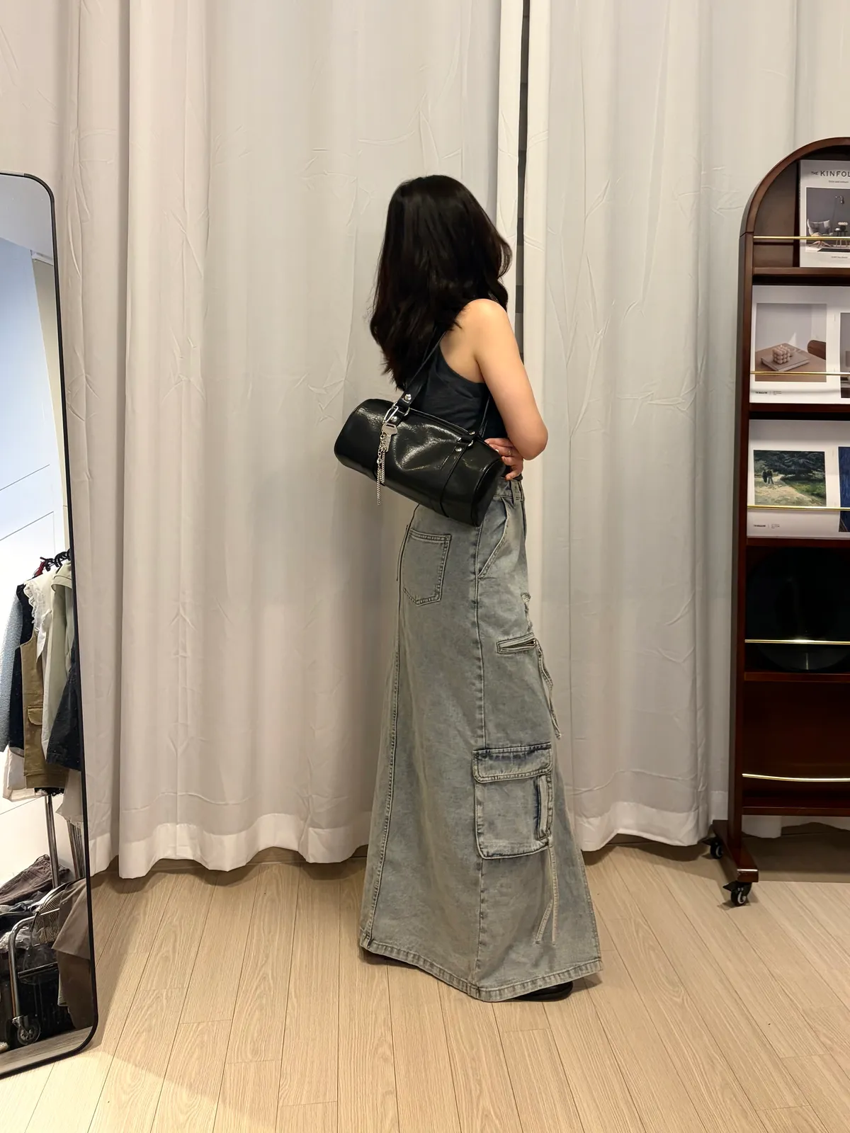 B3074 重工款口袋水洗牛仔工裝裙