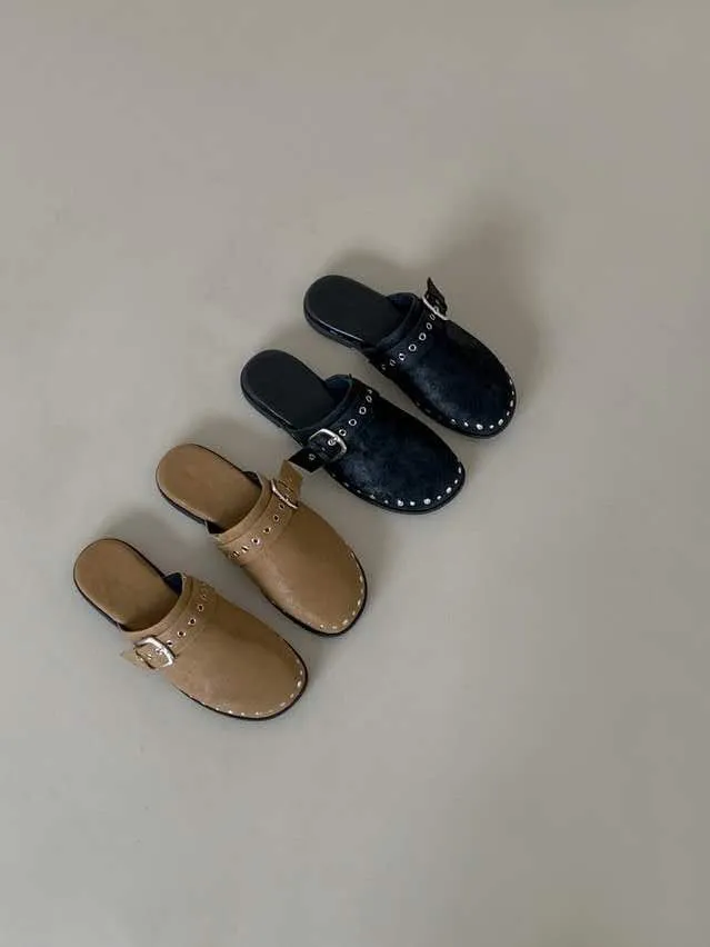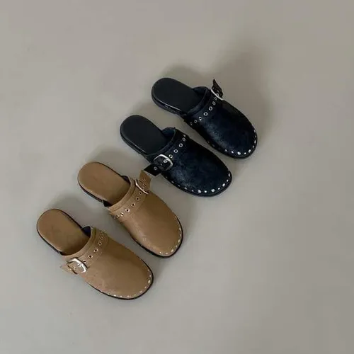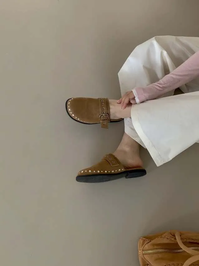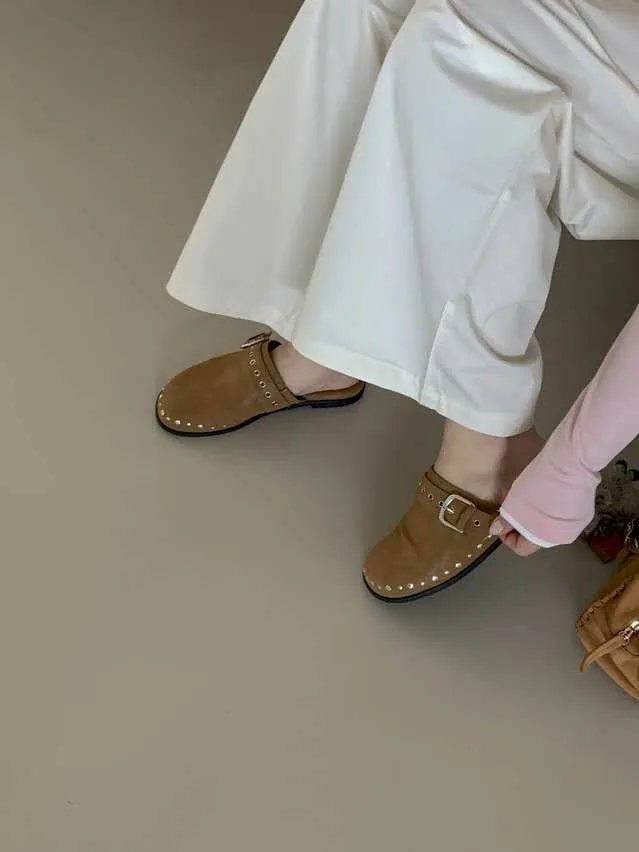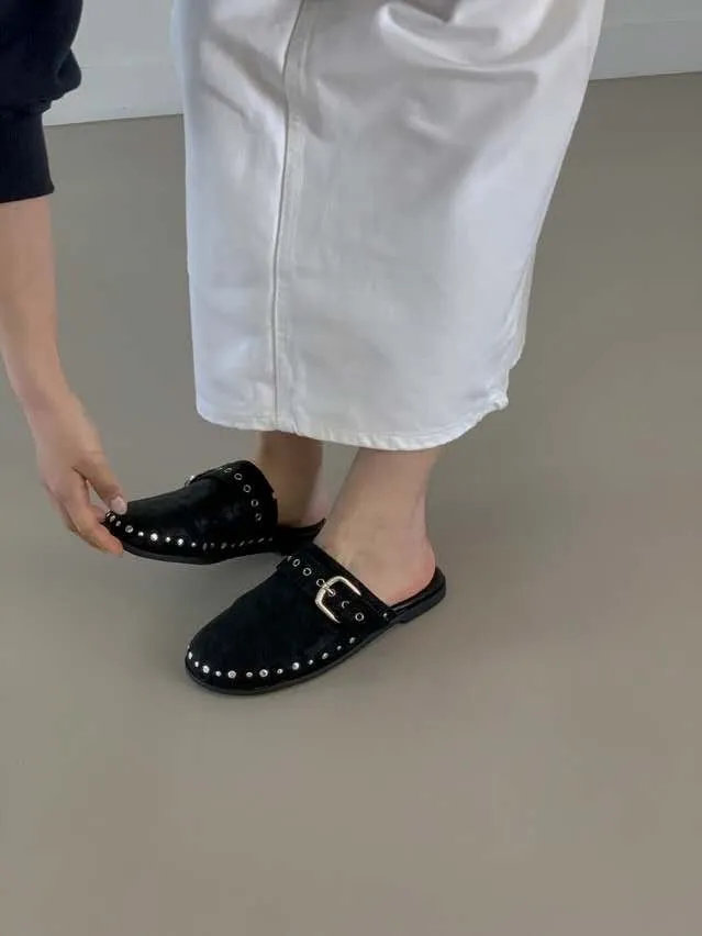 B3095 圓頭釦飾卯釘穆勒鞋
