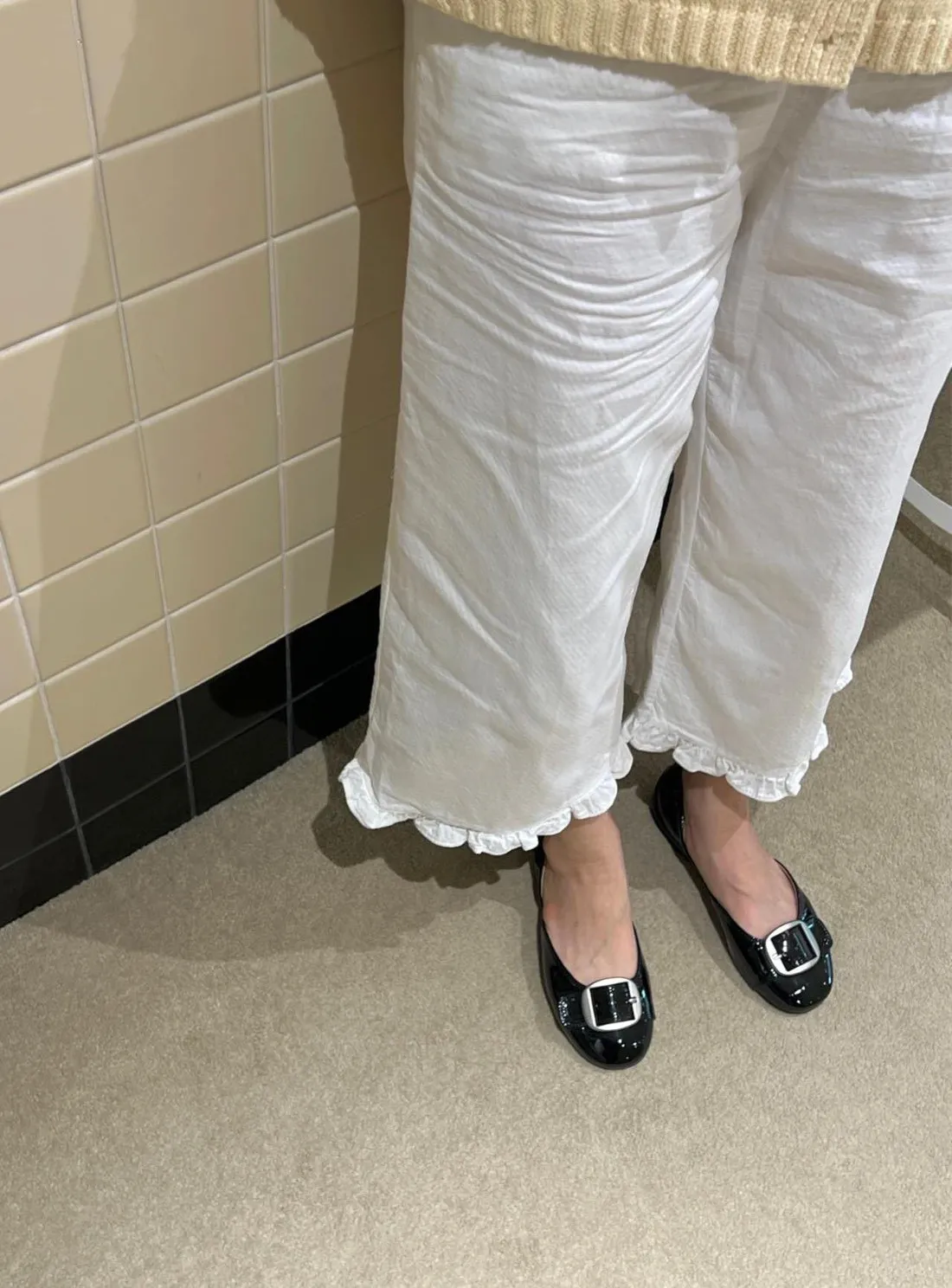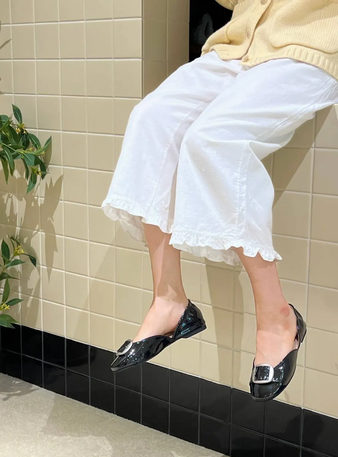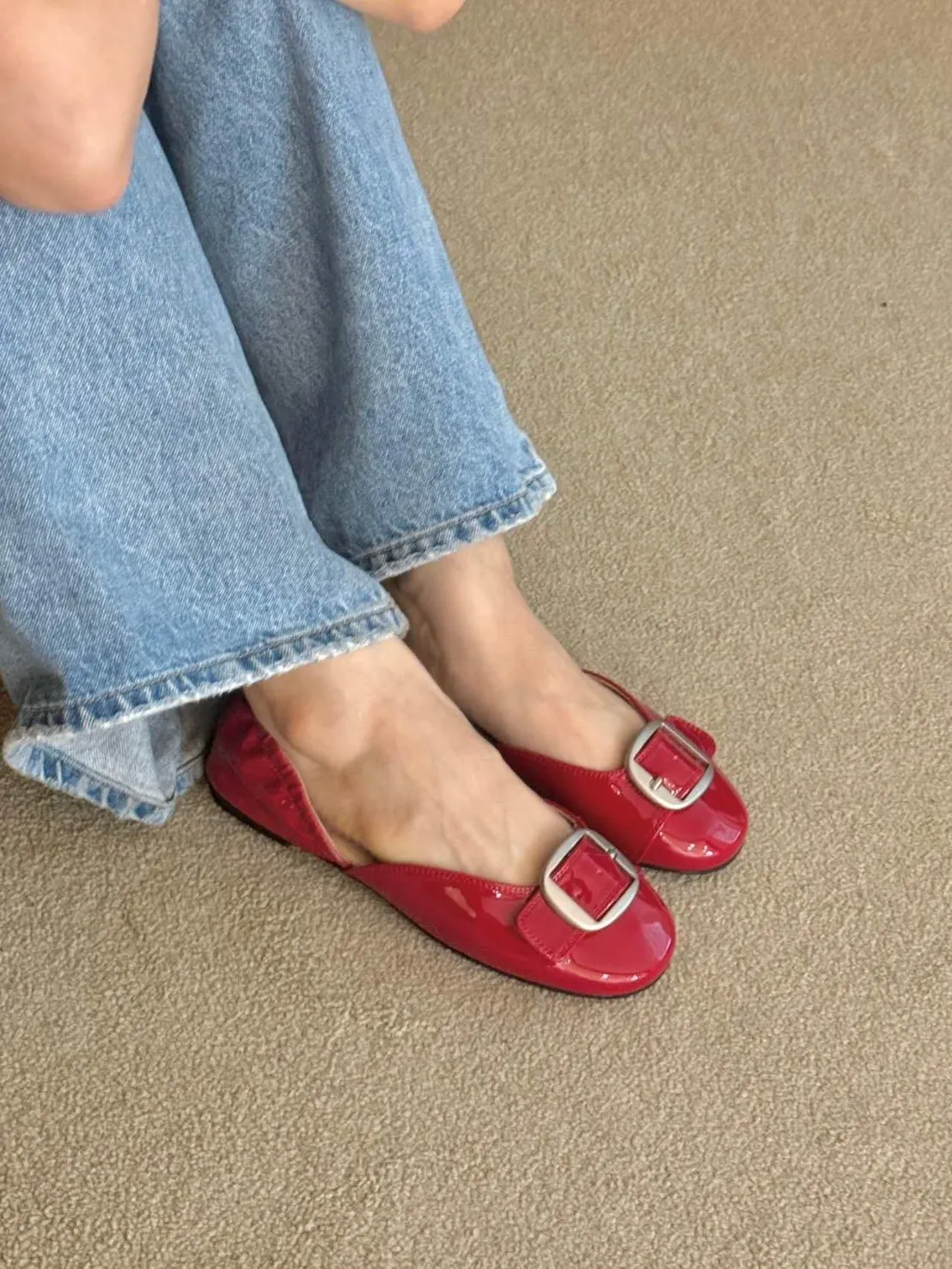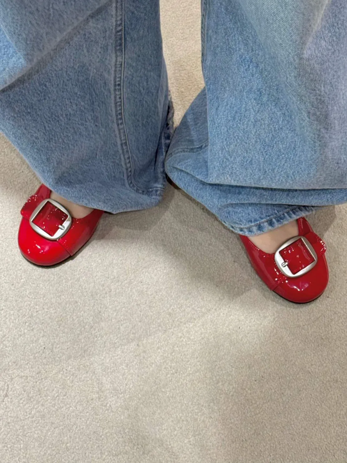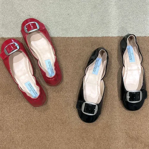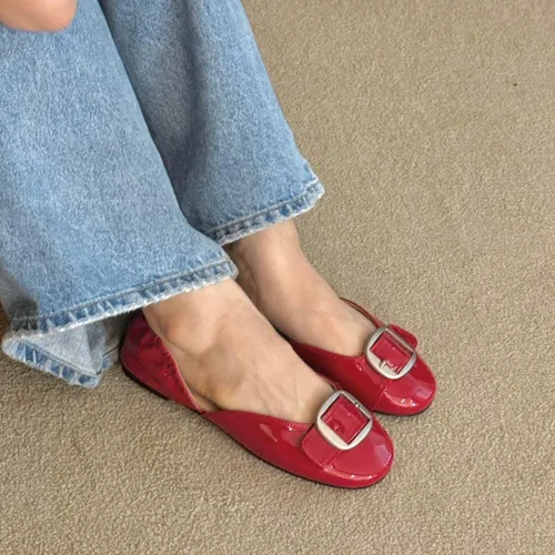 B3096 時髦銀霧釦漆皮平底鞋