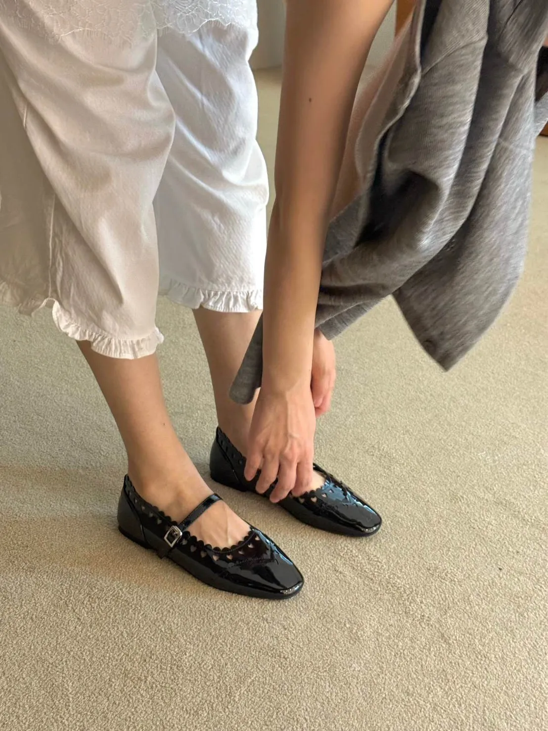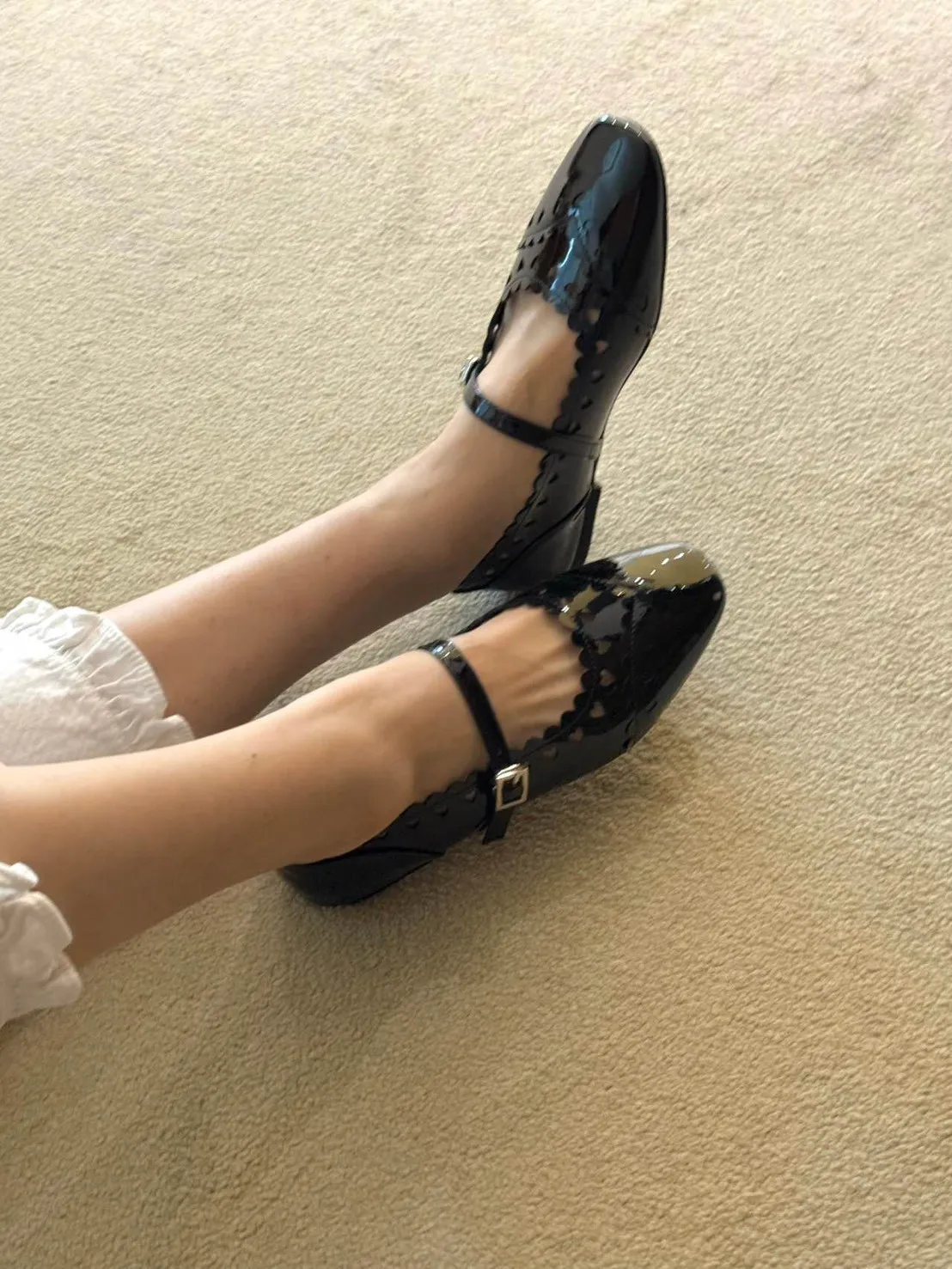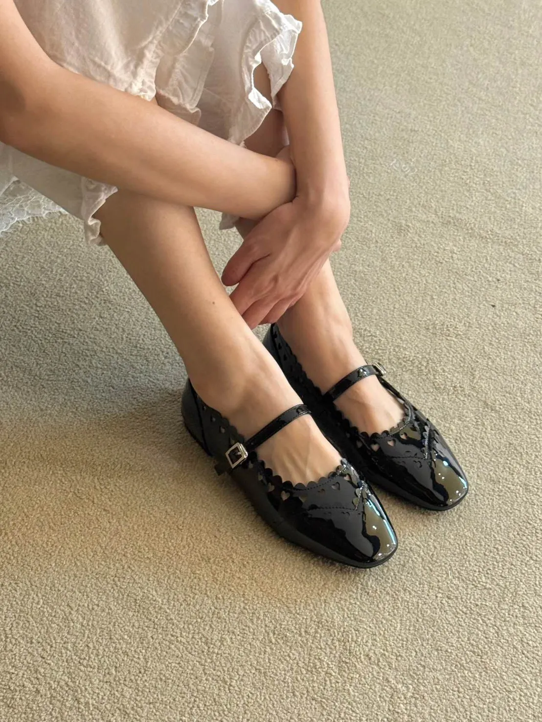 B3097 愛心漆皮小方頭扣帶鞋