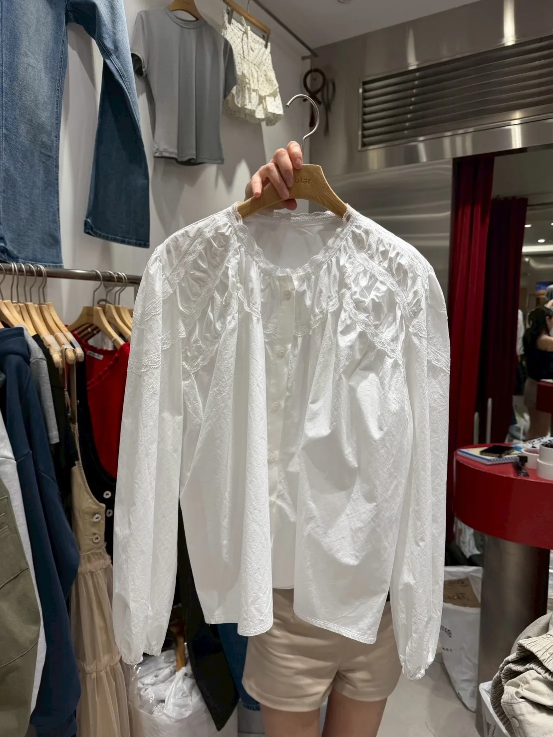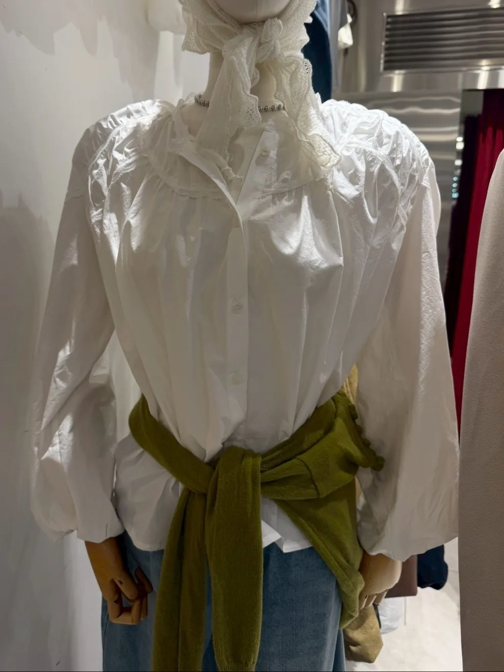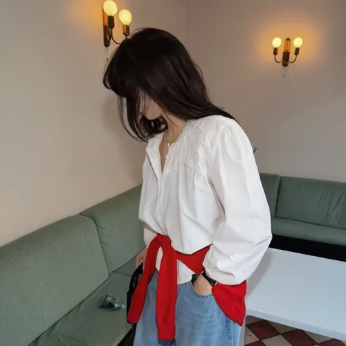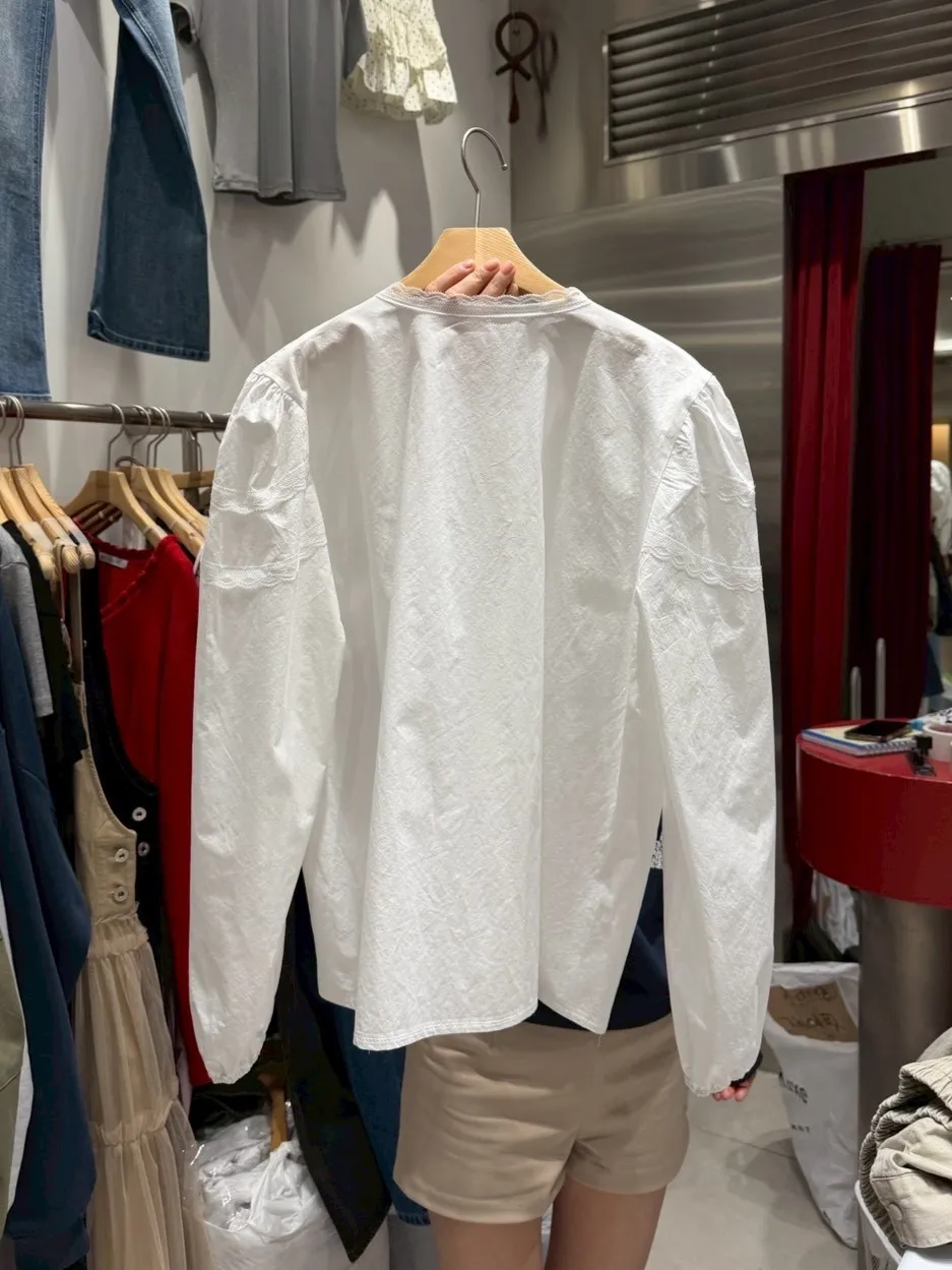 B3112 澎澎造型氣質蕾絲白襯衫