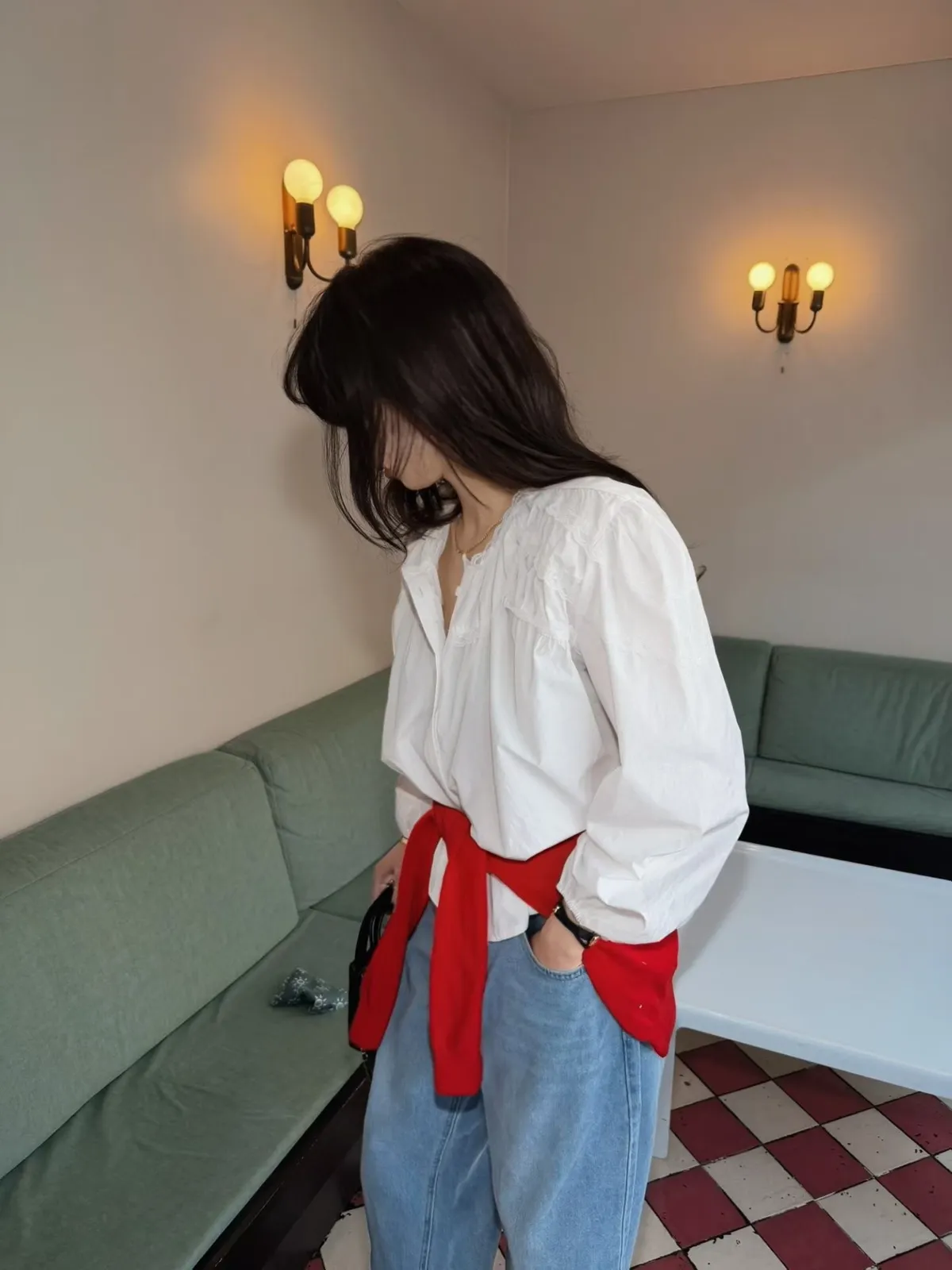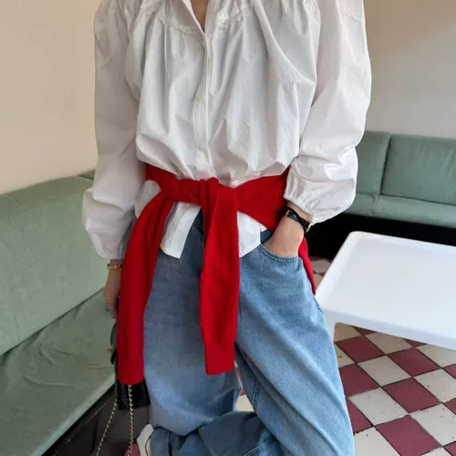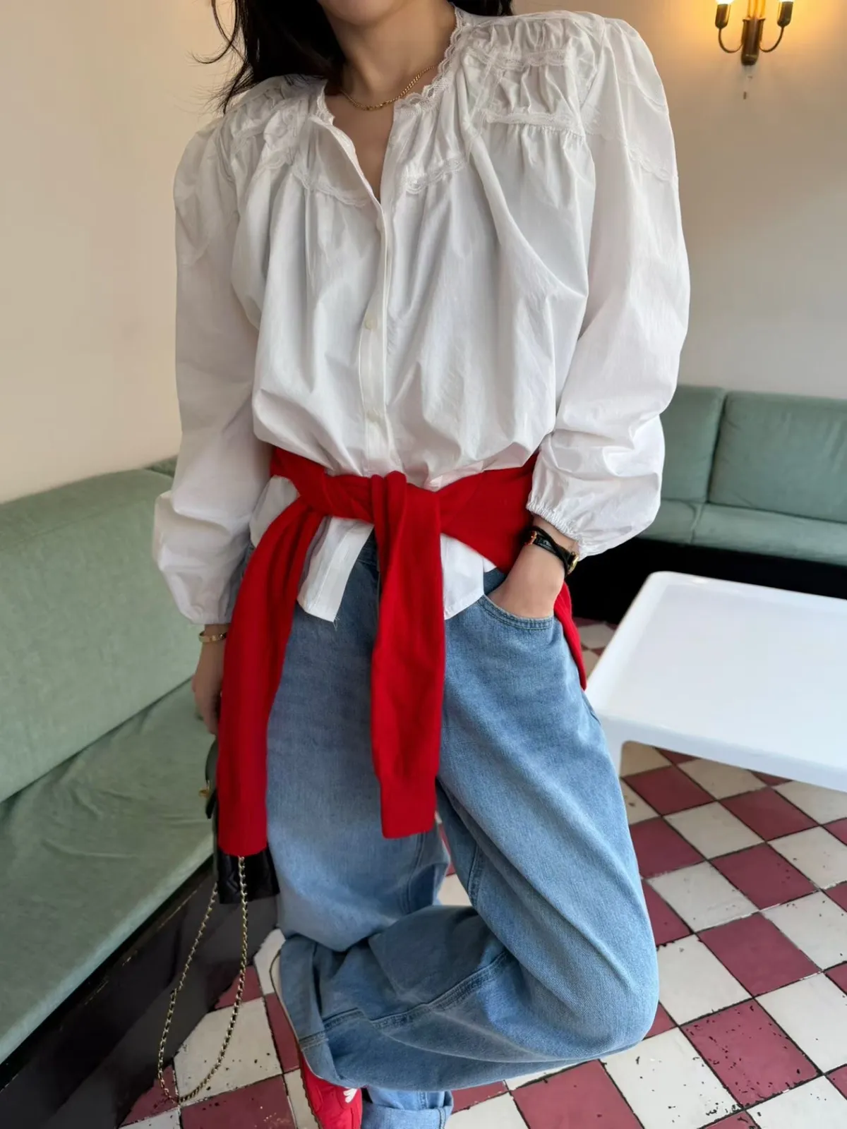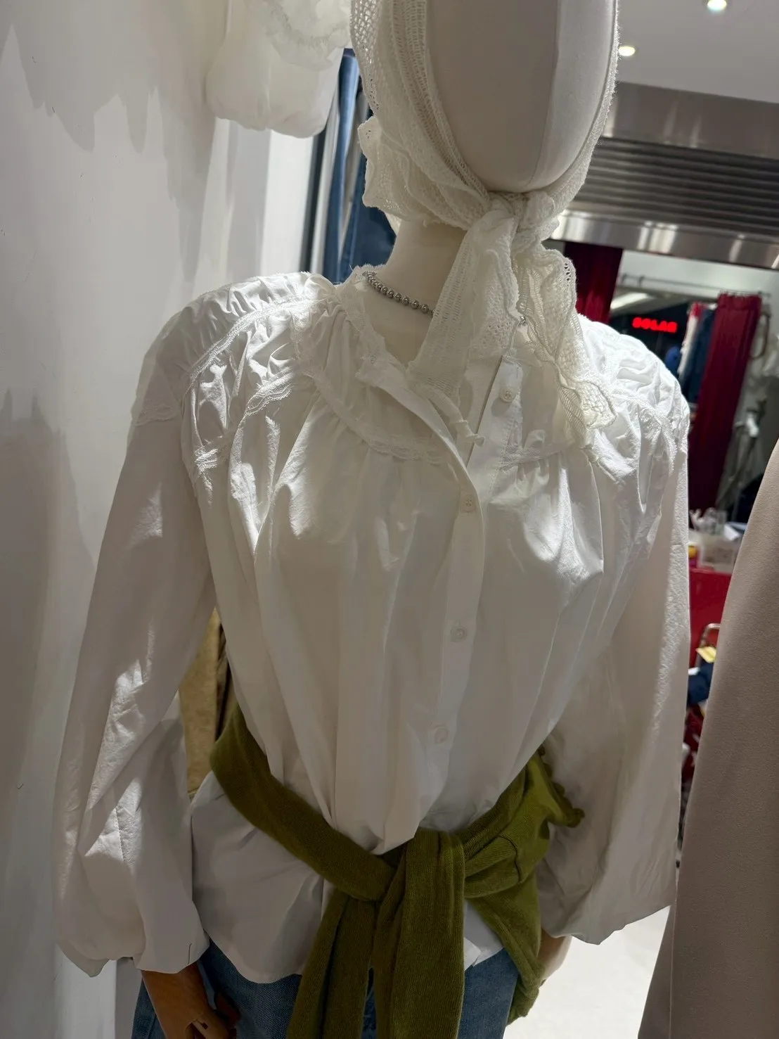 B3112 澎澎造型氣質蕾絲白襯衫