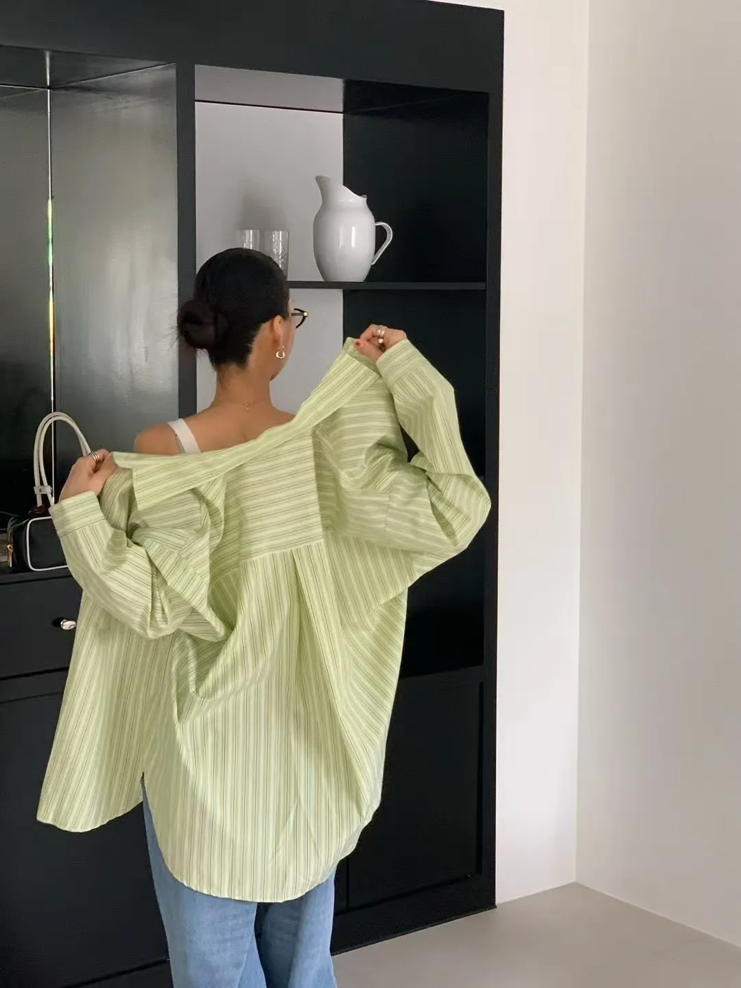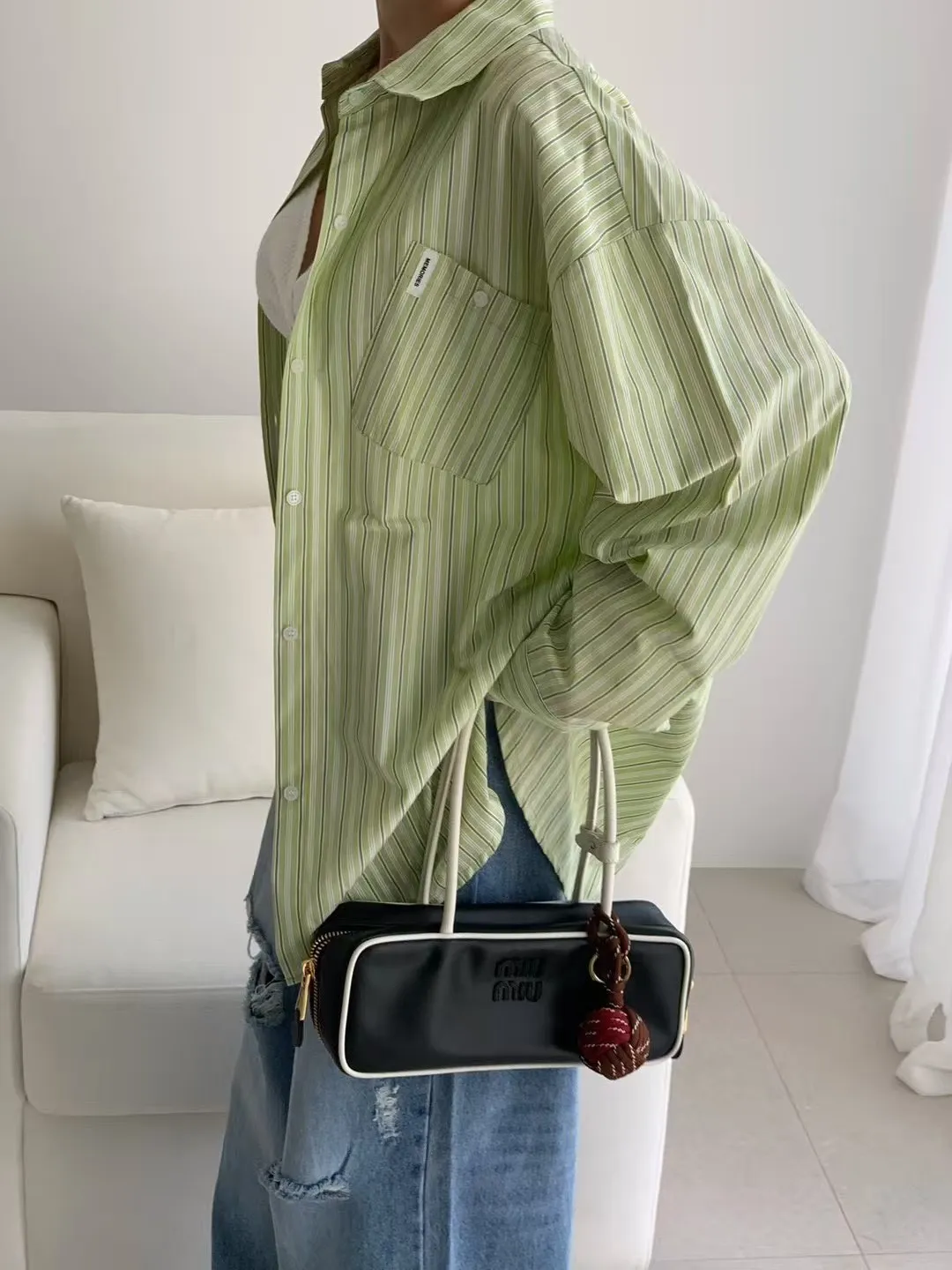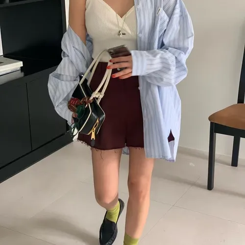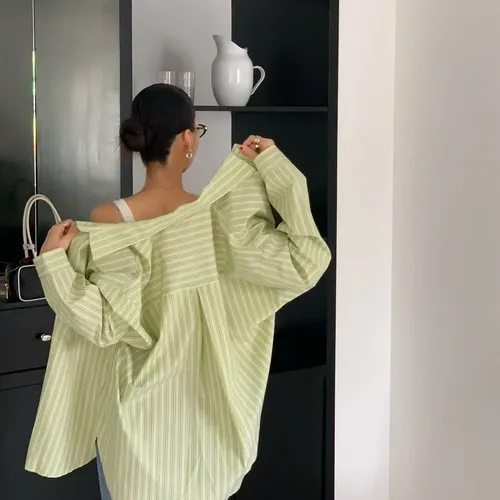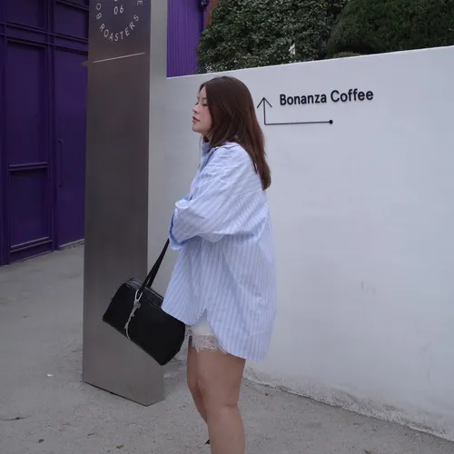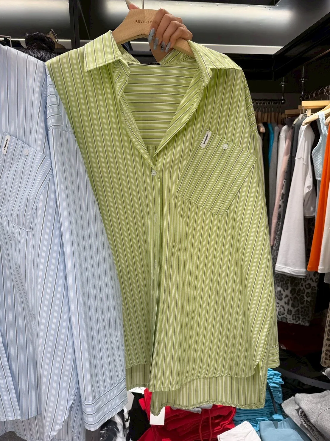 B3137 summer清爽直條口袋襯衫
