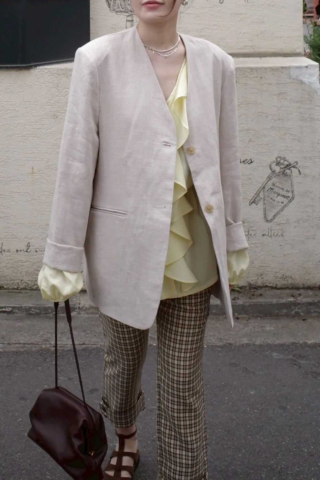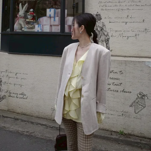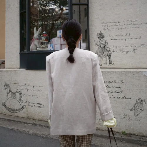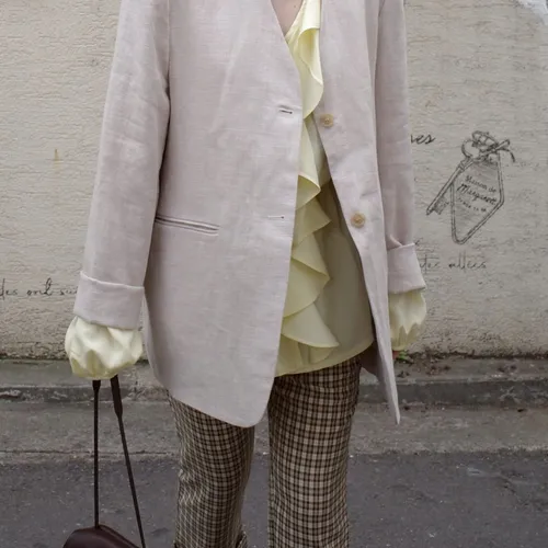 B3165 棉麻無領西裝外套