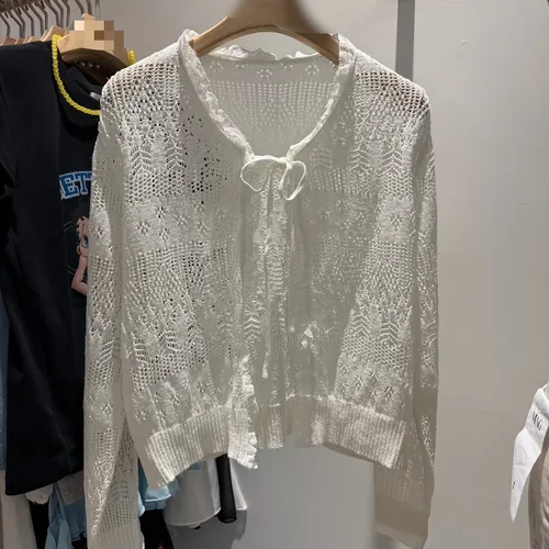 B3166 針織洞洞綁帶小外套