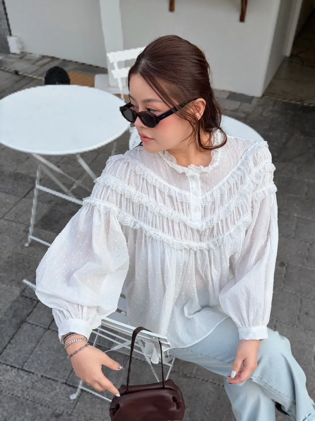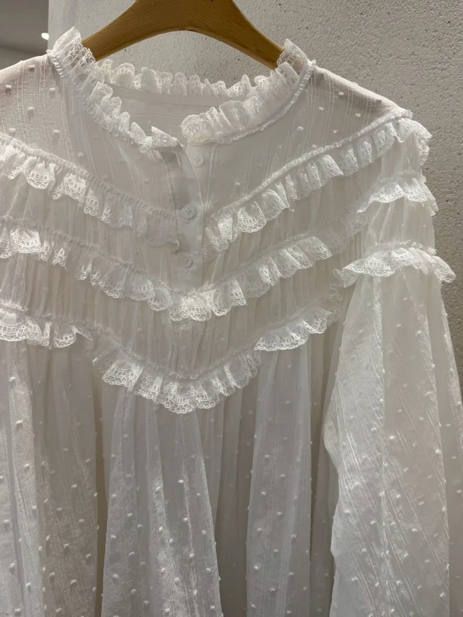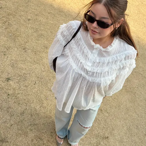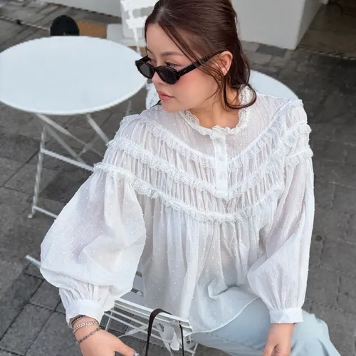 B3175 波點層次蕾絲上衣