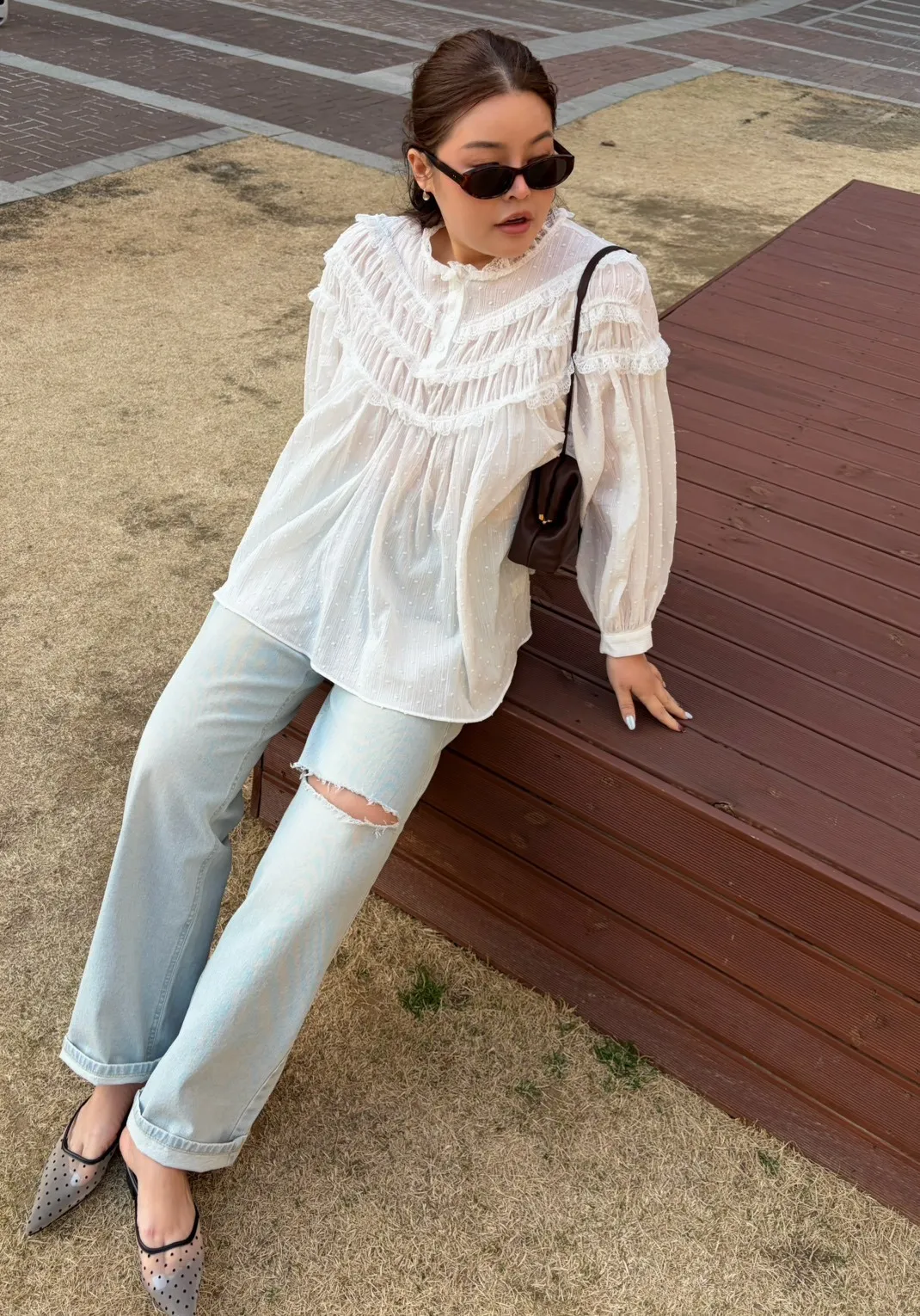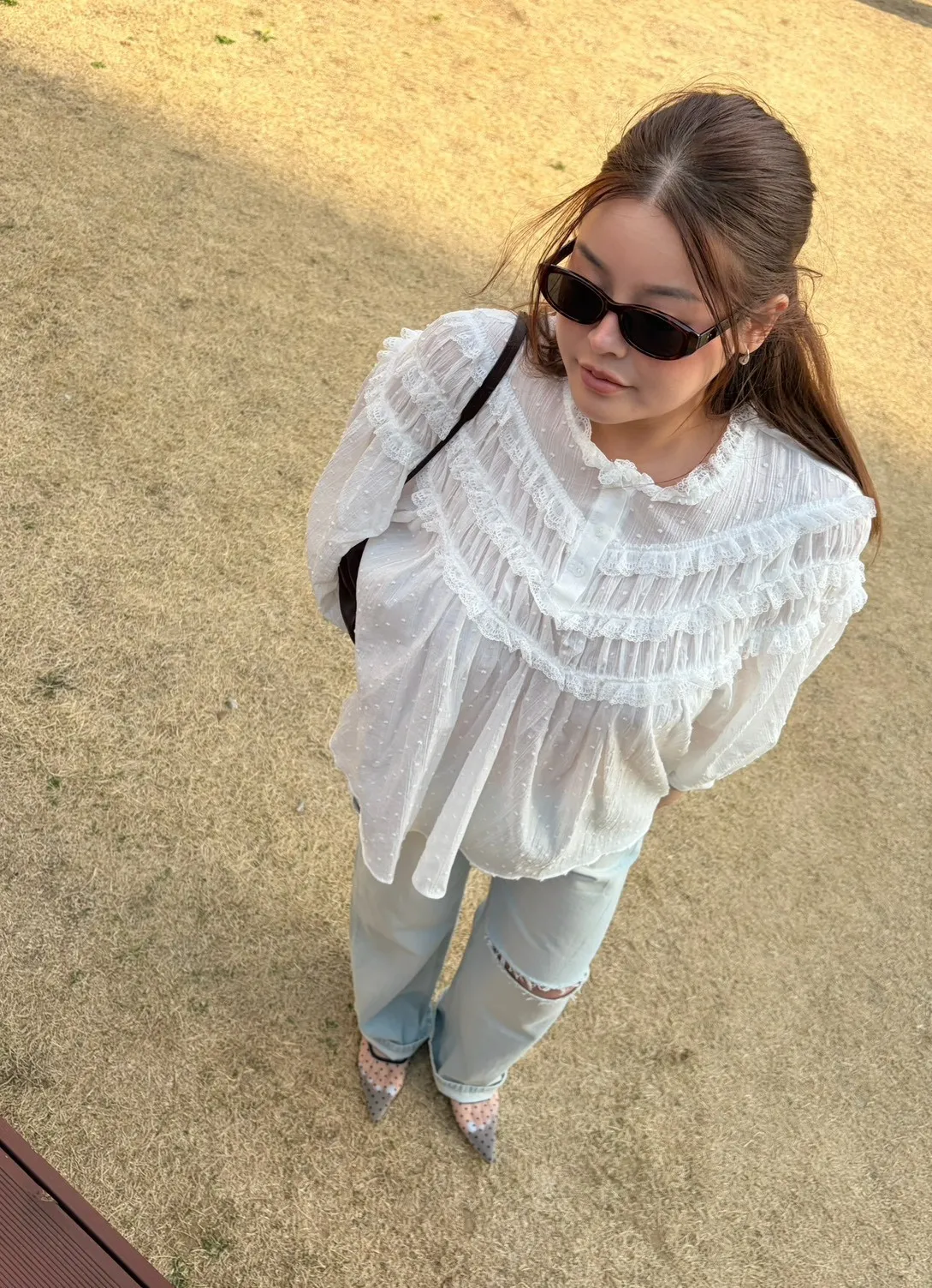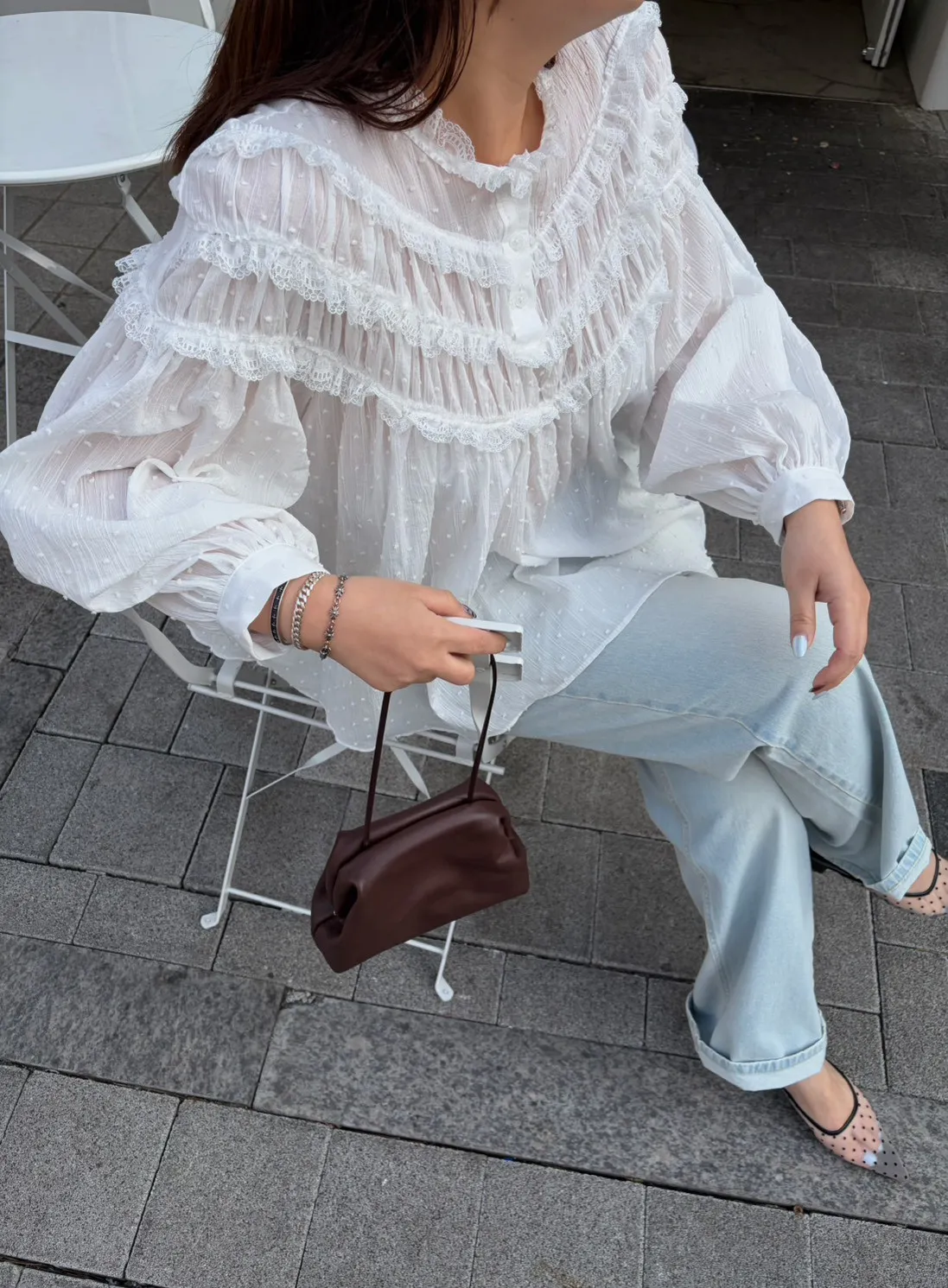 B3175 波點層次蕾絲上衣