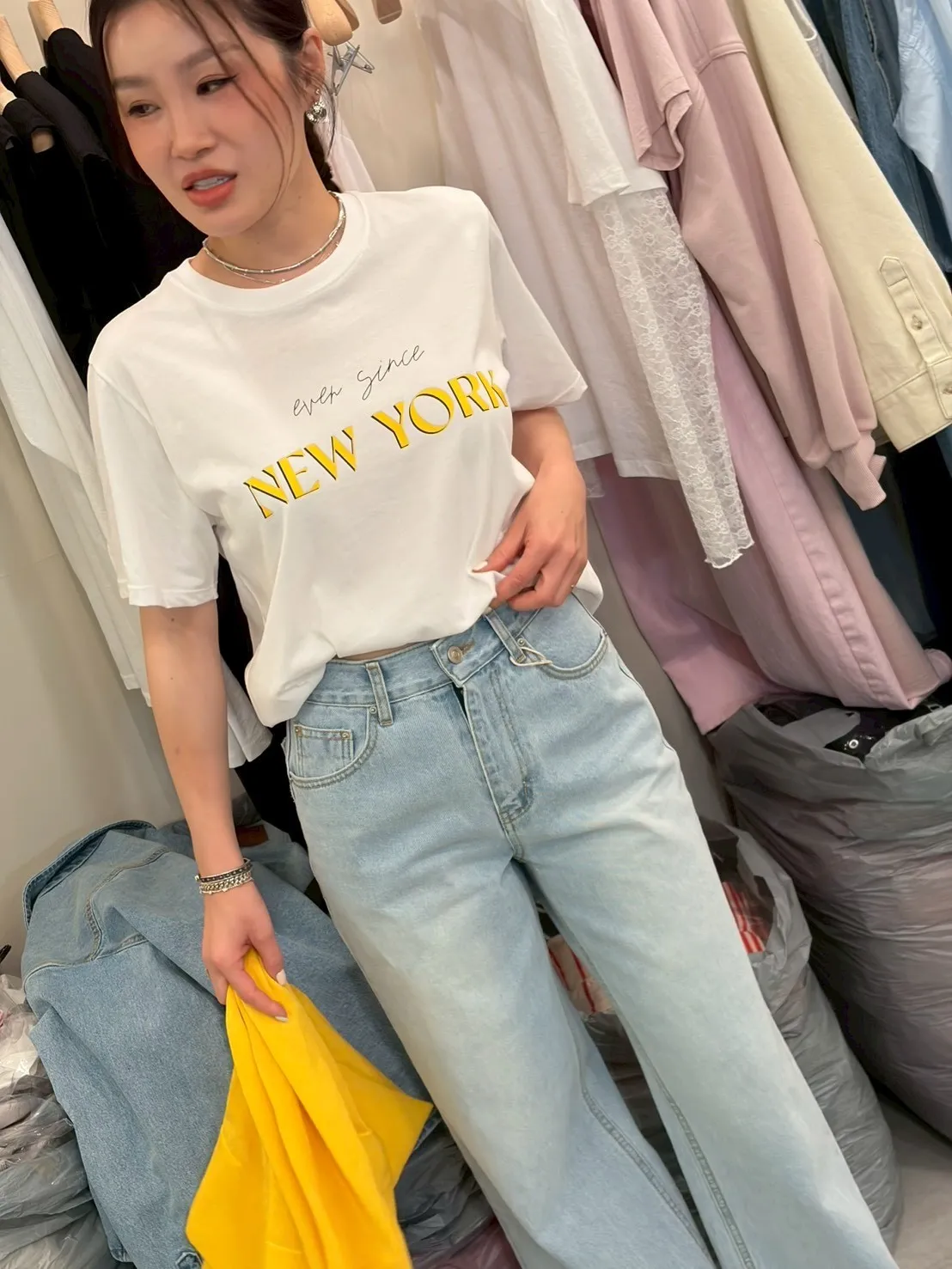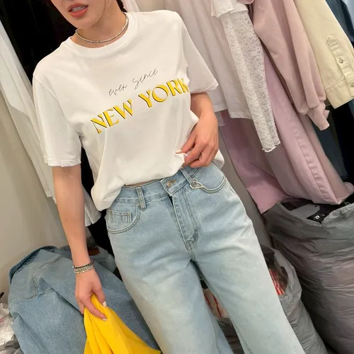 B3180 NY黃字母tee