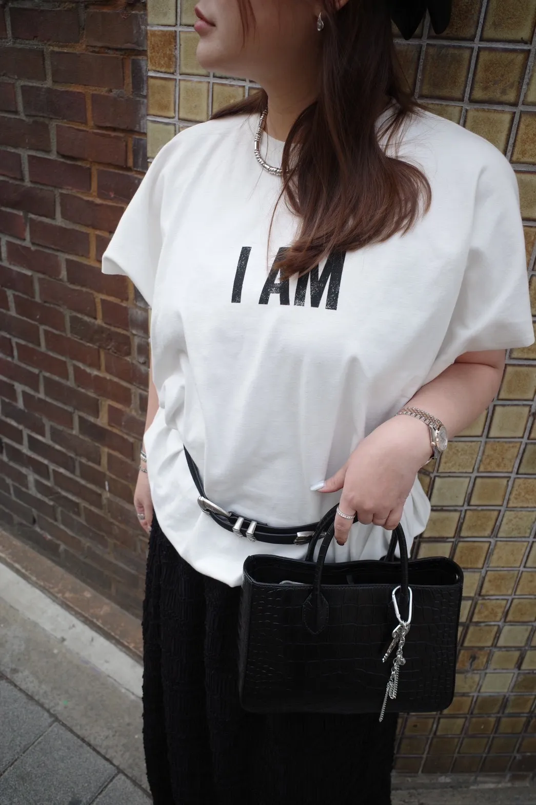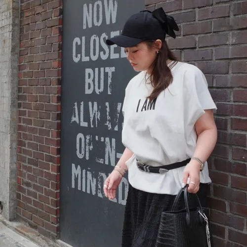 B3212 又軟又挺的彈性面料 I AM 寬袖剪裁tee