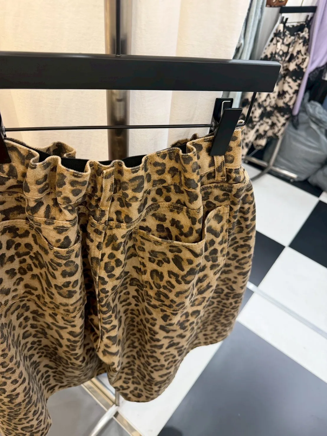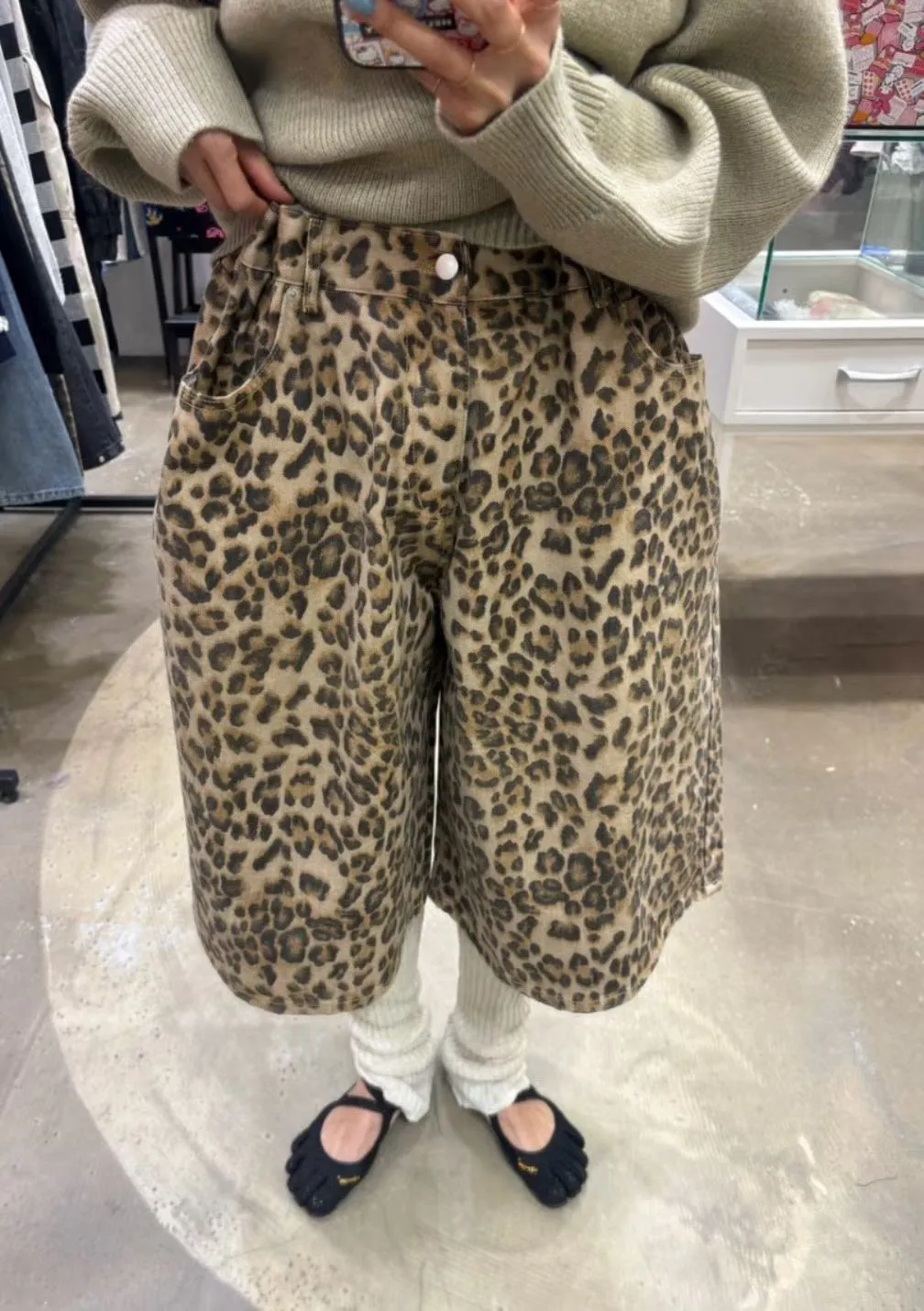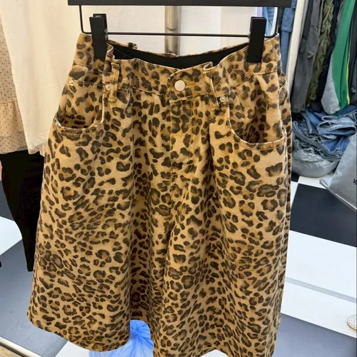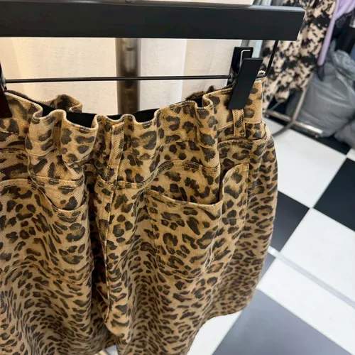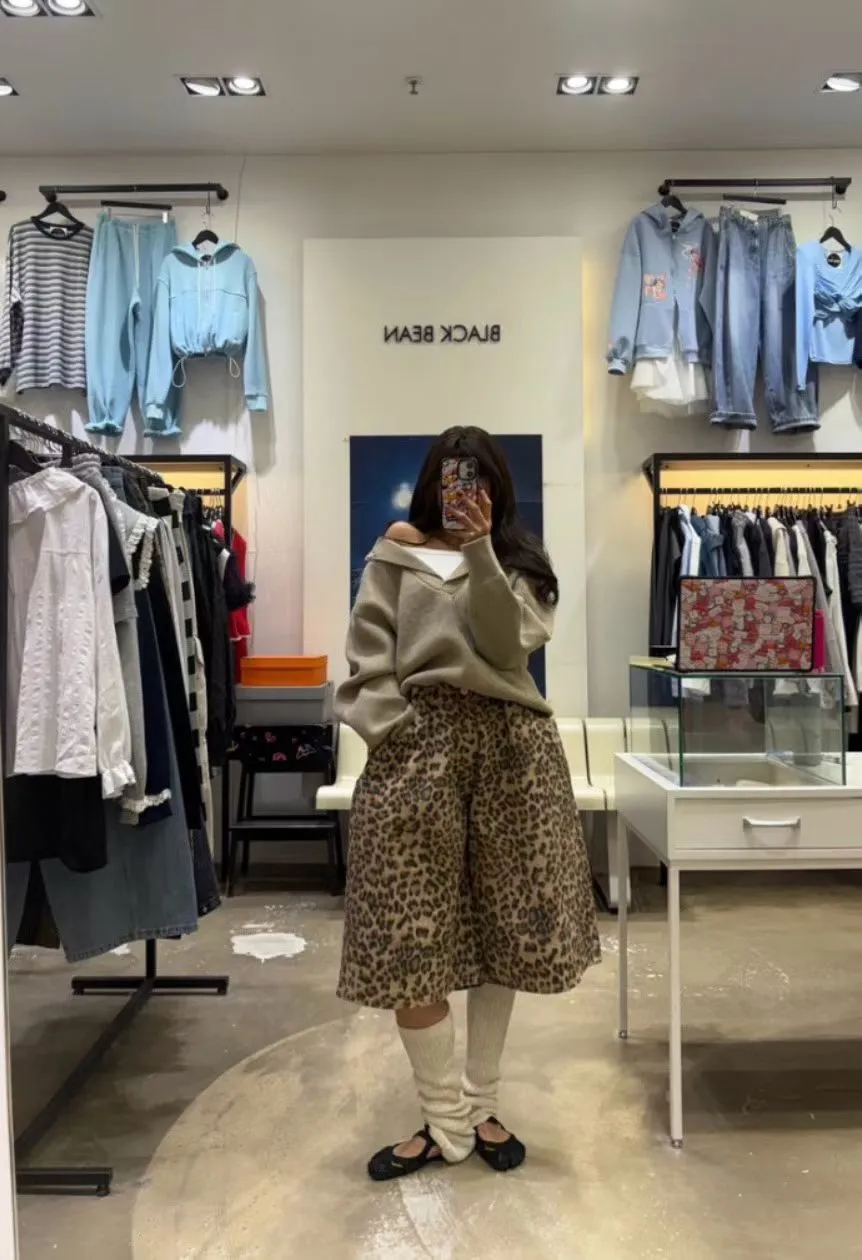 B3222 街頭豹紋伸縮大寬褲