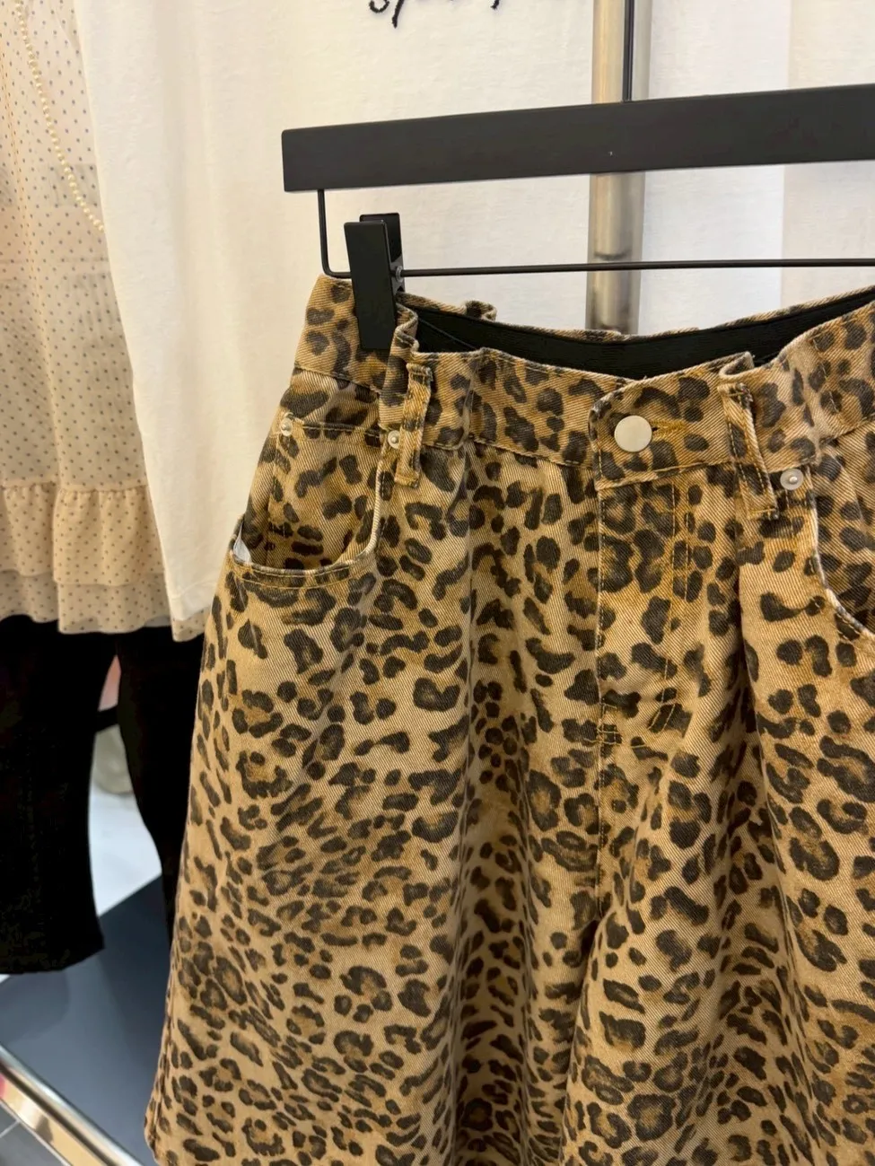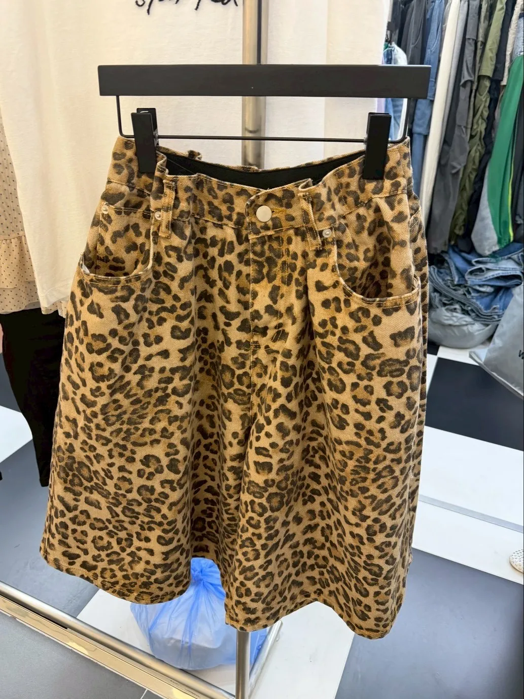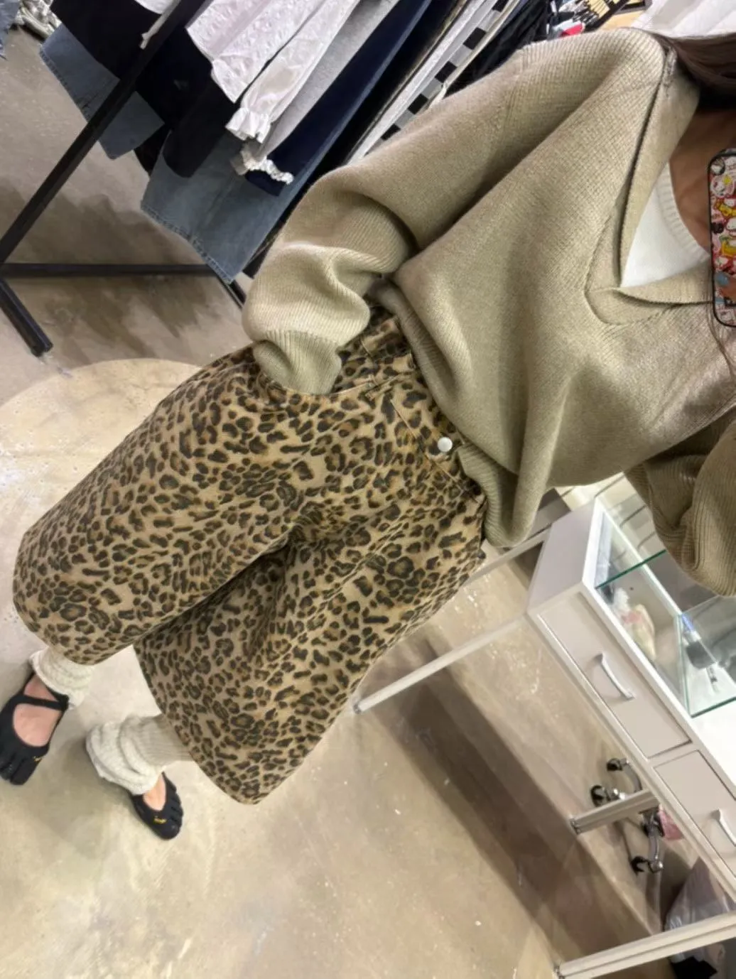 B3222 街頭豹紋伸縮大寬褲