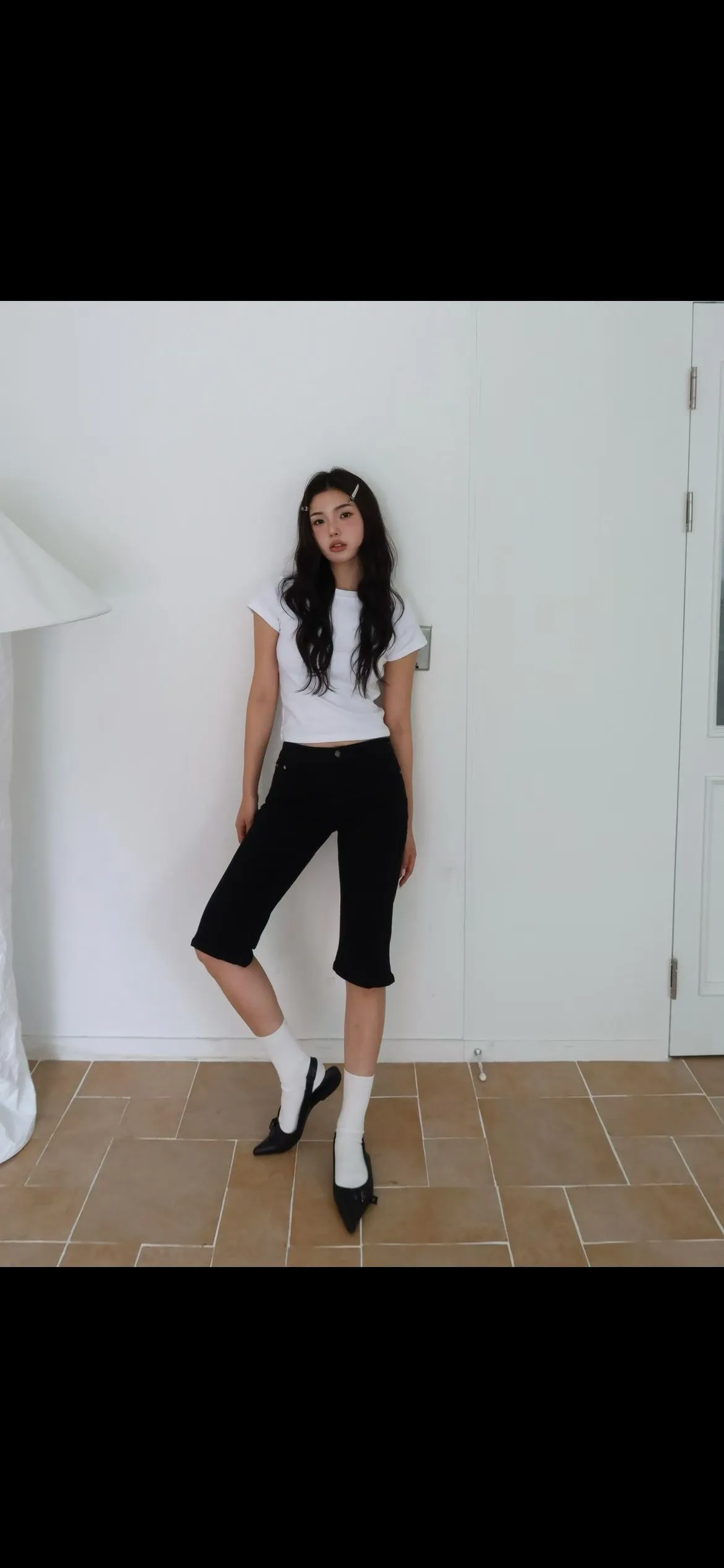 B3223 彈性立體剪裁5分褲 #時髦卡布里褲
