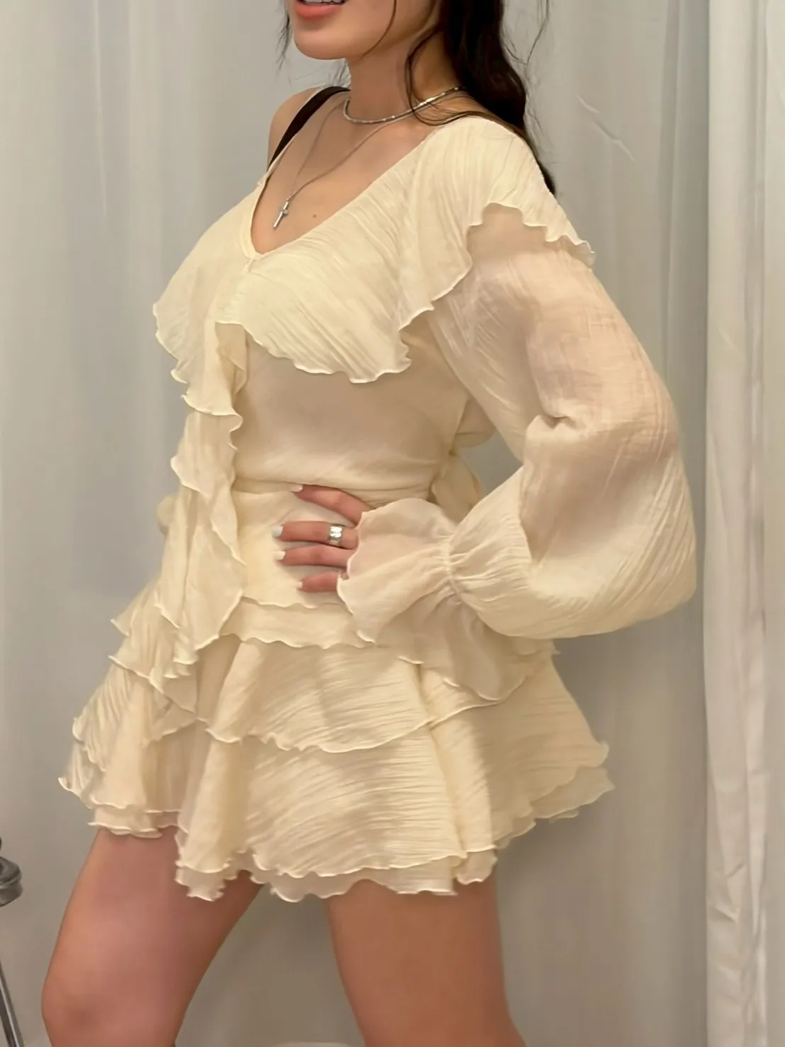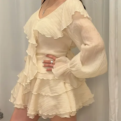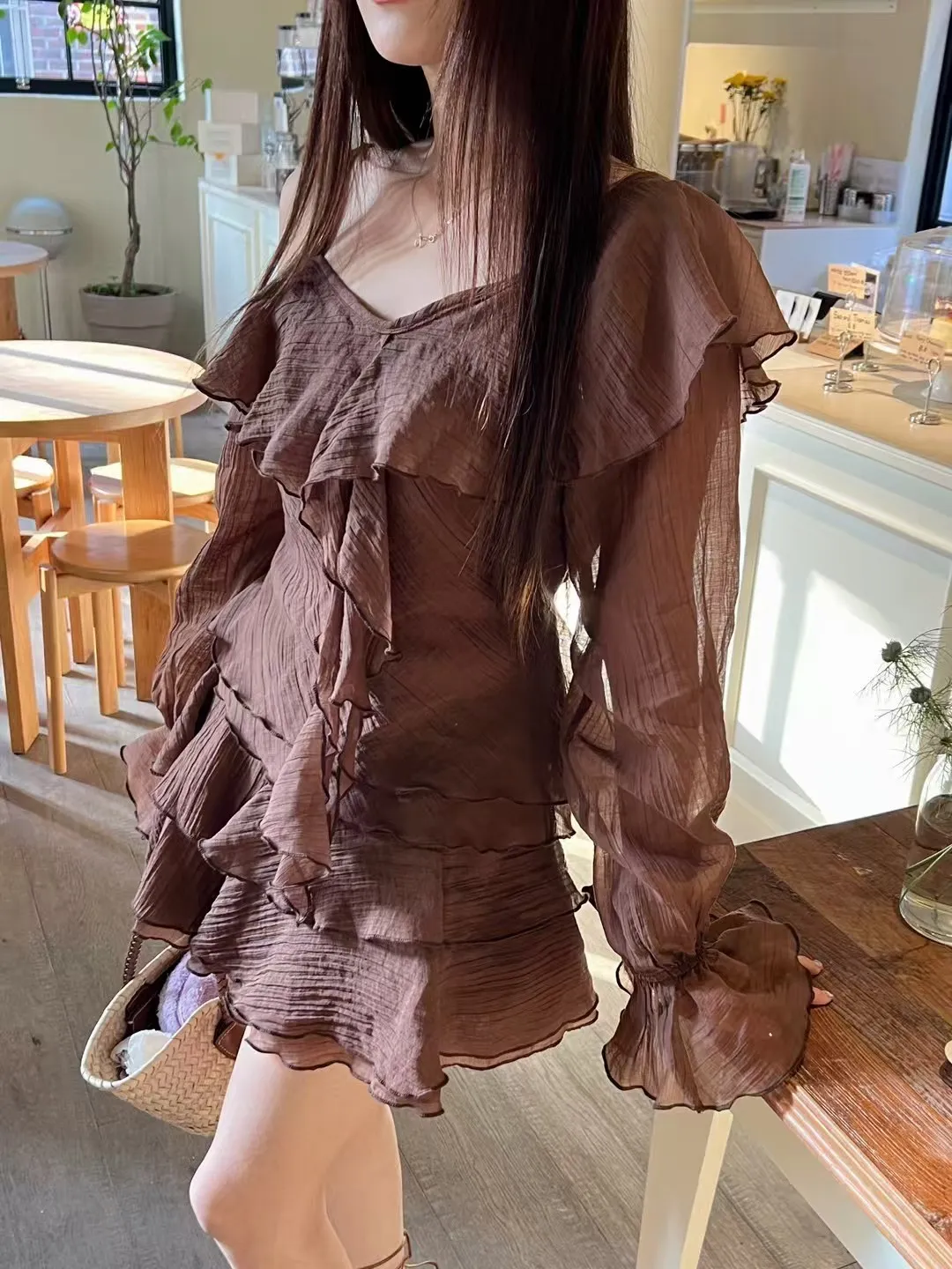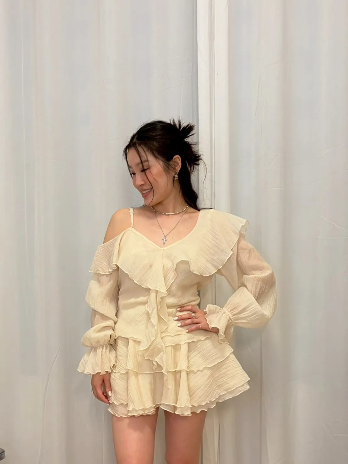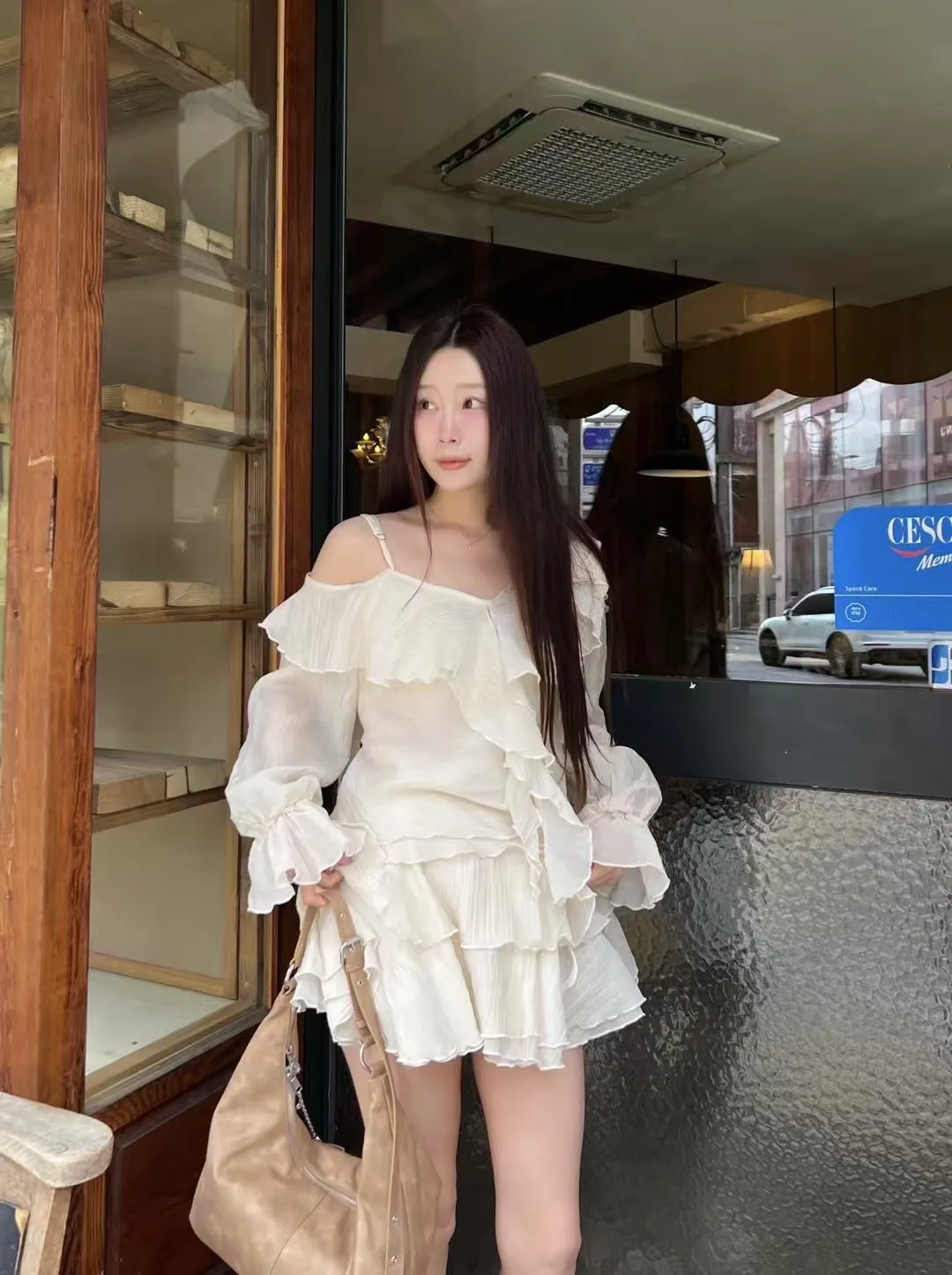 B3227 雪紡斜肩浪漫上衣/褲裙