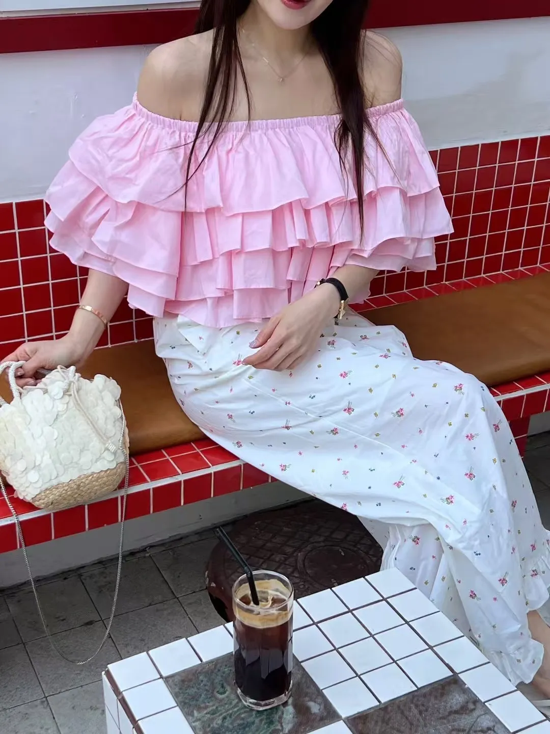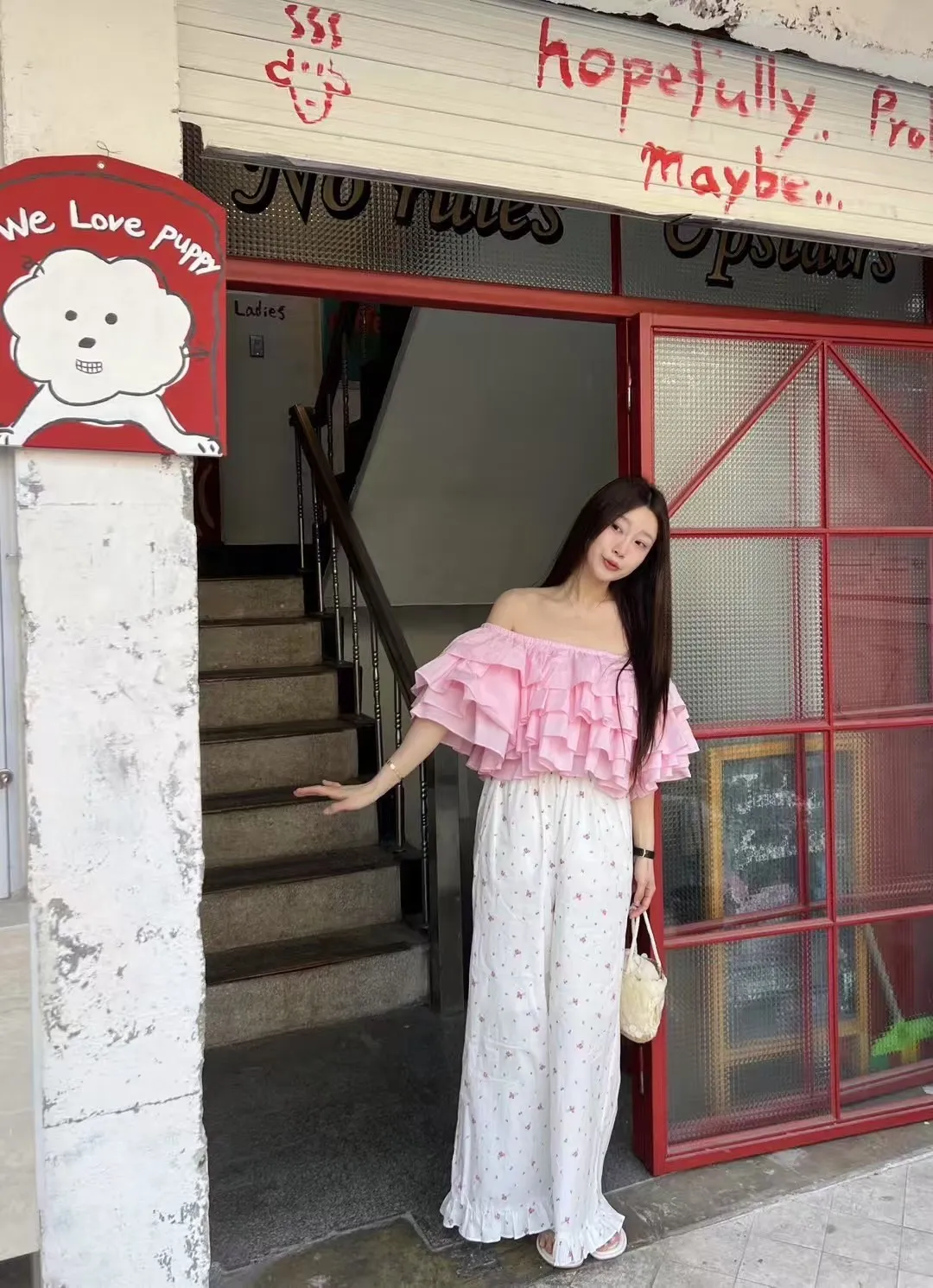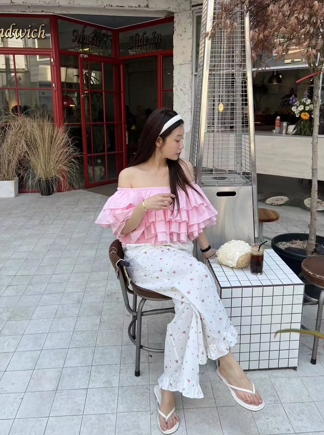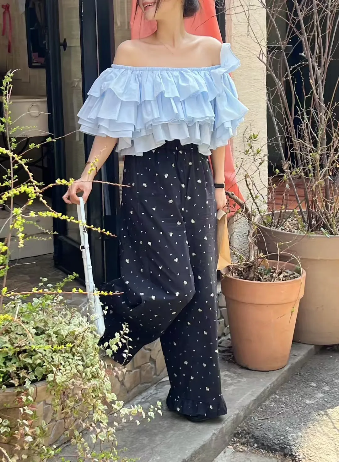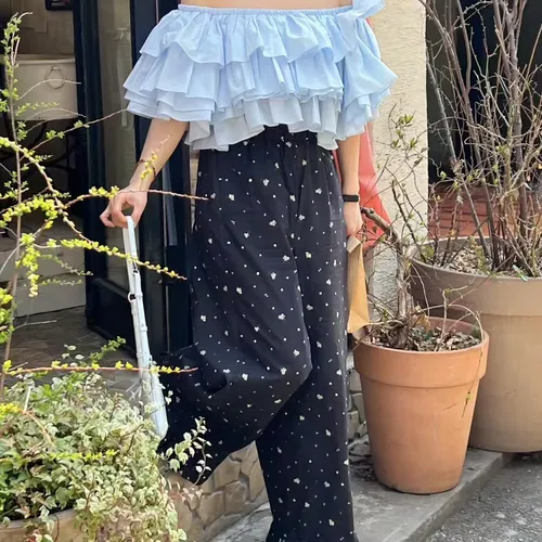 B3229 荷葉邊花卉長褲