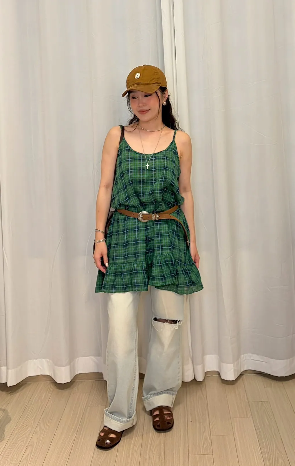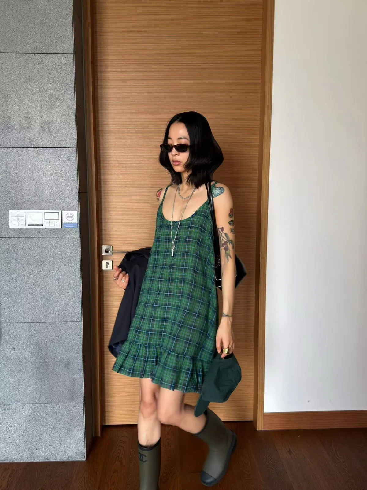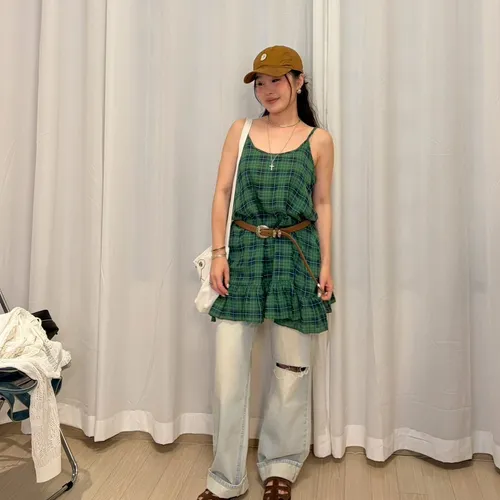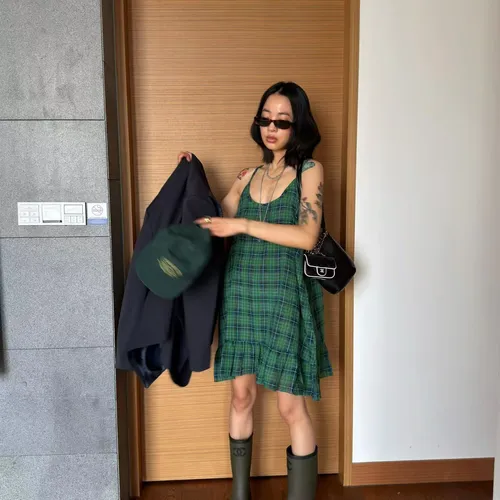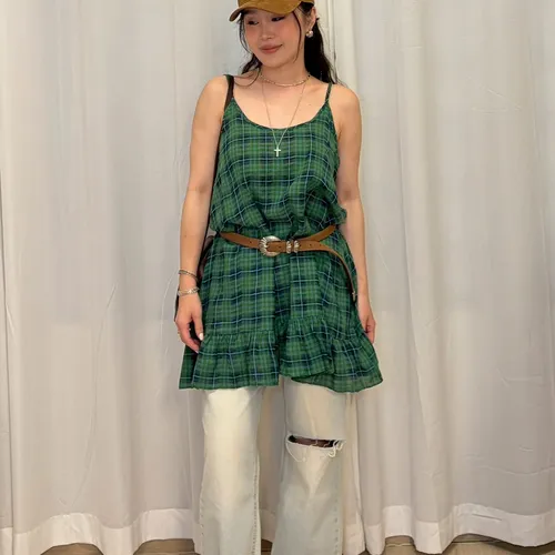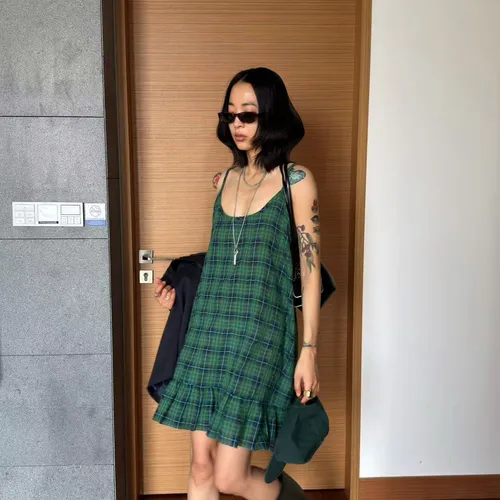 B3245 麻料格子可愛洋裝