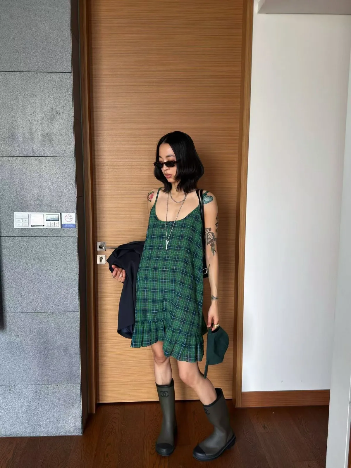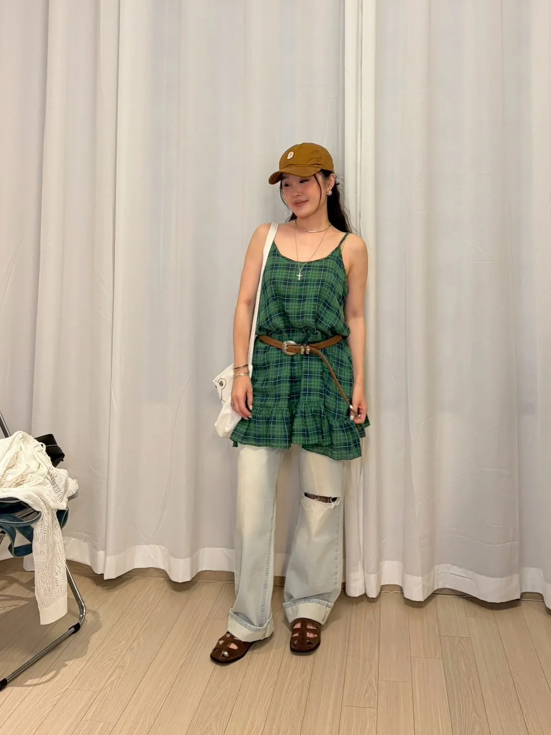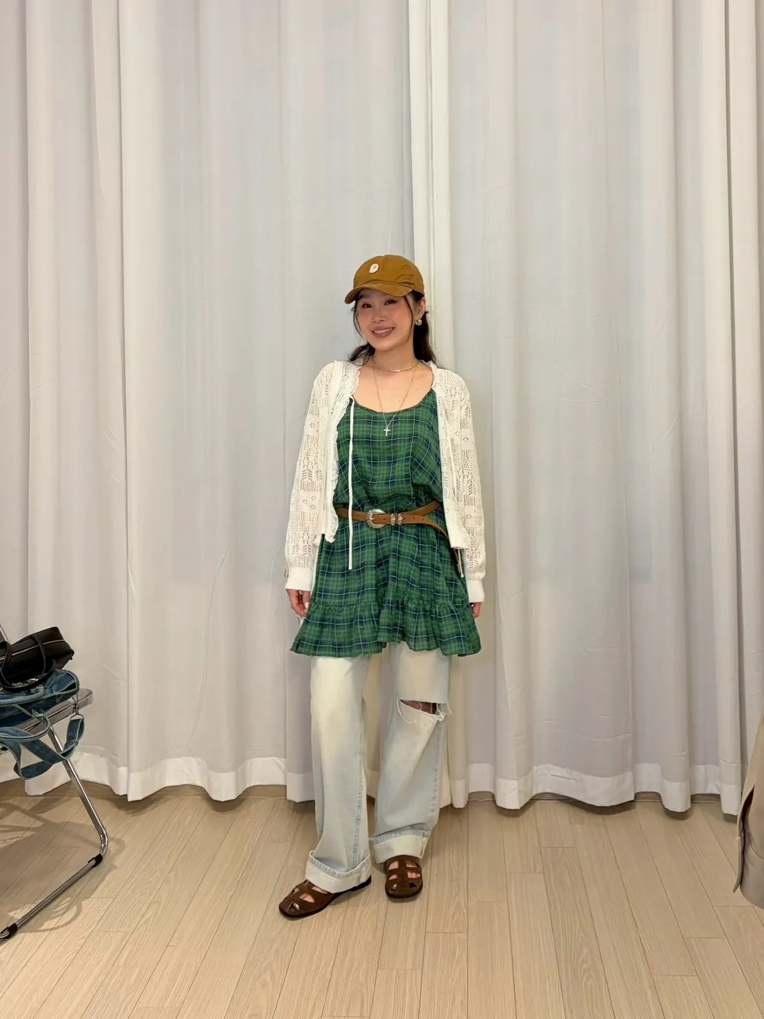 B3245 麻料格子可愛洋裝