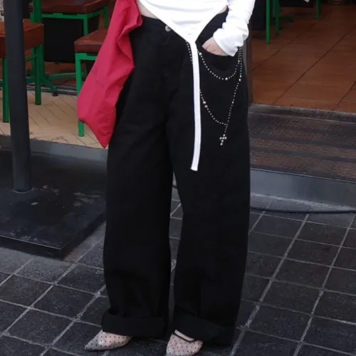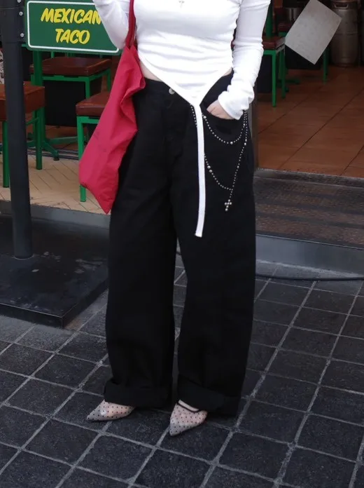 B3249 卯釘十字架腰鏈暗黑牛仔褲