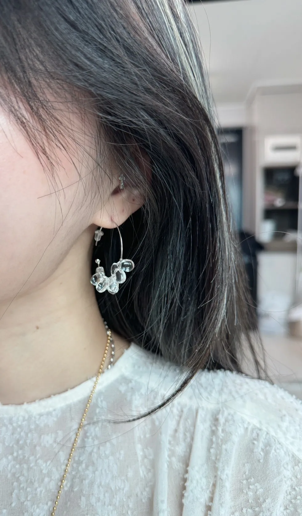 RR1714水滴白水晶優雅耳環