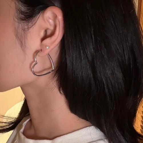 RR2246 S925純銀 愛心線條耳環