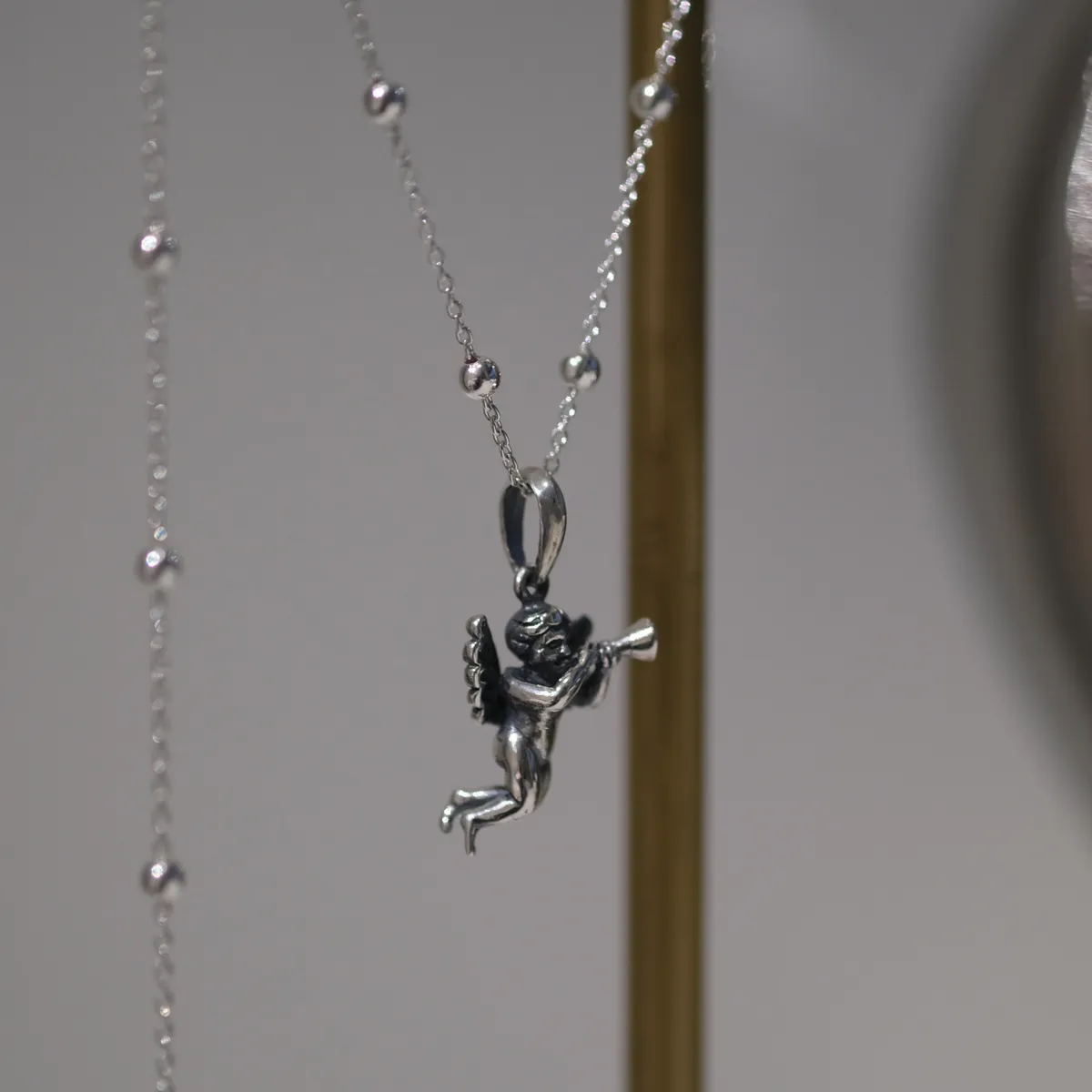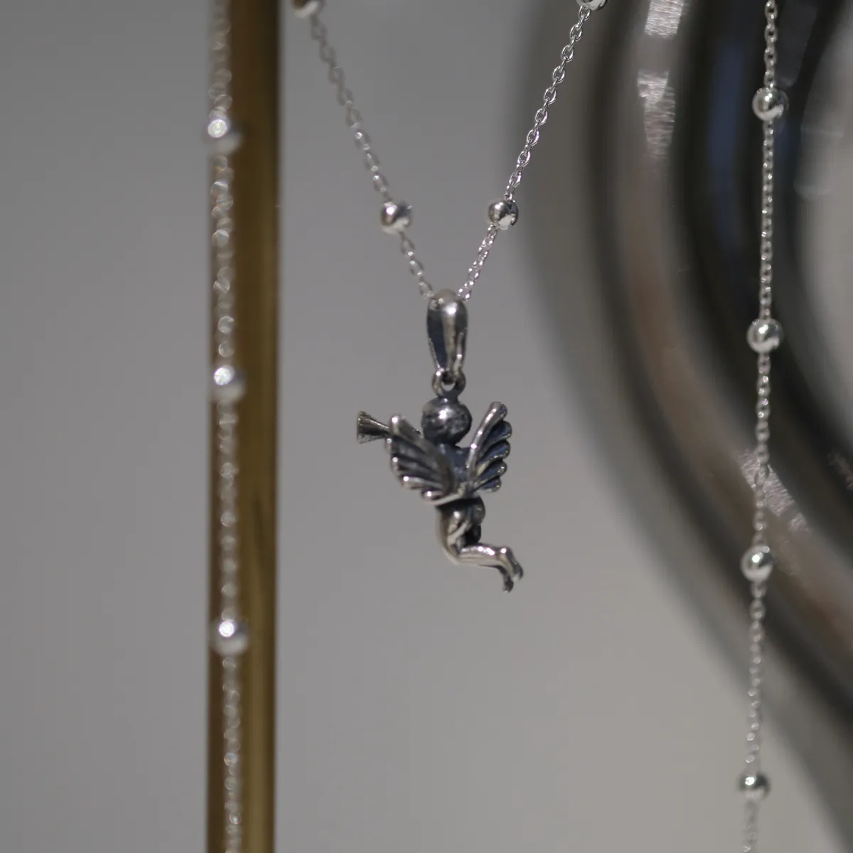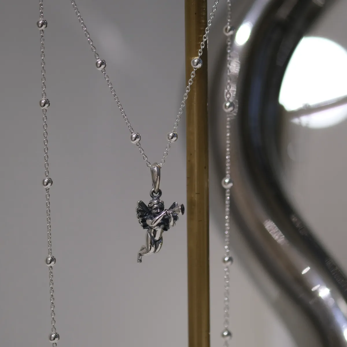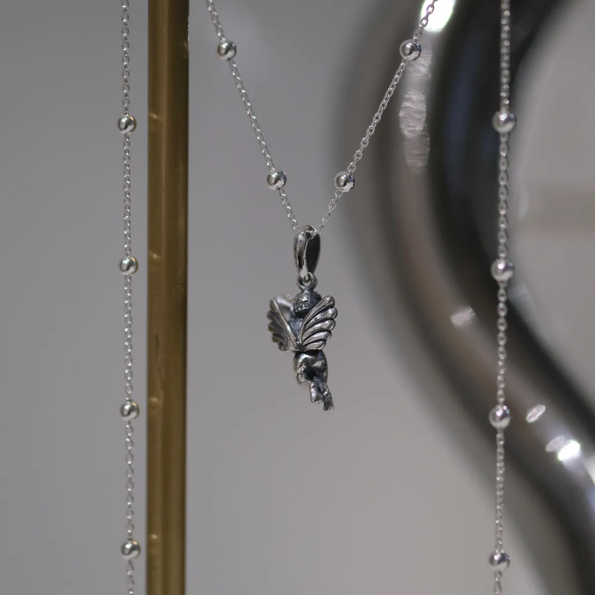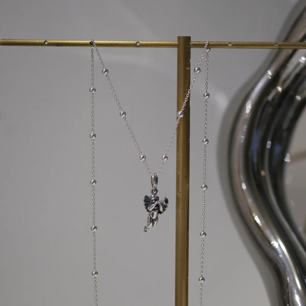 RR2250 S925純銀 立體小天使可調節珠珠項鍊