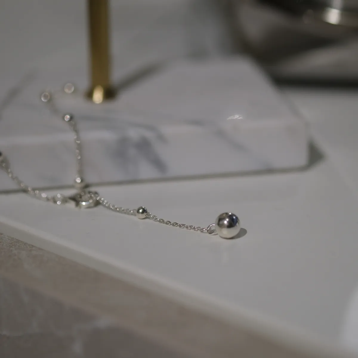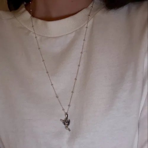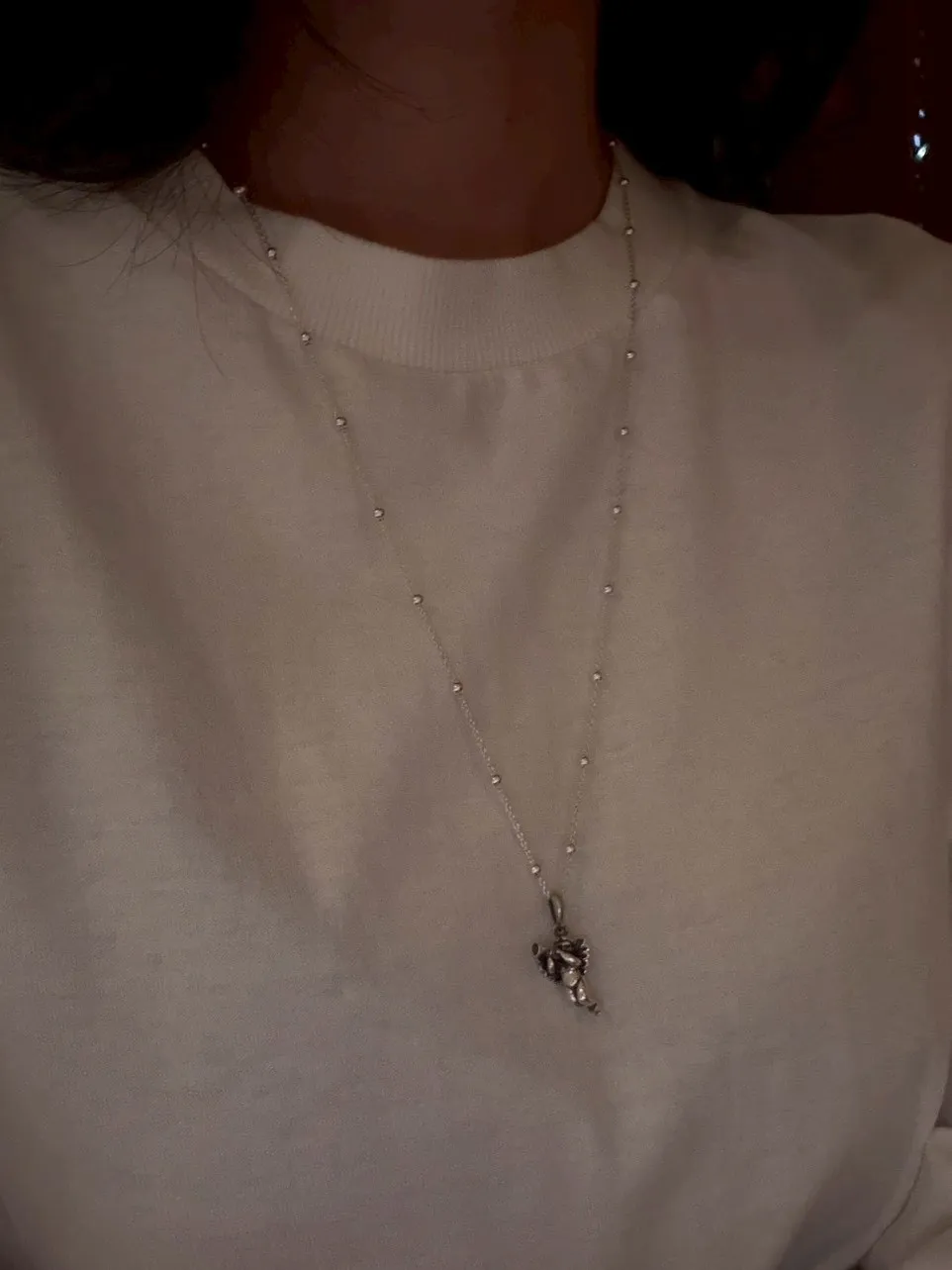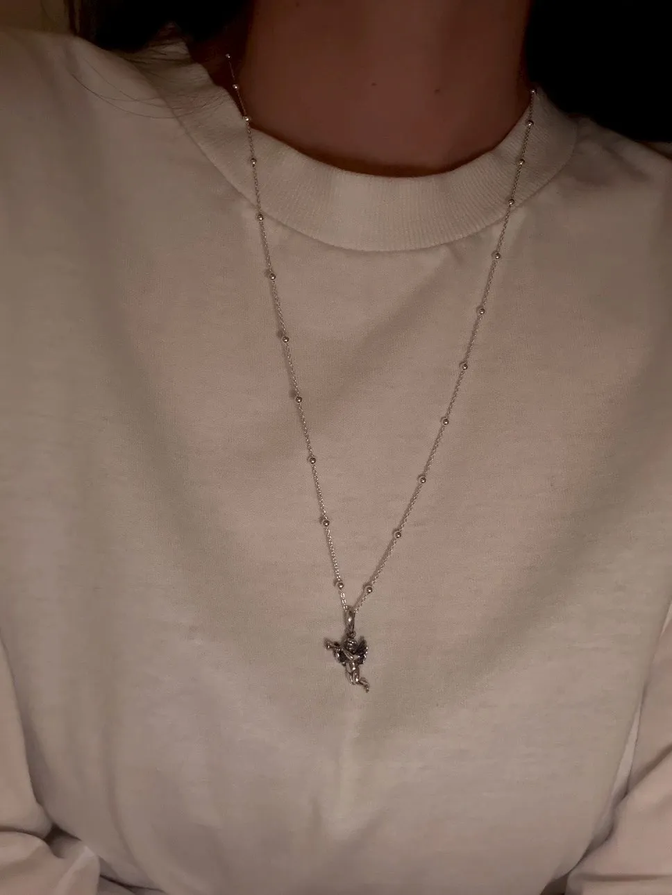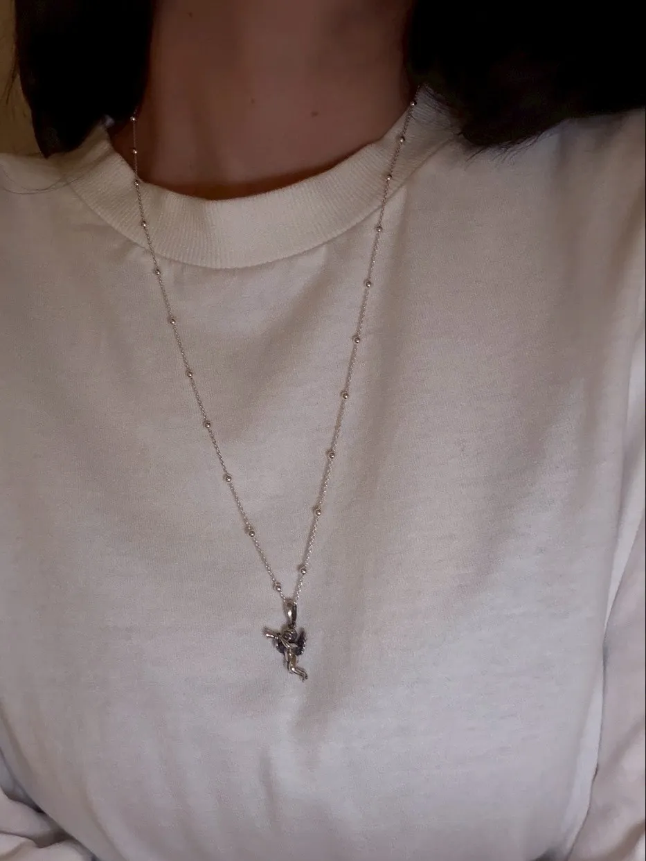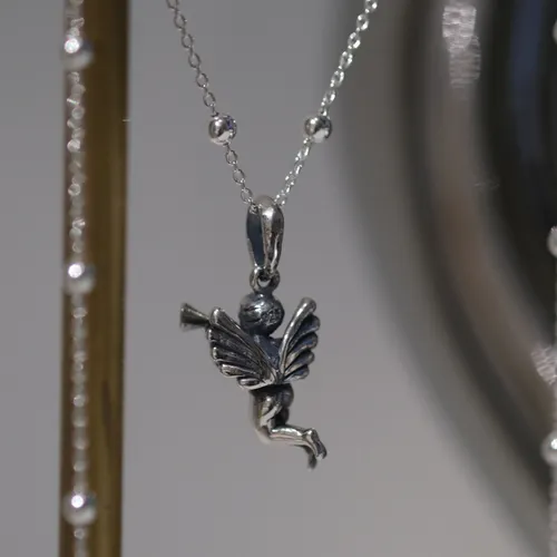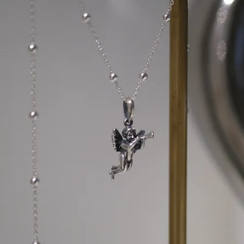 RR2250 S925純銀 立體小天使可調節珠珠項鍊