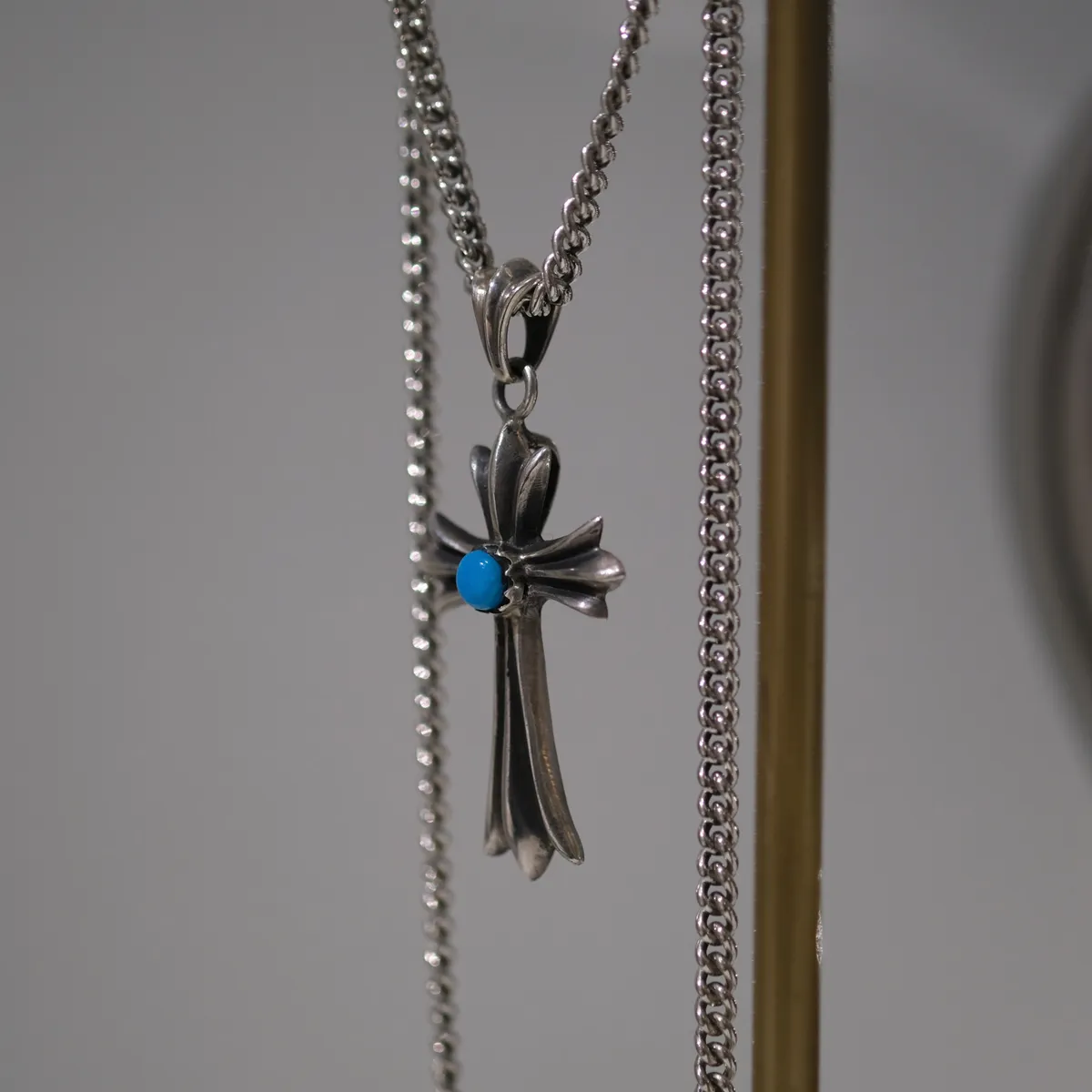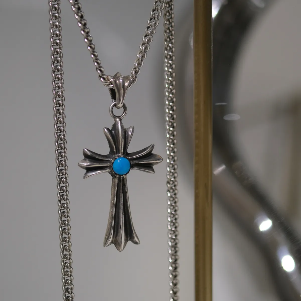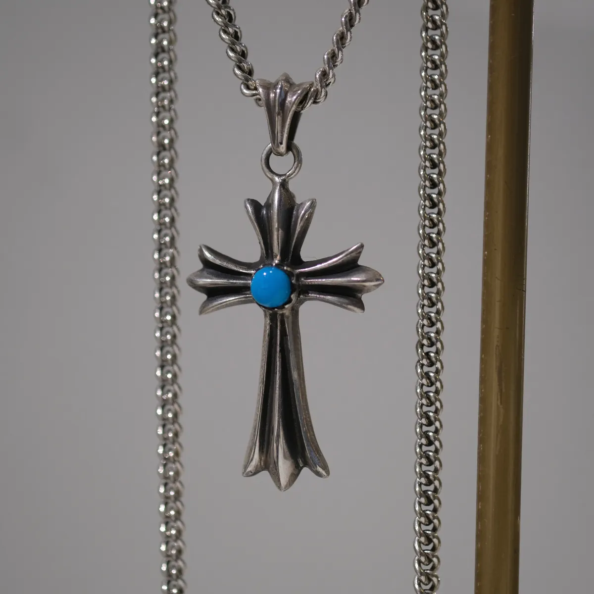 RR2252 S925純銀 美國青綠石雕刻十字墜飾/個性重質粗鍊