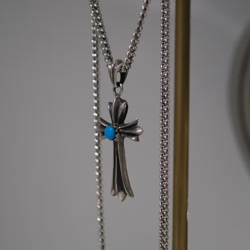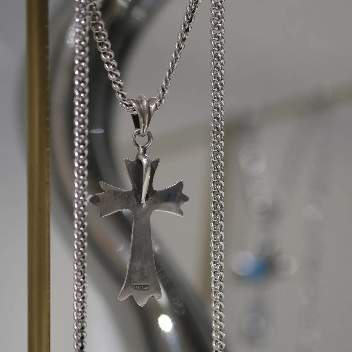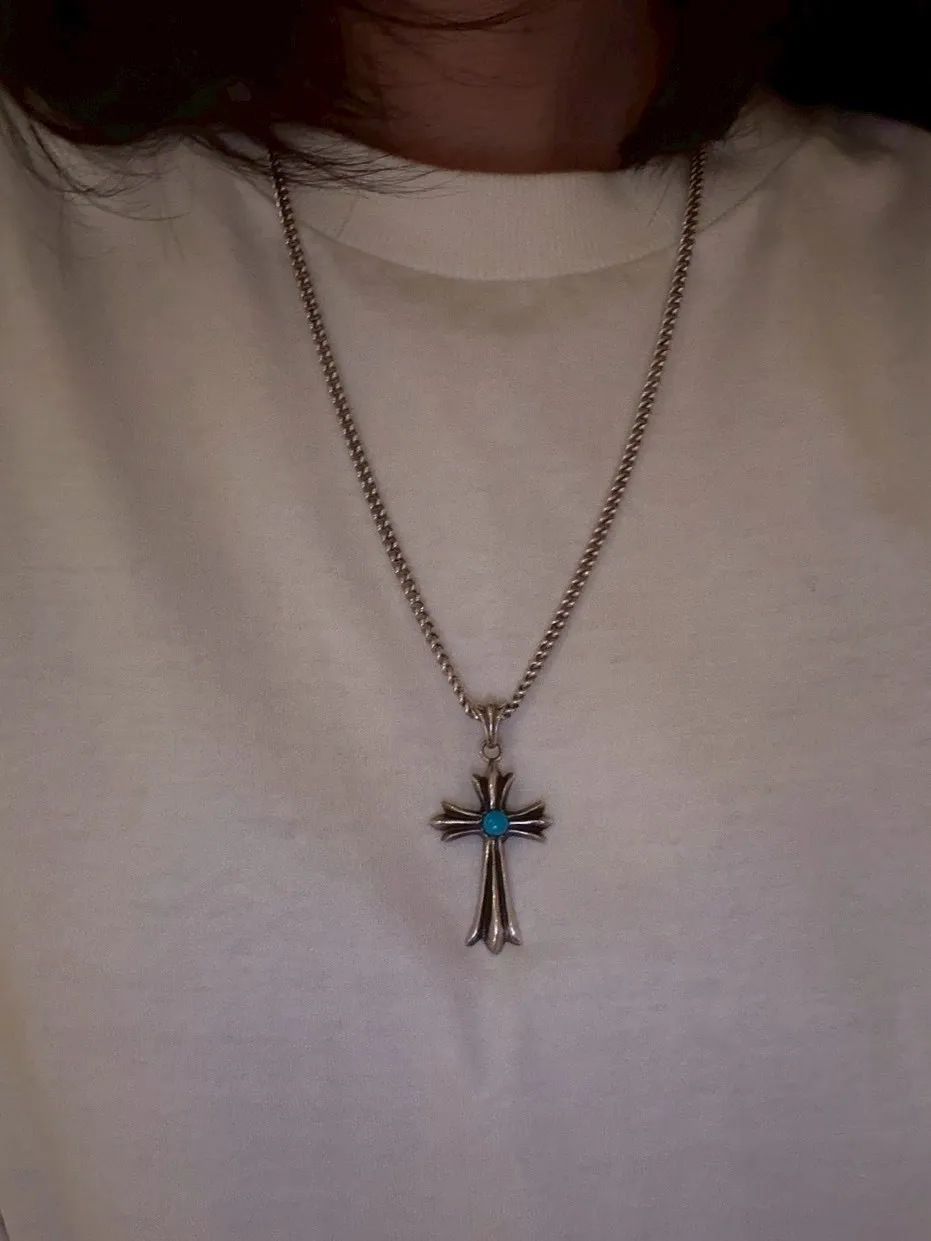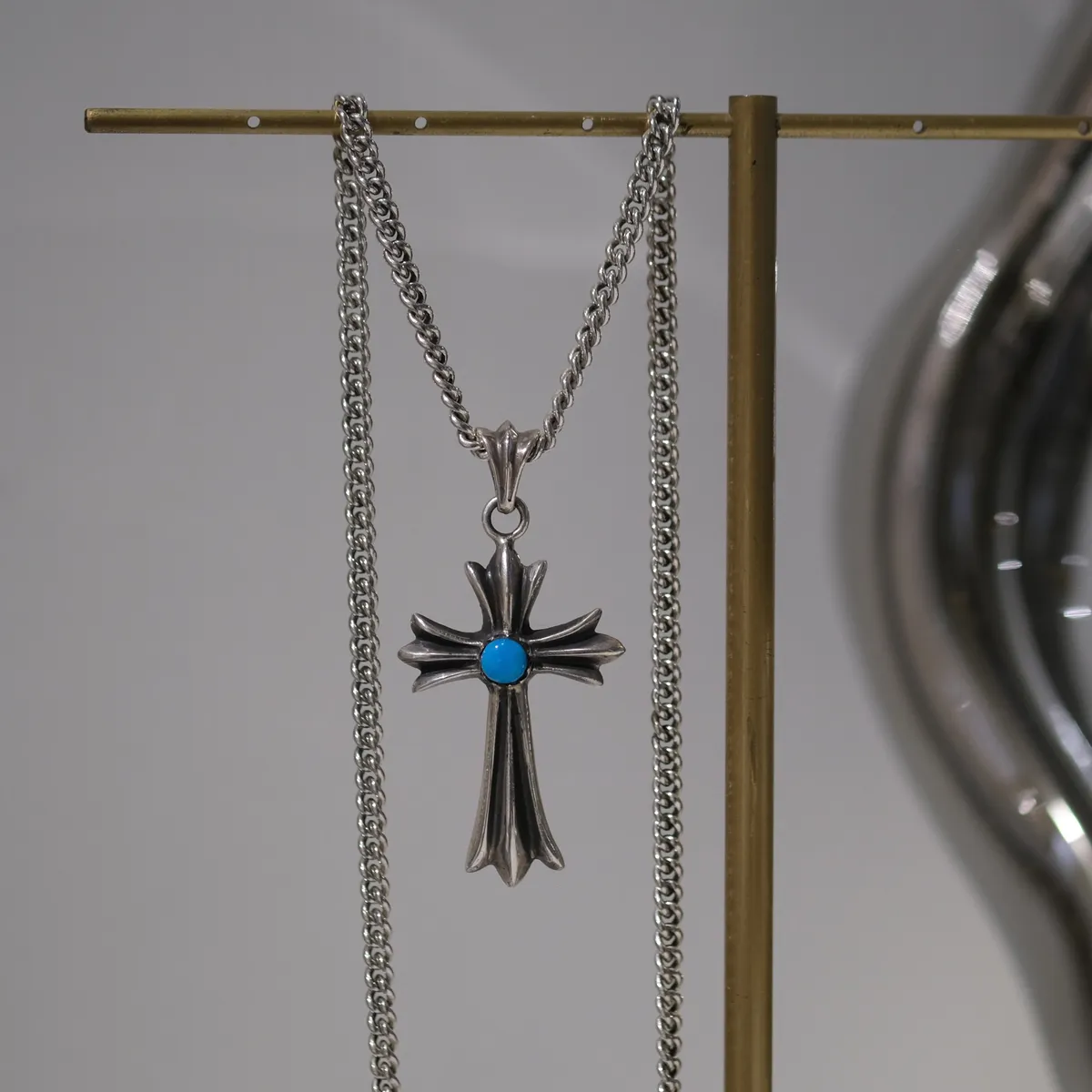 RR2252 S925純銀 美國青綠石雕刻十字墜飾/個性重質粗鍊