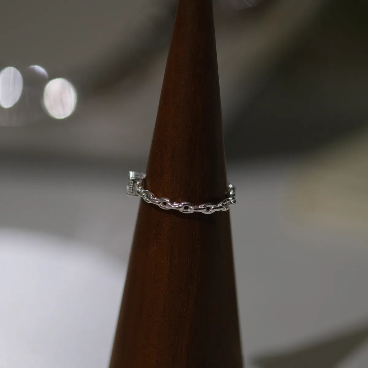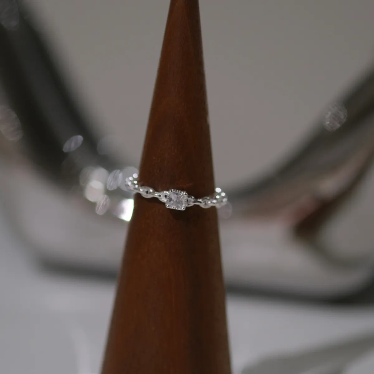RR2261 S925純銀 方鑽鎖鏈感開口戒