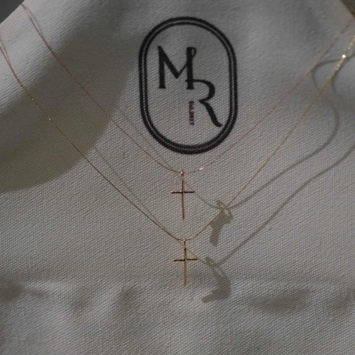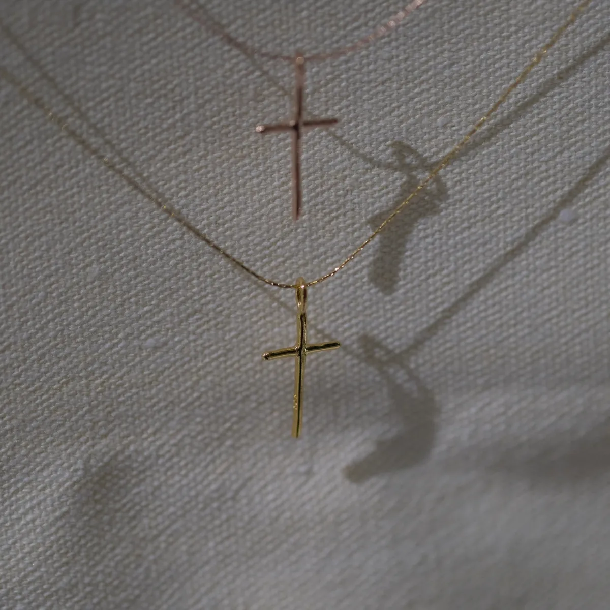 RR2265 S925純銀 槌紋十字精細紋項鍊