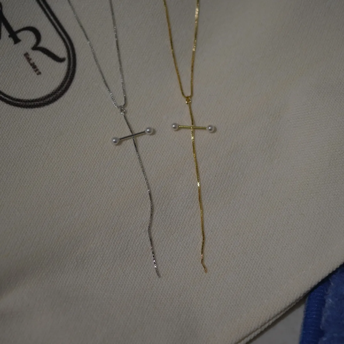 RR2268 S925純銀 珍珠十字軟鍊項鍊