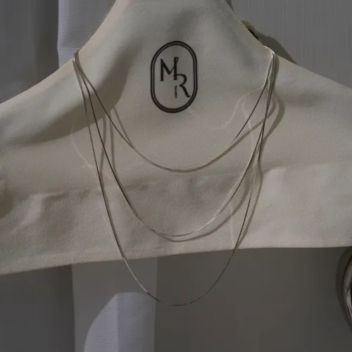 RR2274 S925純銀 方形蛇鍊層次項鏈