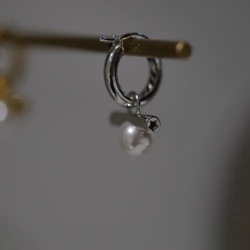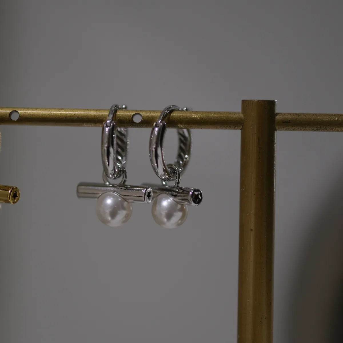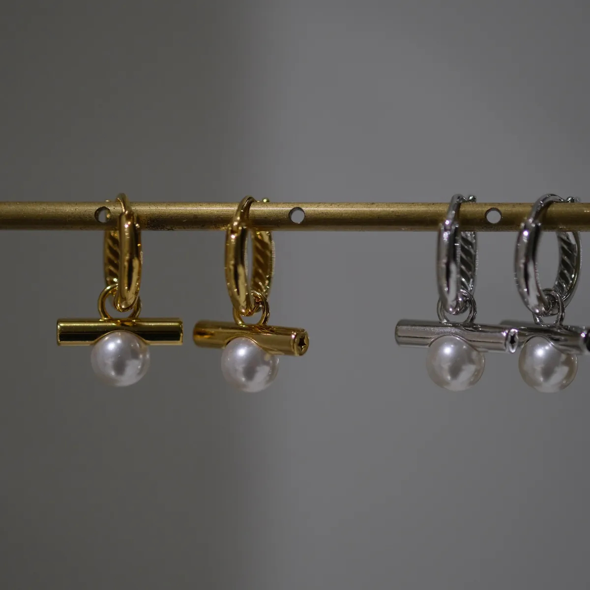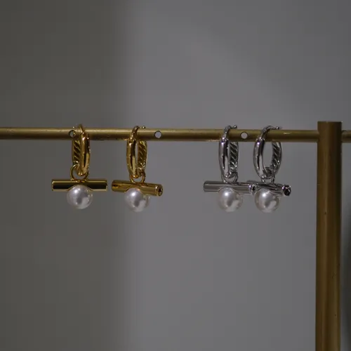RR2279 S925純銀 珍珠T型墜掛耳環