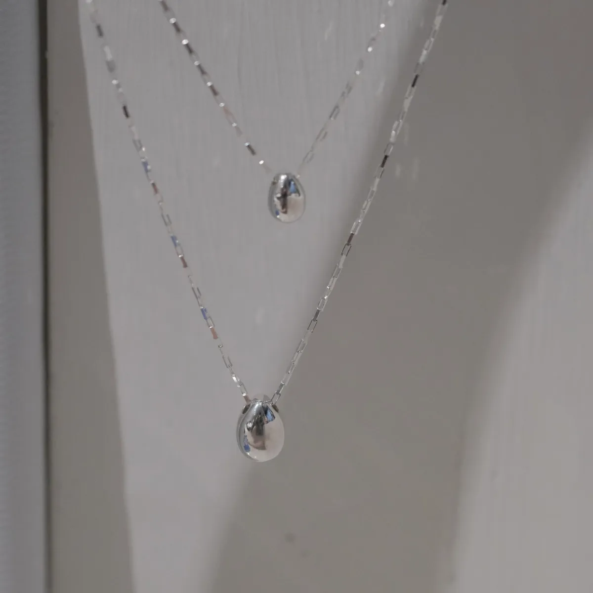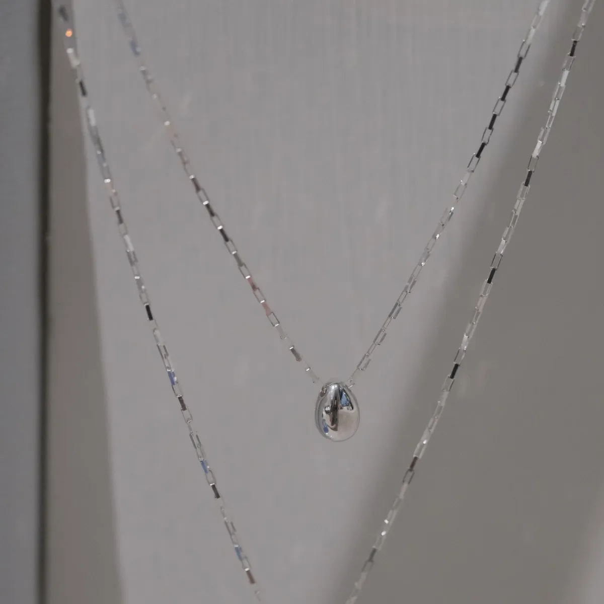 RR2293 S925純銀 方形鍊圈蛋型墜飾項鍊