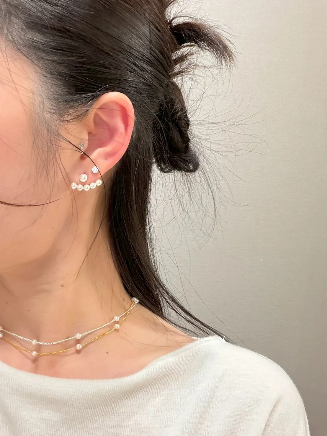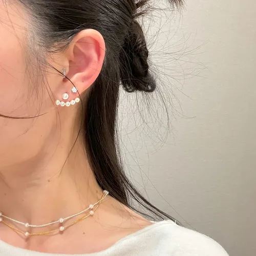 RR2327 S925純銀 前後排墜珍珠耳環