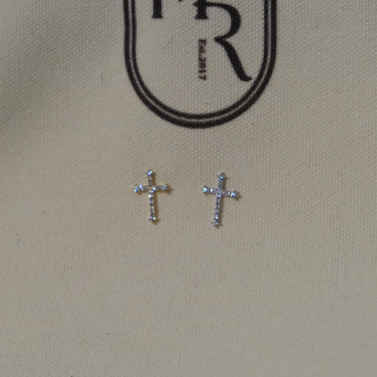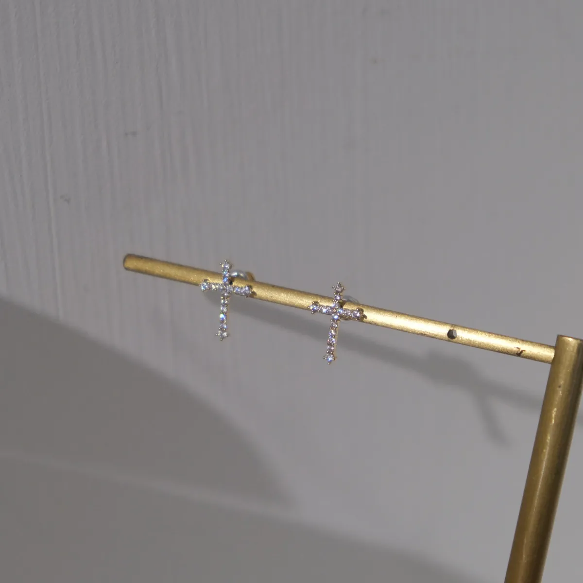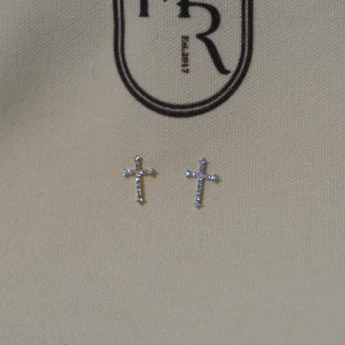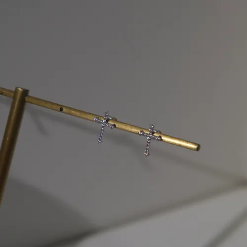 RR2355 銅鍍k金 十字架鑽飾耳環