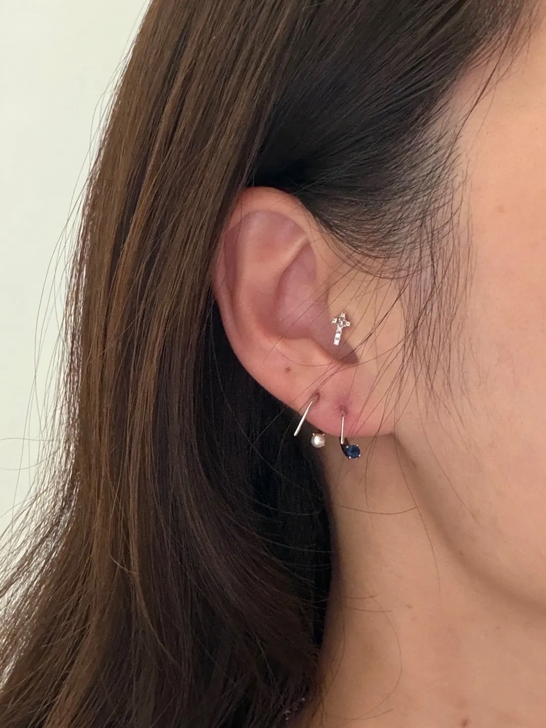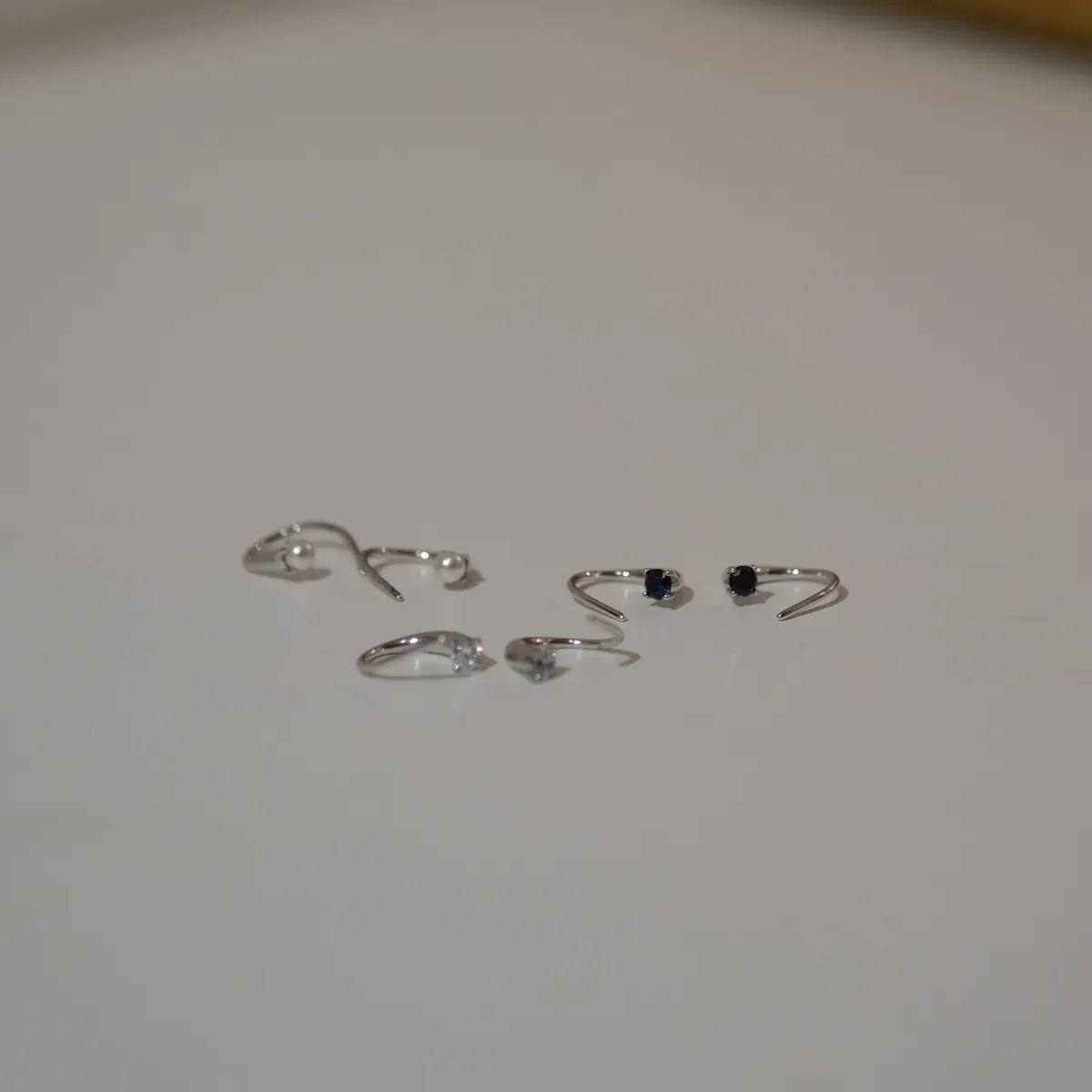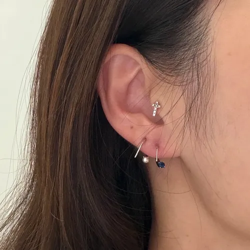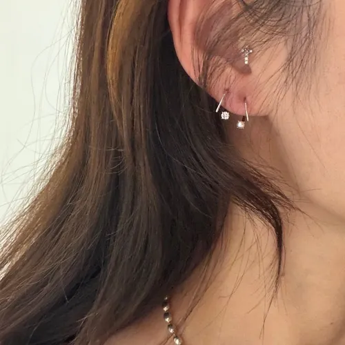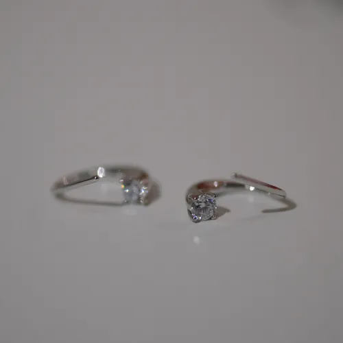 RR2363 S925純銀 單鑽/珍珠勾式精緻耳環