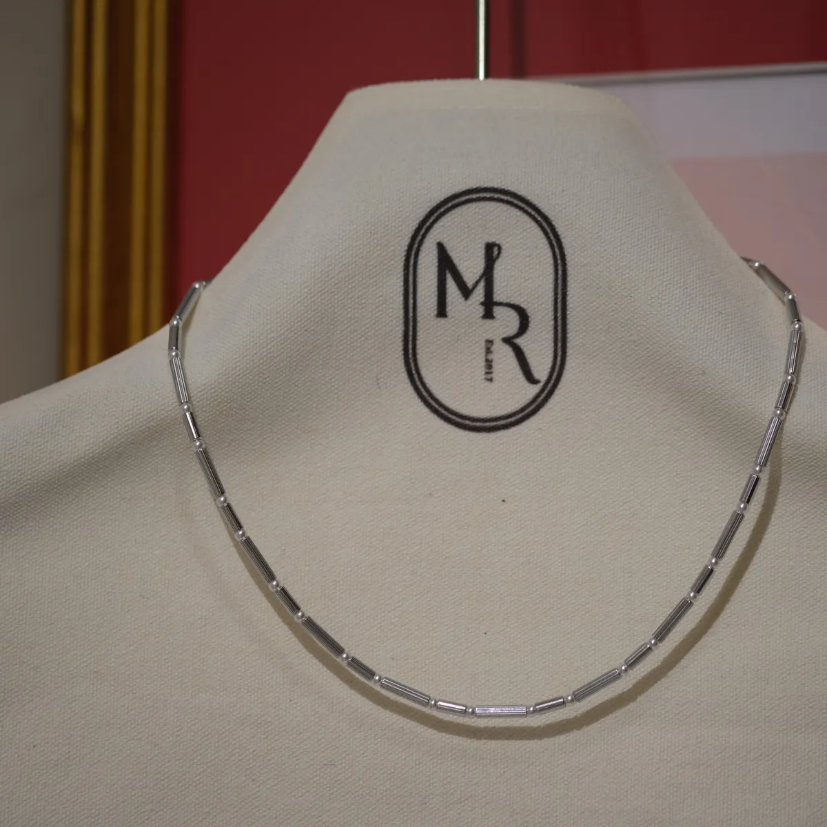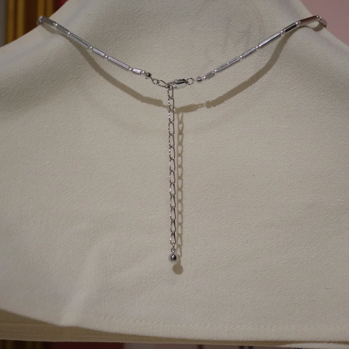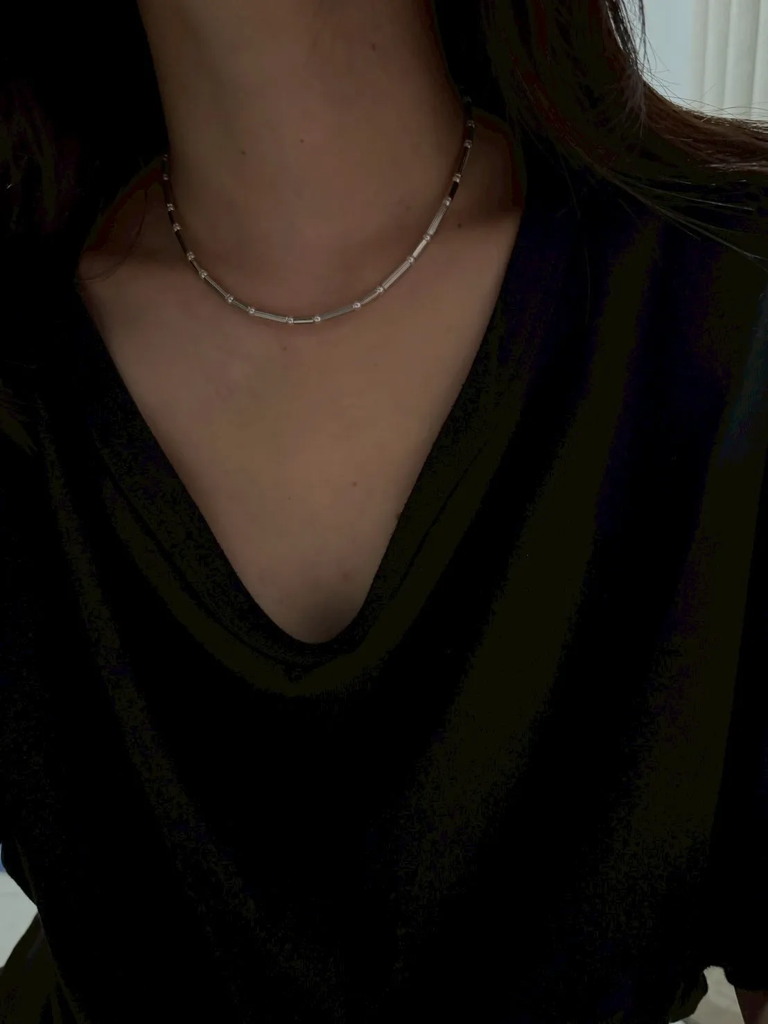 RR2378 線條銀管珍珠設計感項鏈