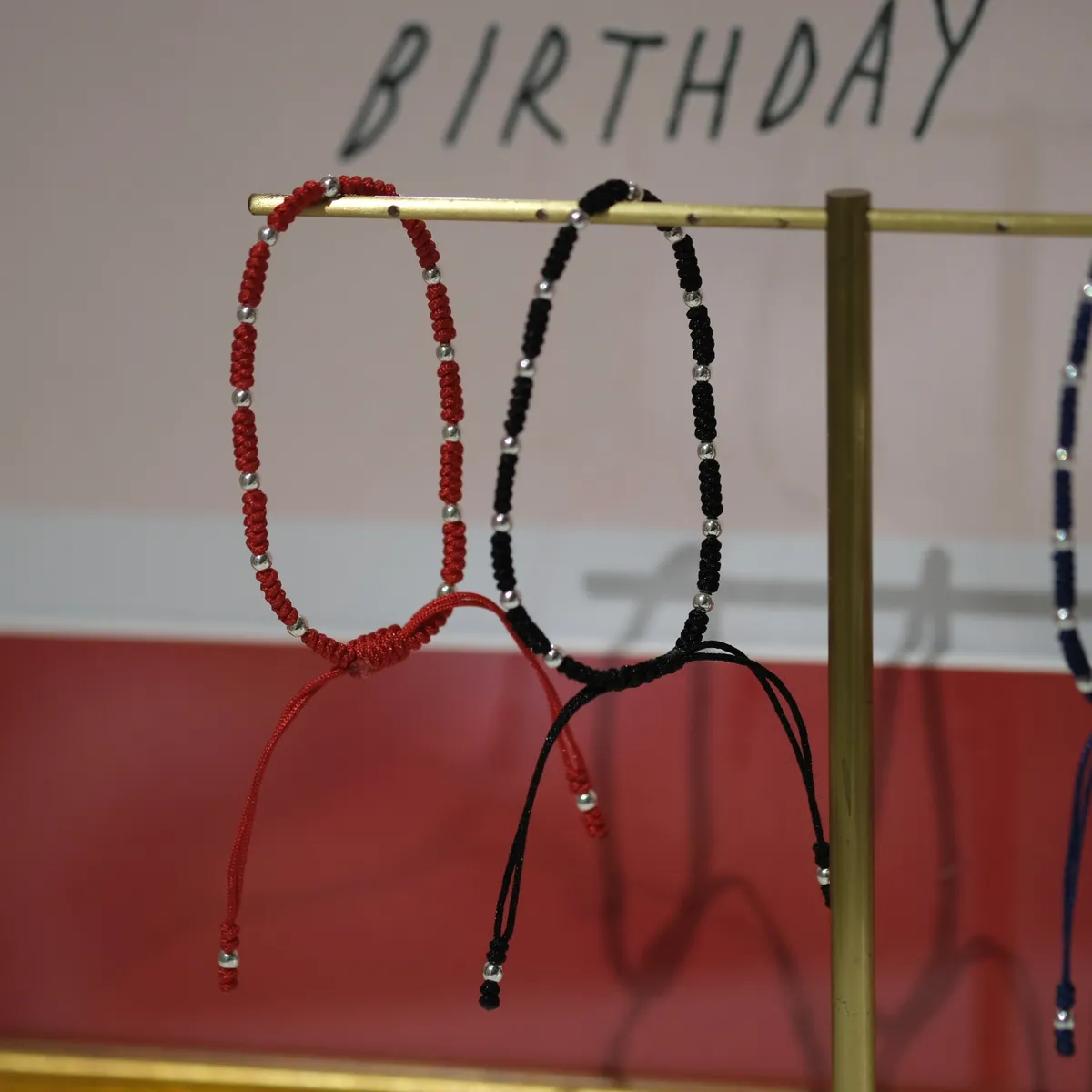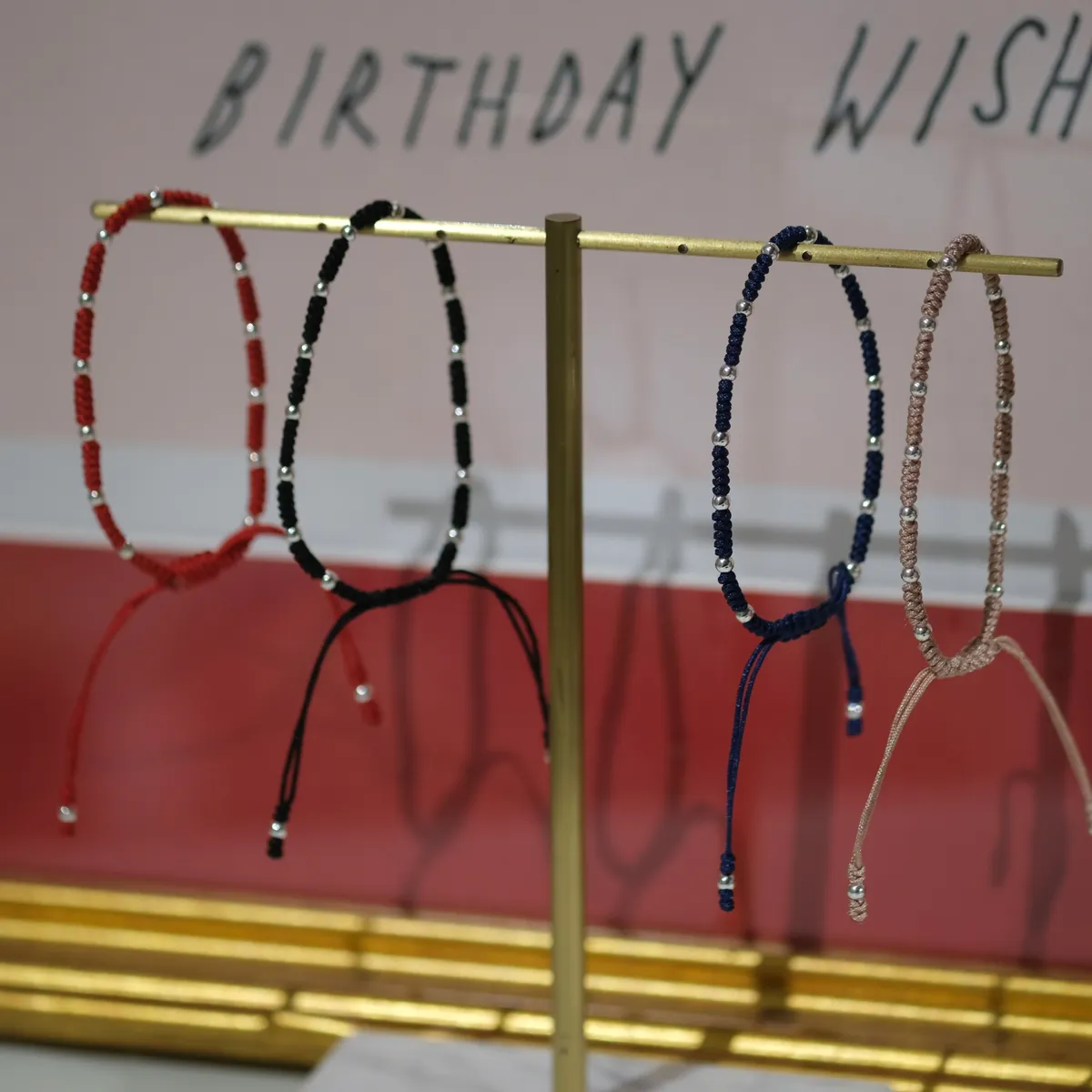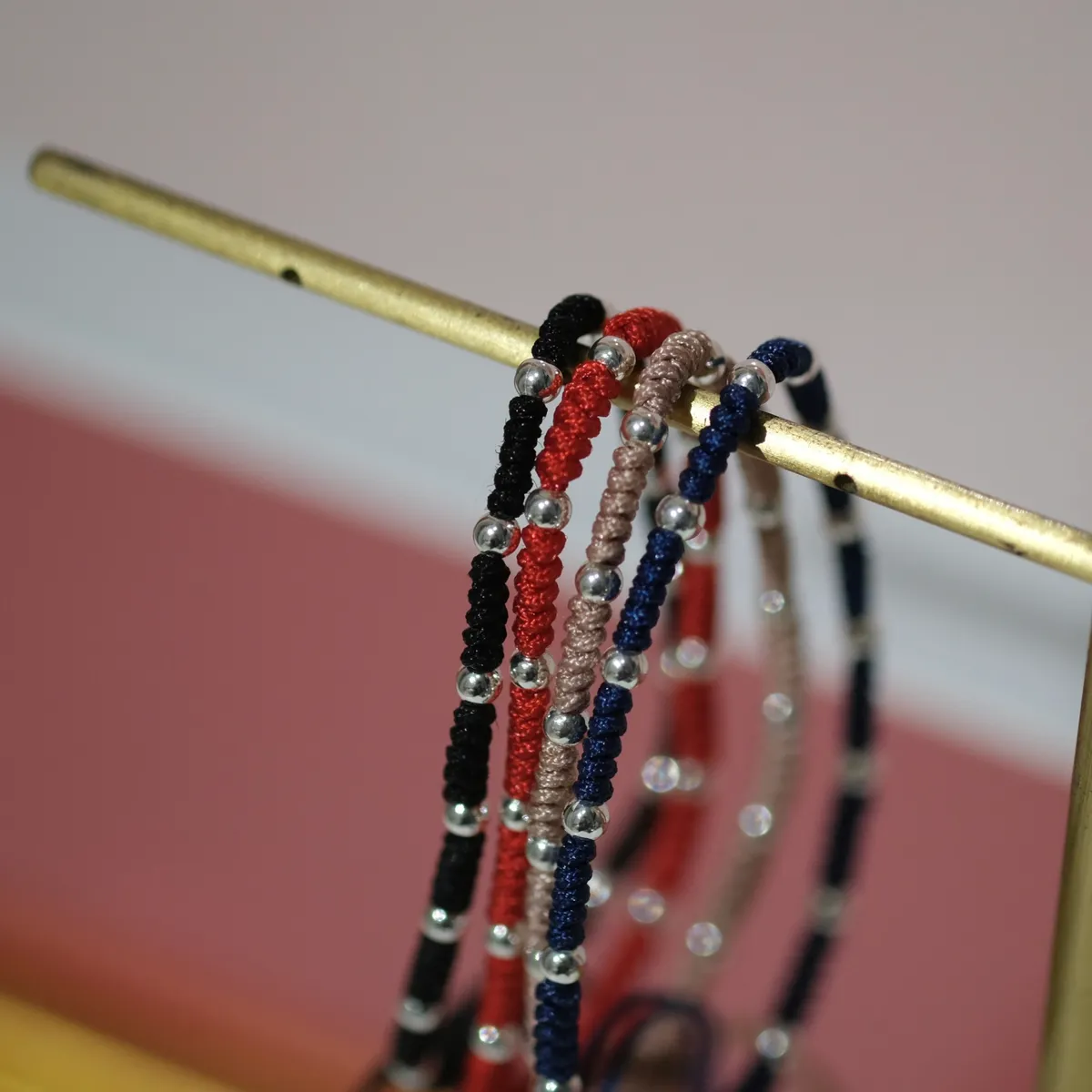 RR2396 S925純銀 卯釘圓珠幸運繩手鏈