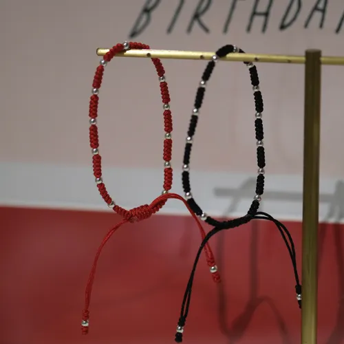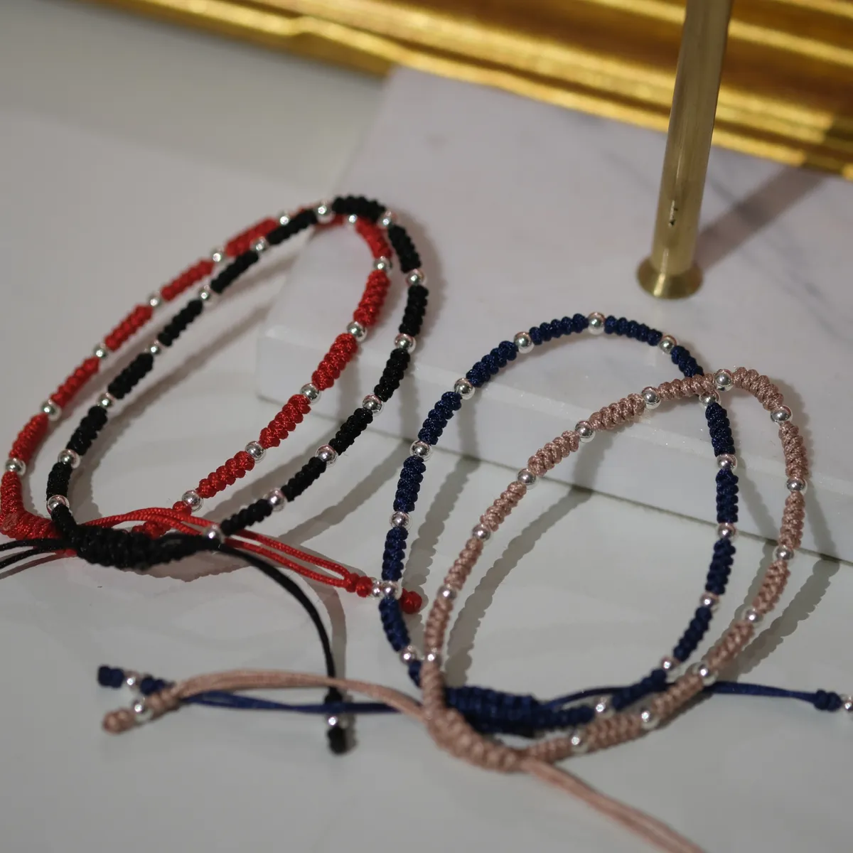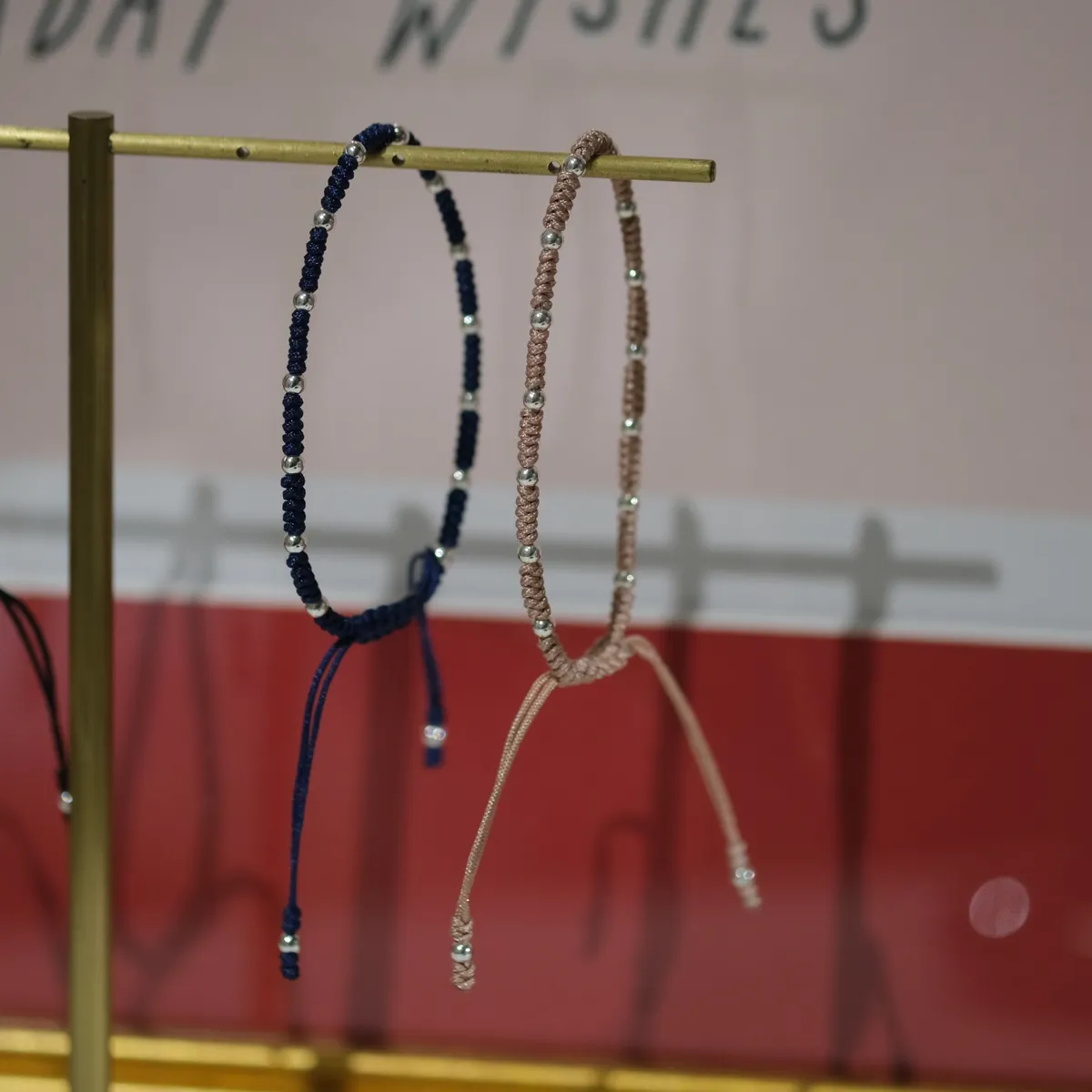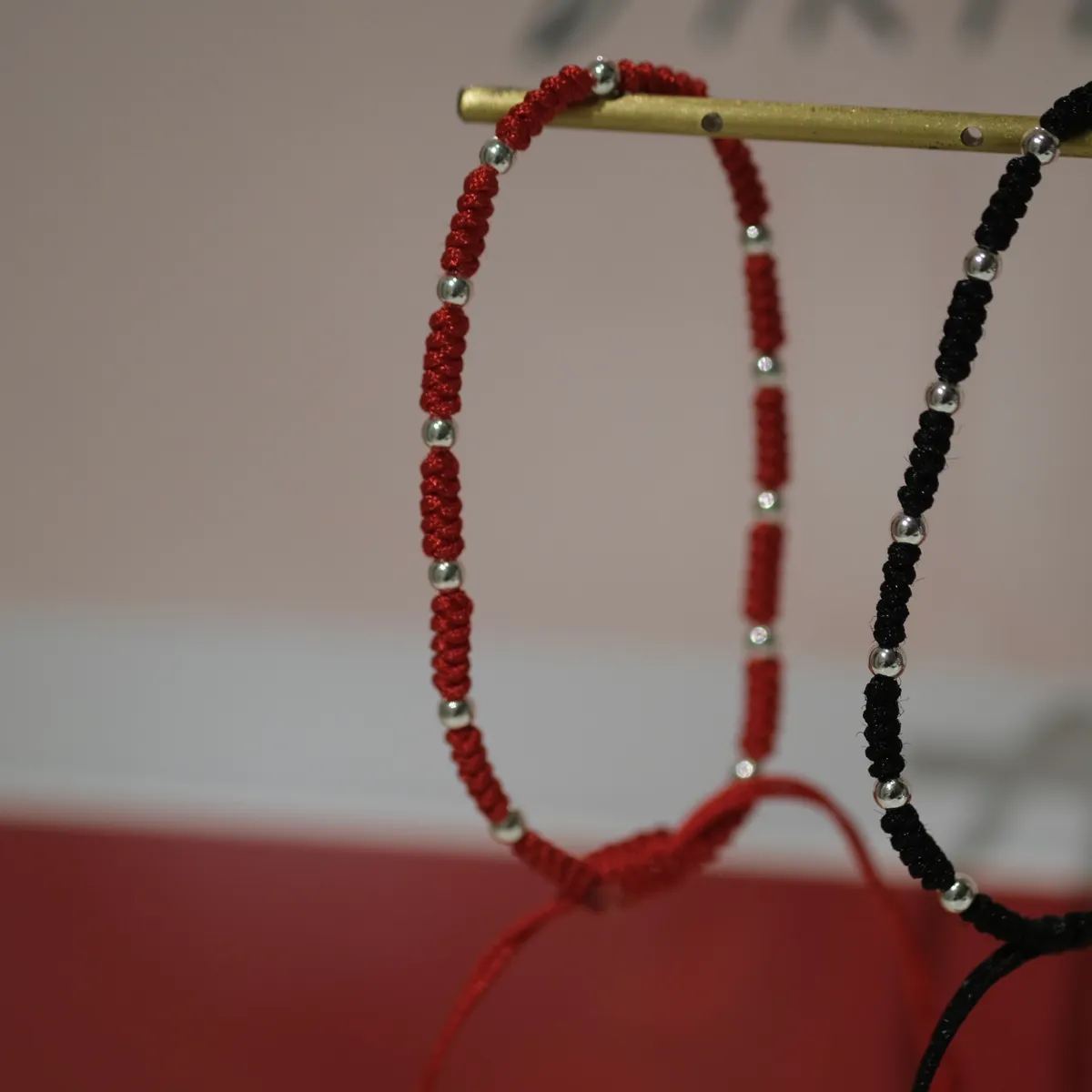 RR2396 S925純銀 卯釘圓珠幸運繩手鏈