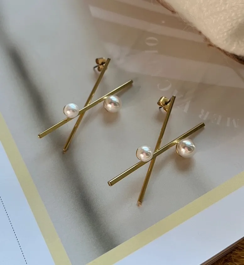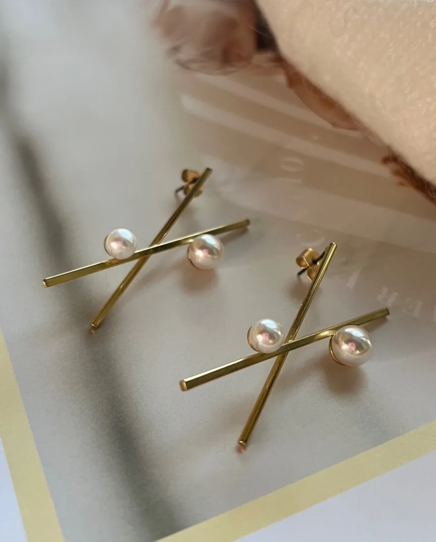 RR553交叉設計珍珠耳環