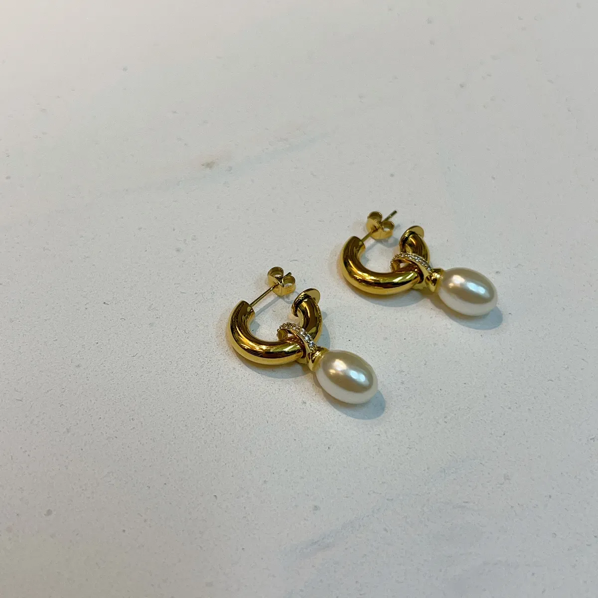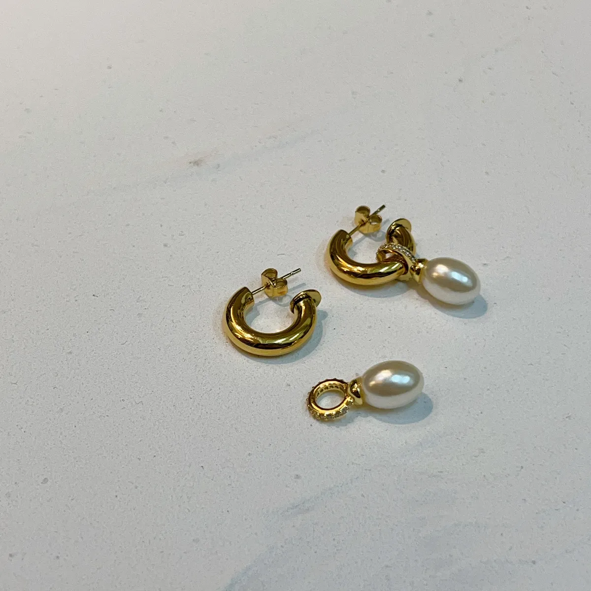 RR606鈦鋼高保色鋯石18k金真空電鍍耳環 墜飾可拆