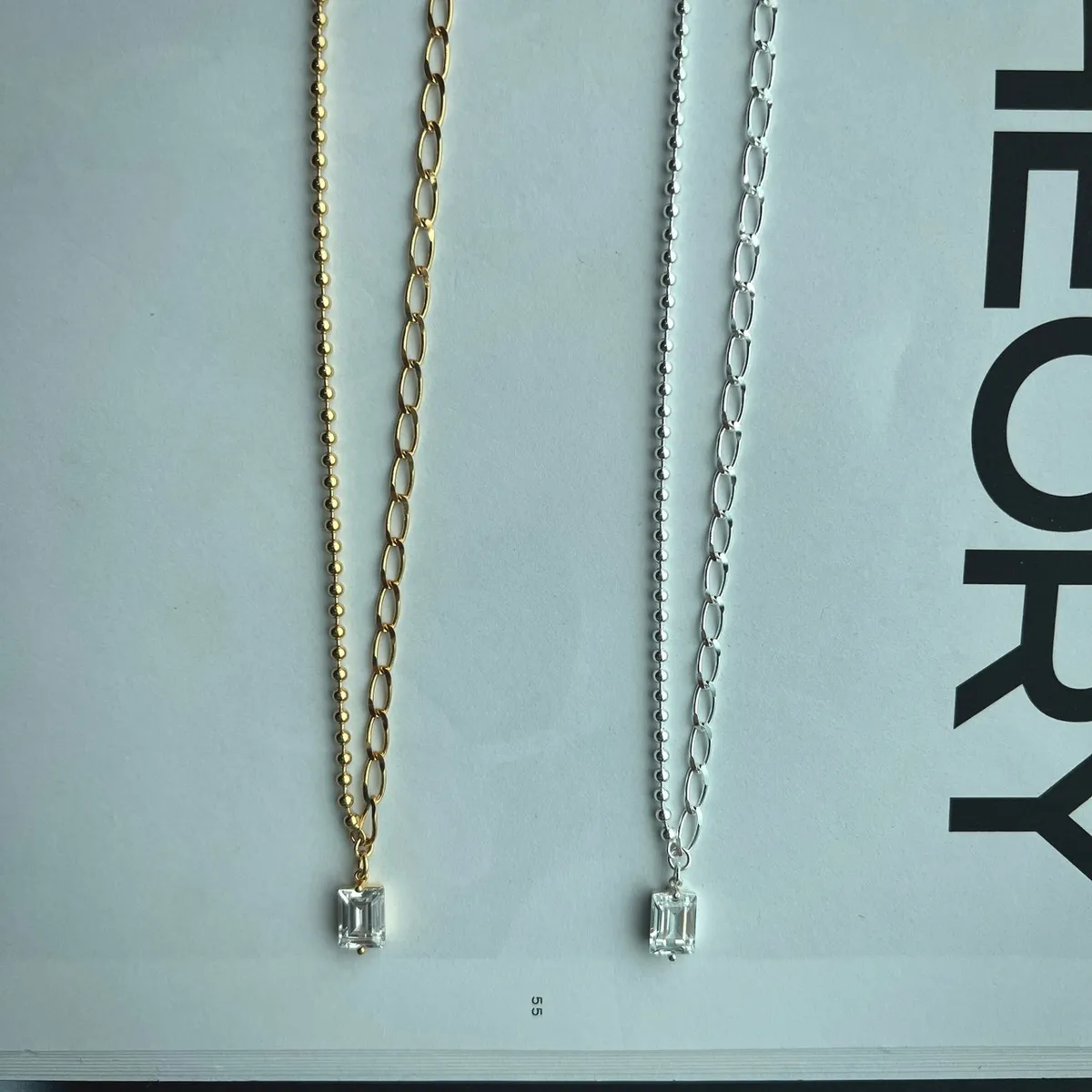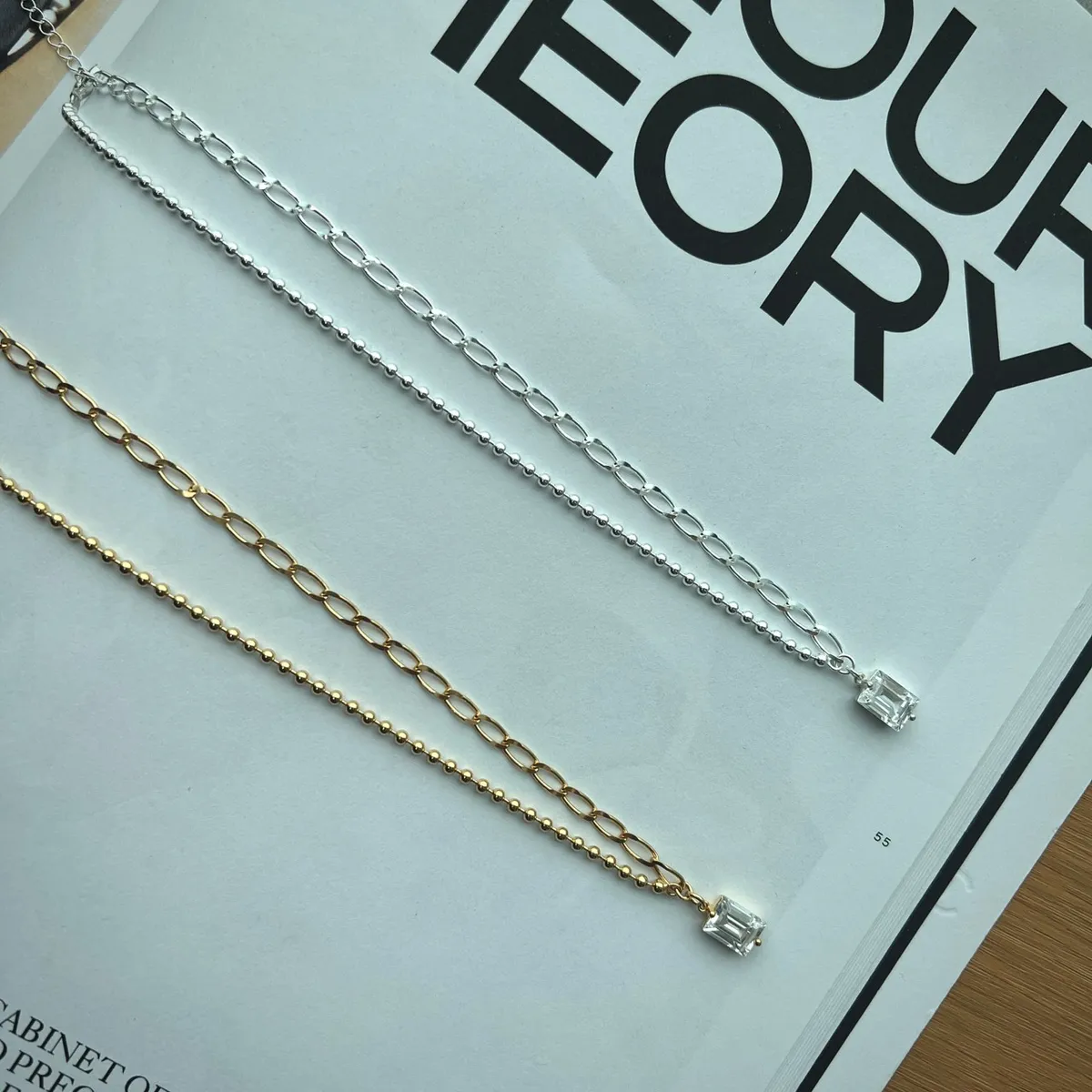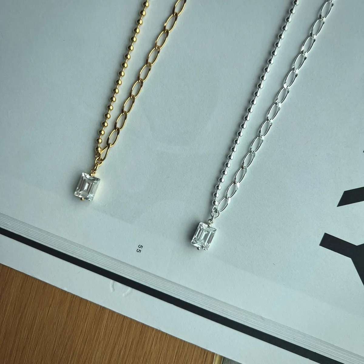 RR689 |純銀|鋯石切割方鑽不對稱項鍊